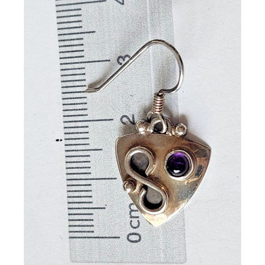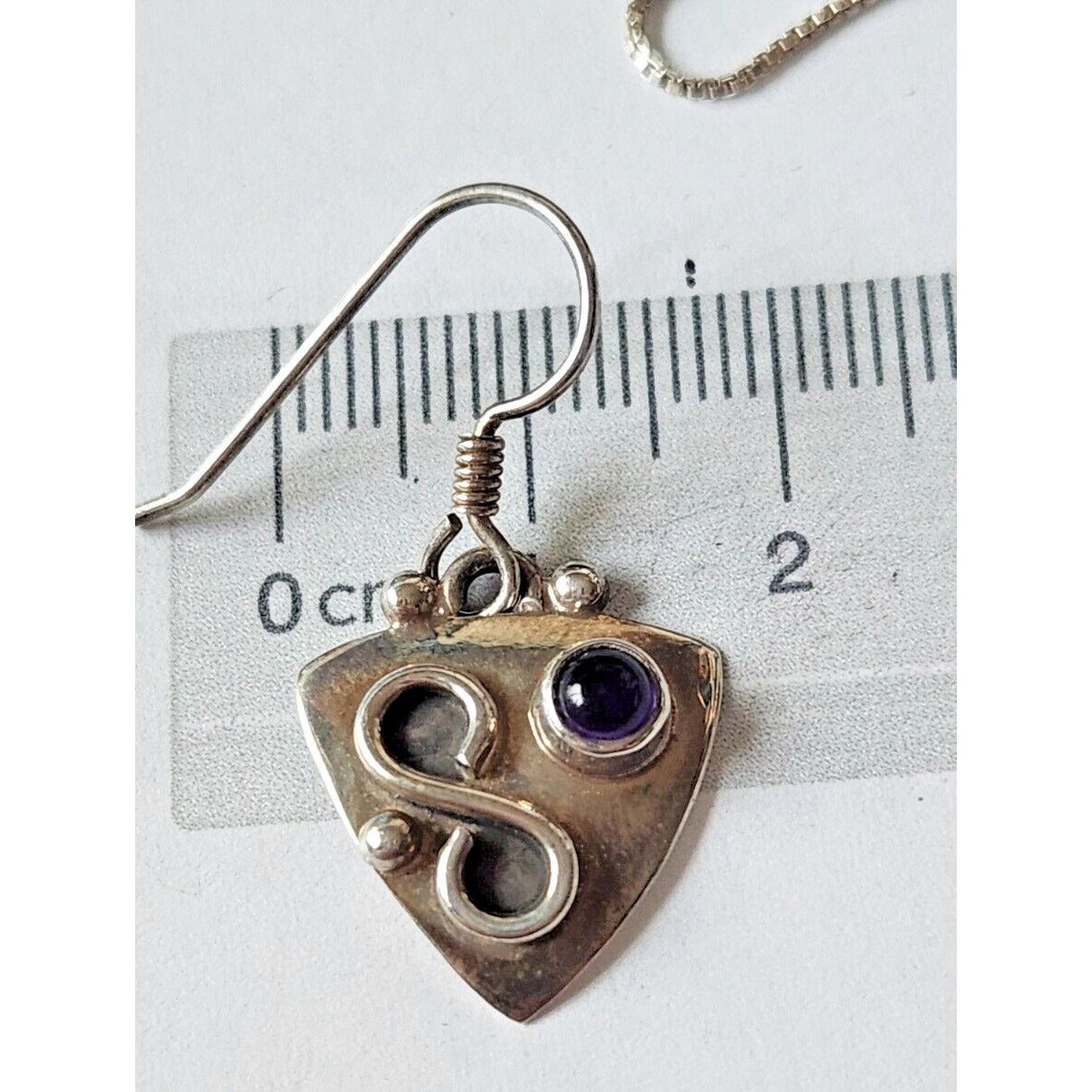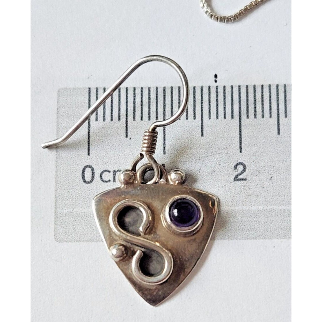 Jewelry Necklace Earrings Set Round Amethyst 16" Silver Chain Total Weight 9.3 Gr 925 Silver