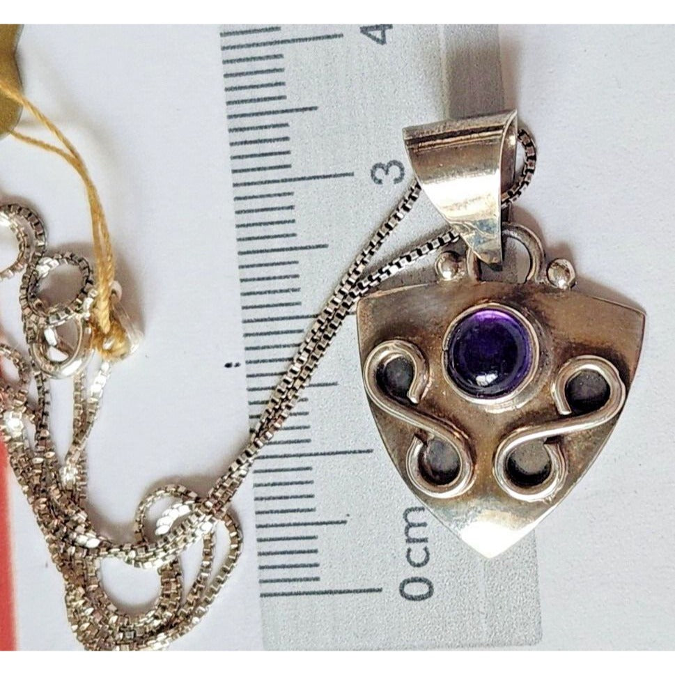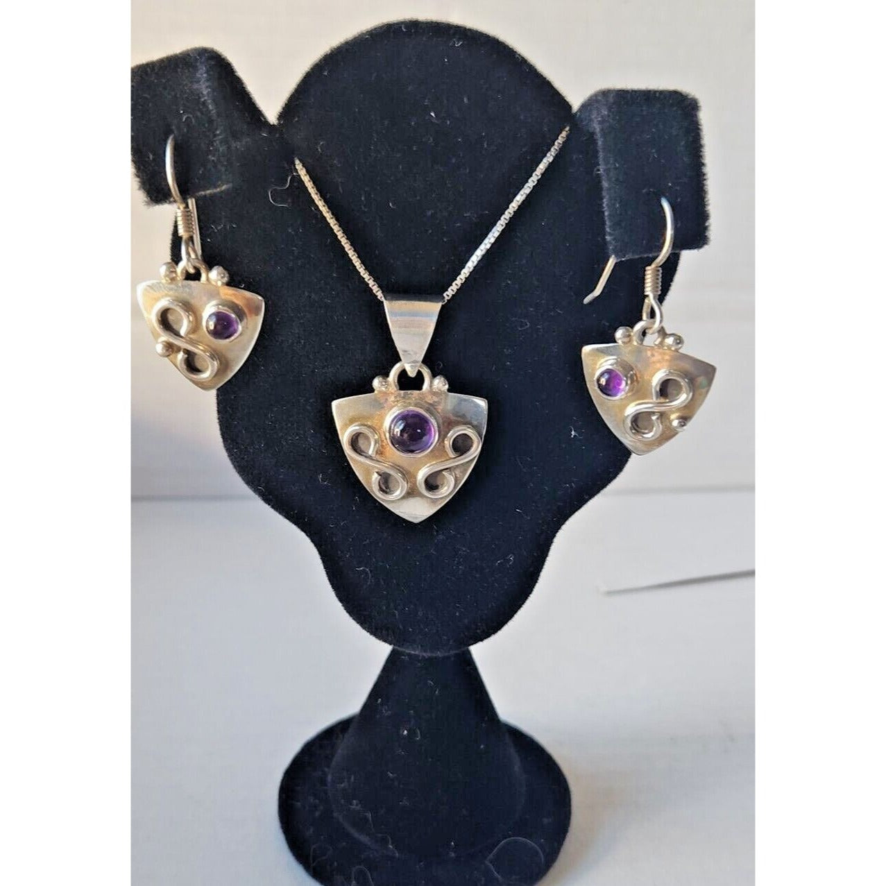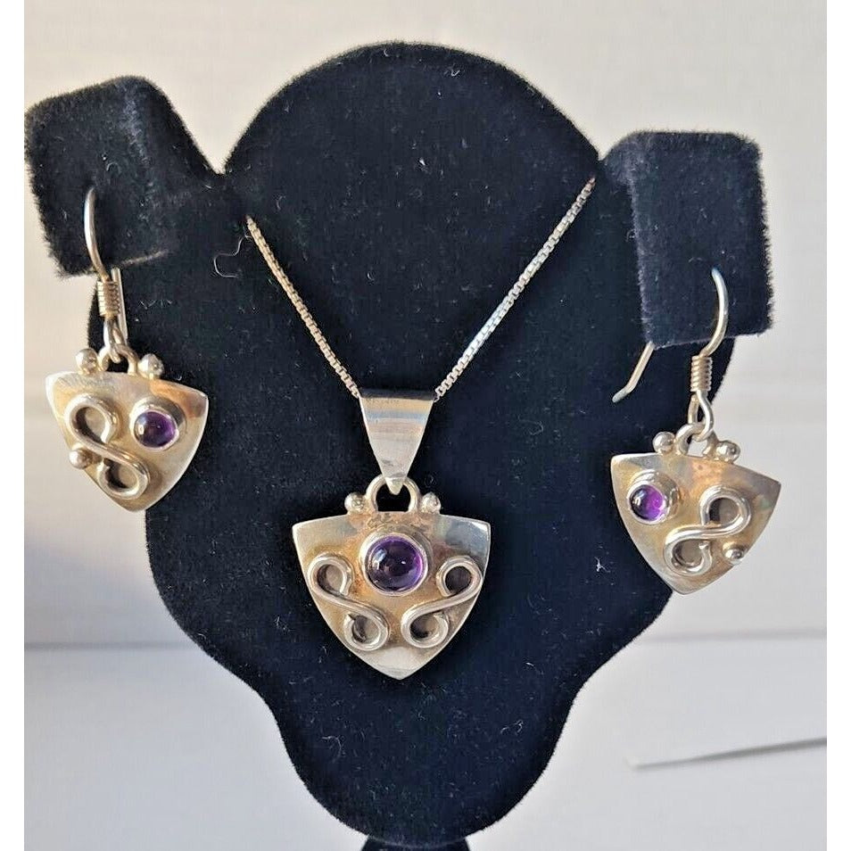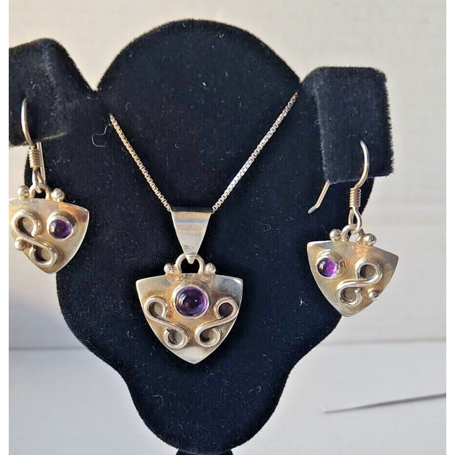 Jewelry Necklace Earrings Set Round Amethyst 16" Silver Chain weight 9.3 Gr