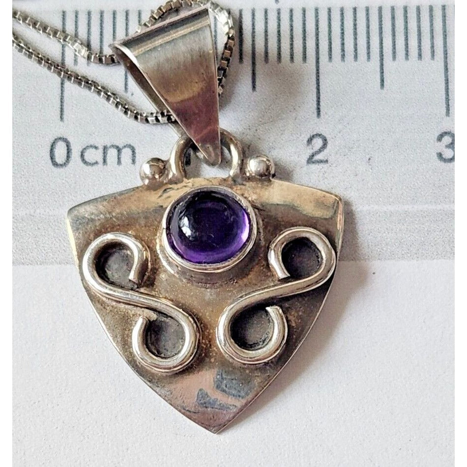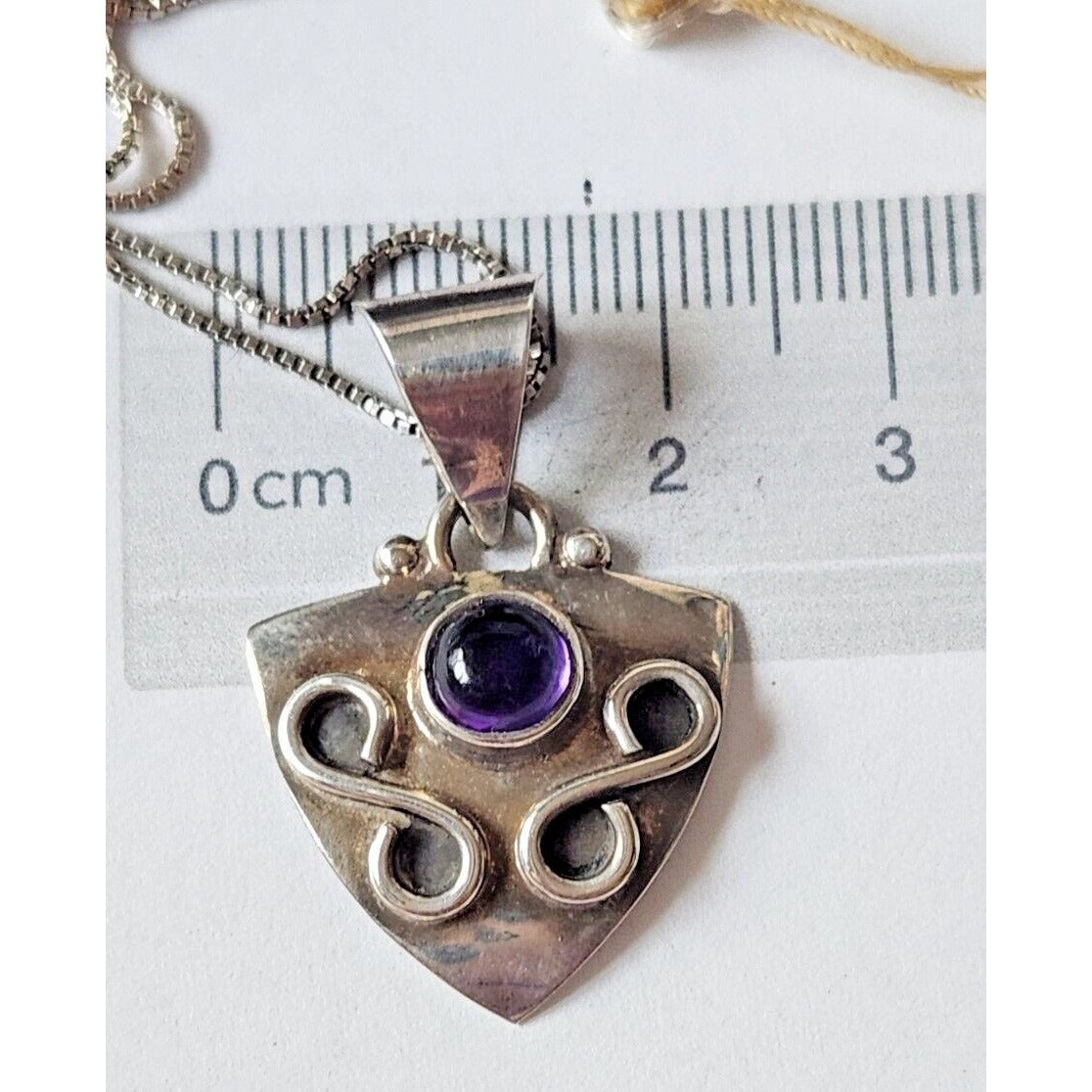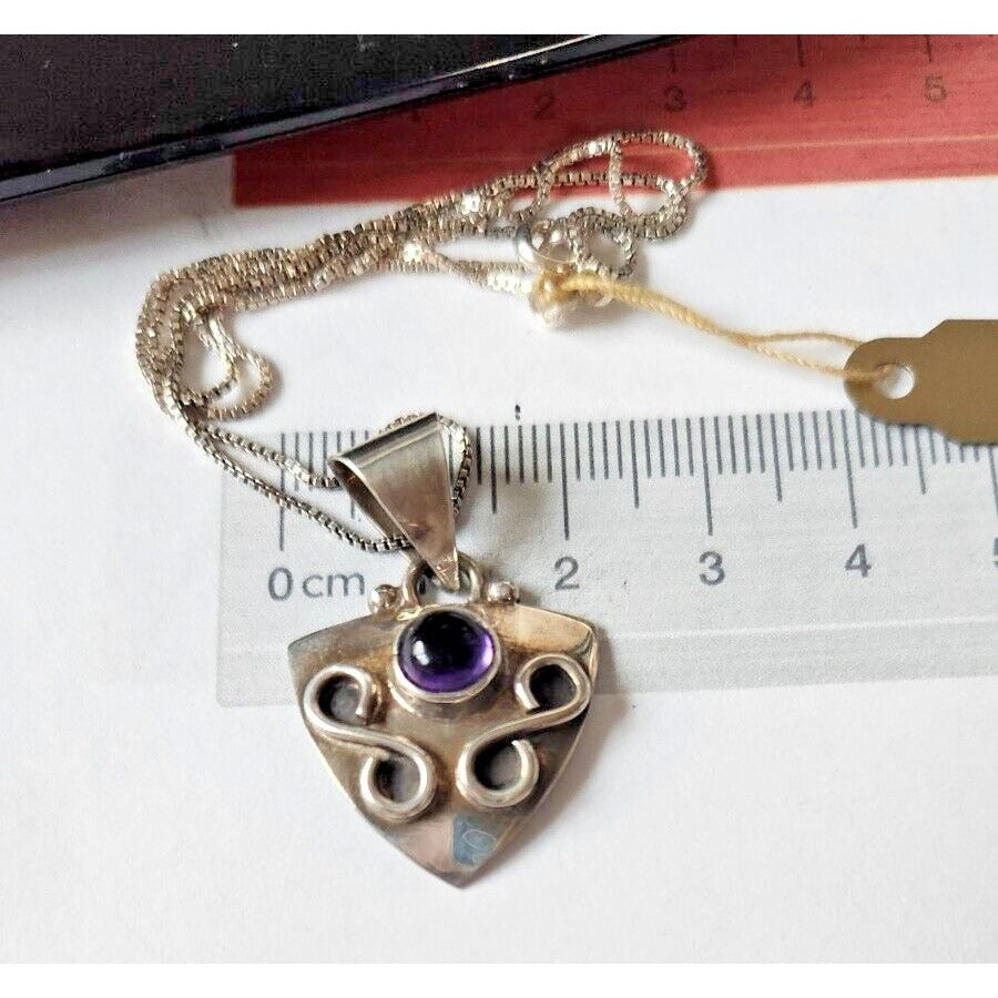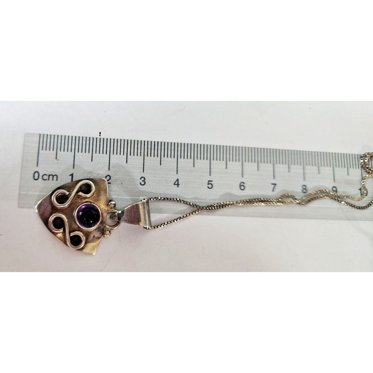 Jewelry Necklace Earrings Set Round Amethyst 16" Silver Chain weight 9.3 Gr