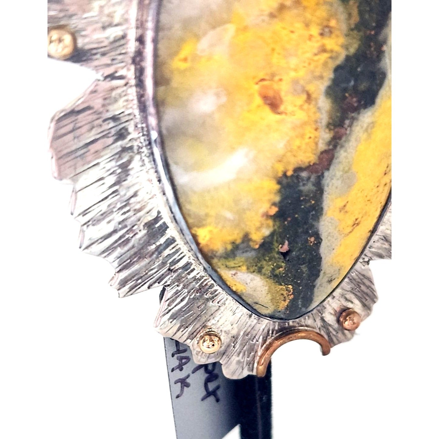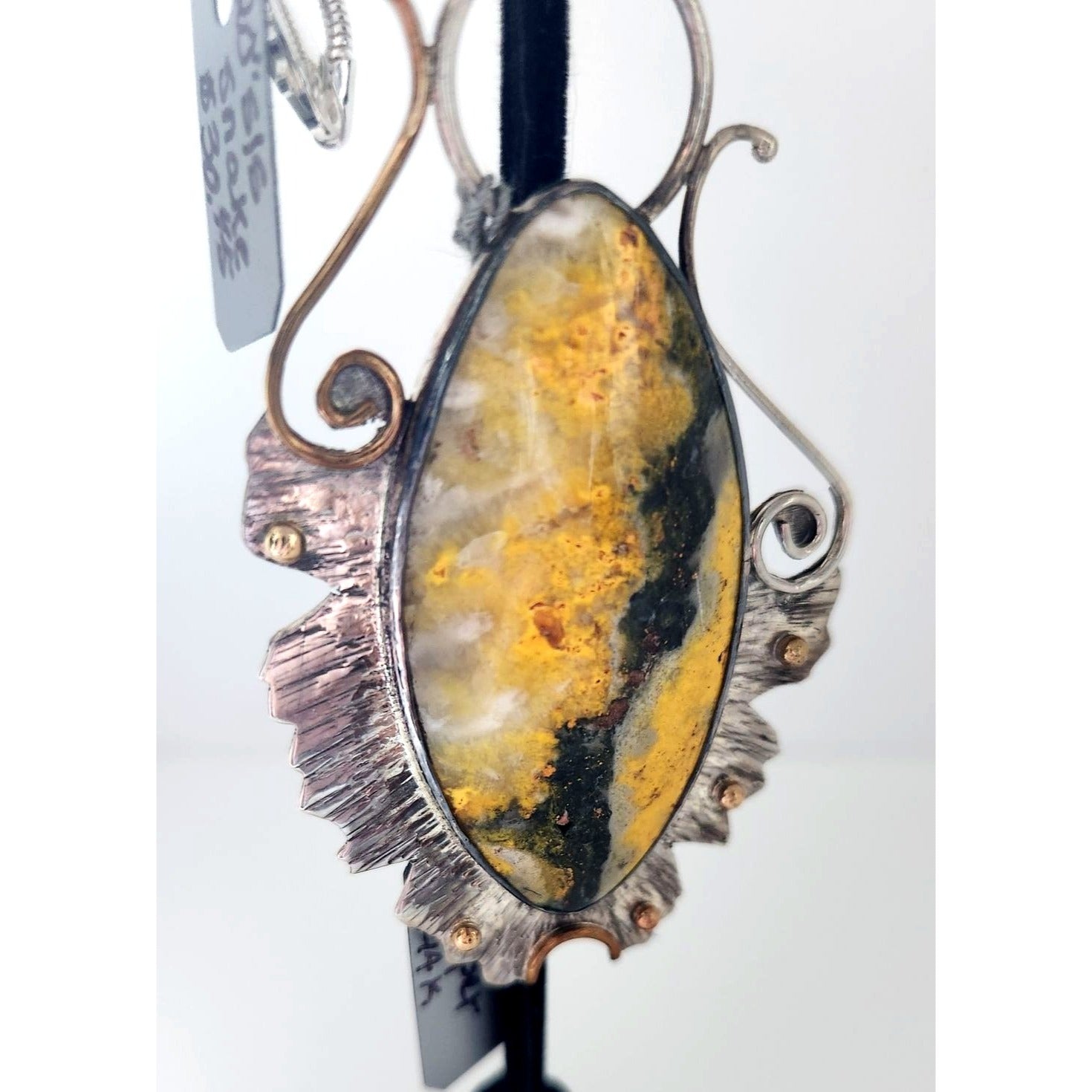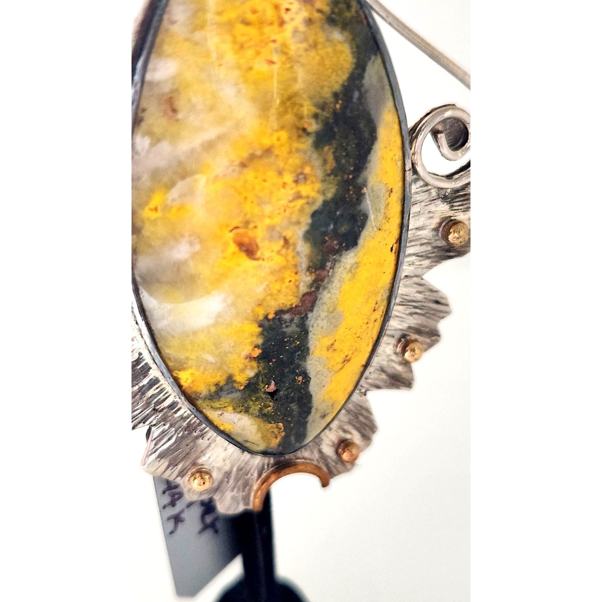 Jewelry Pendant Bumble Bee Jasper Pendant 26.5 Grams Frame 925 Silver 14K Gold Accents 85mm x 45mm Pendant Stone 25mm x 55mm