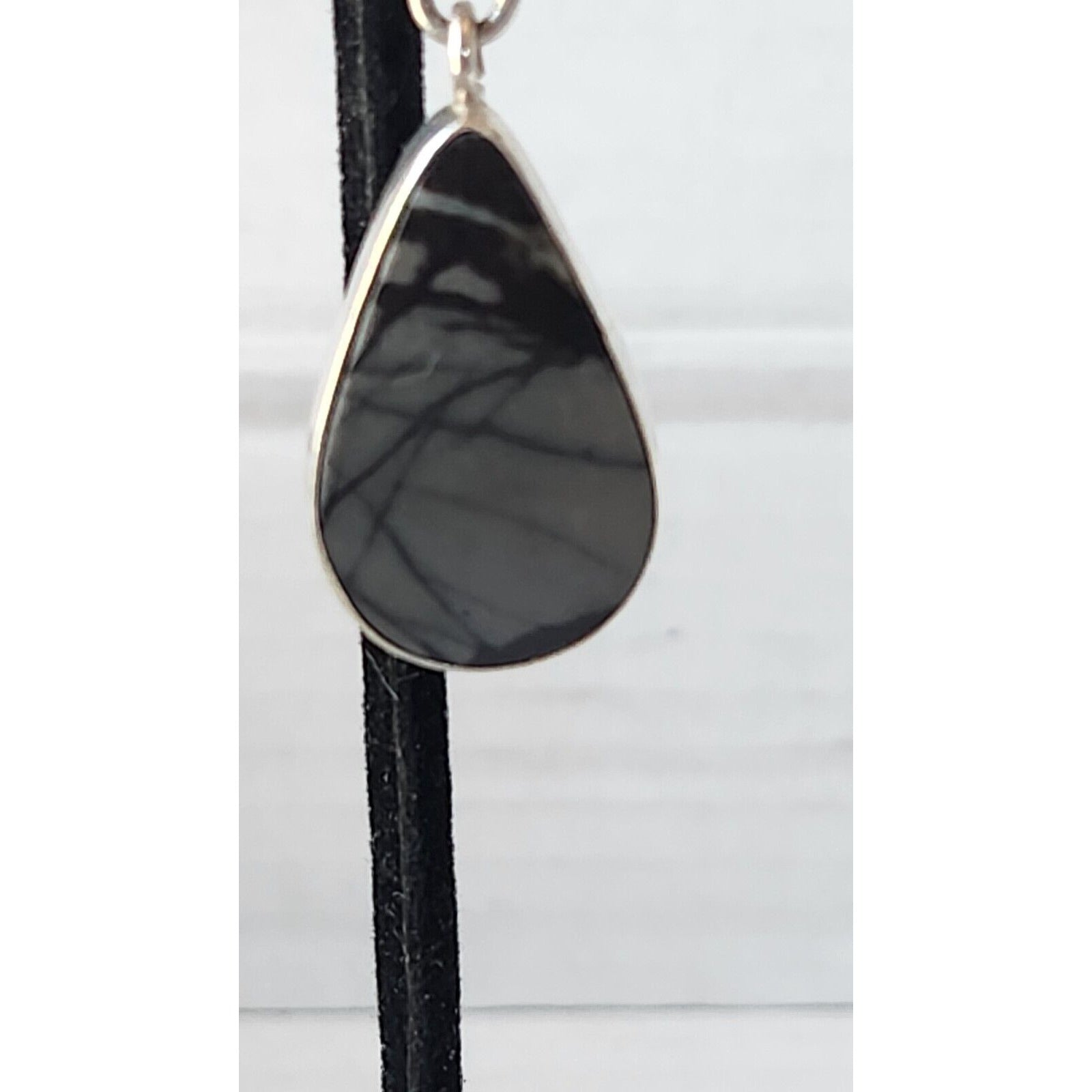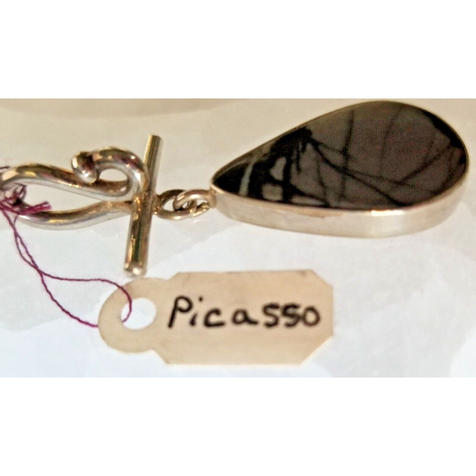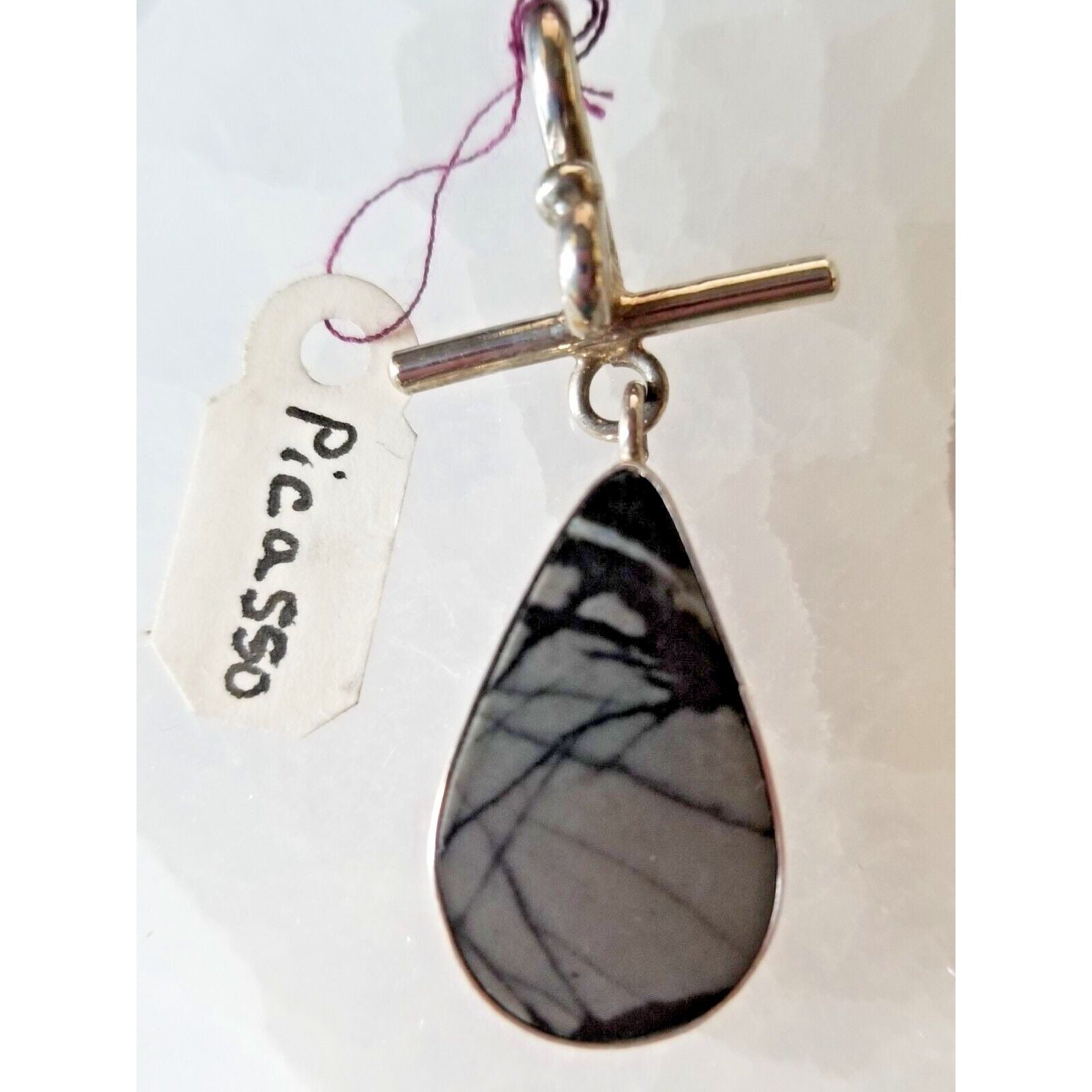 Jewelry Pendant Picasso Agate 1" Tear Drop 925 Silver.
