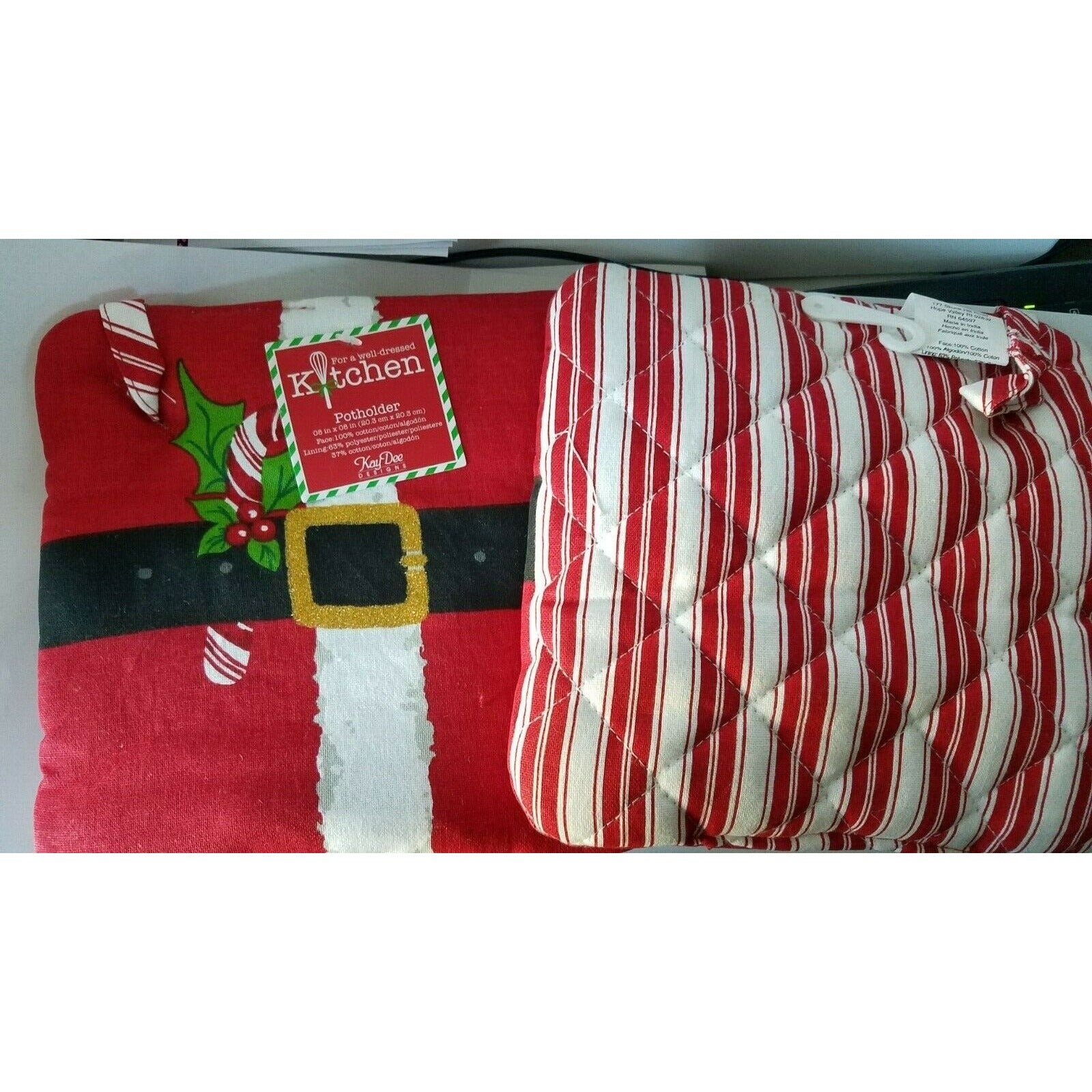 Kitchen Pot Holder KayDee Designs Santa Belt Candy Cane Striped Back Set of 2
