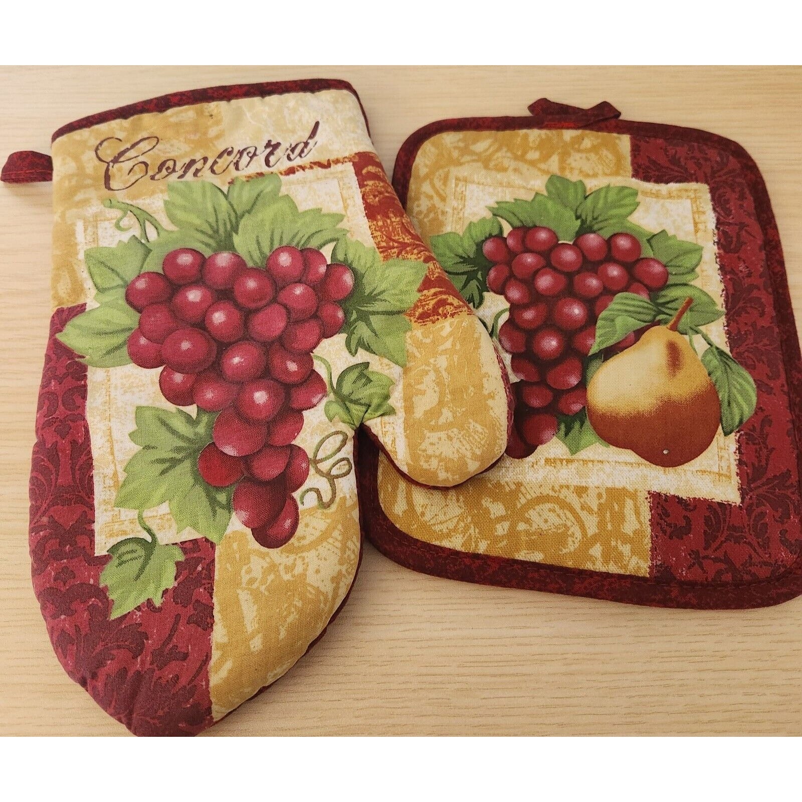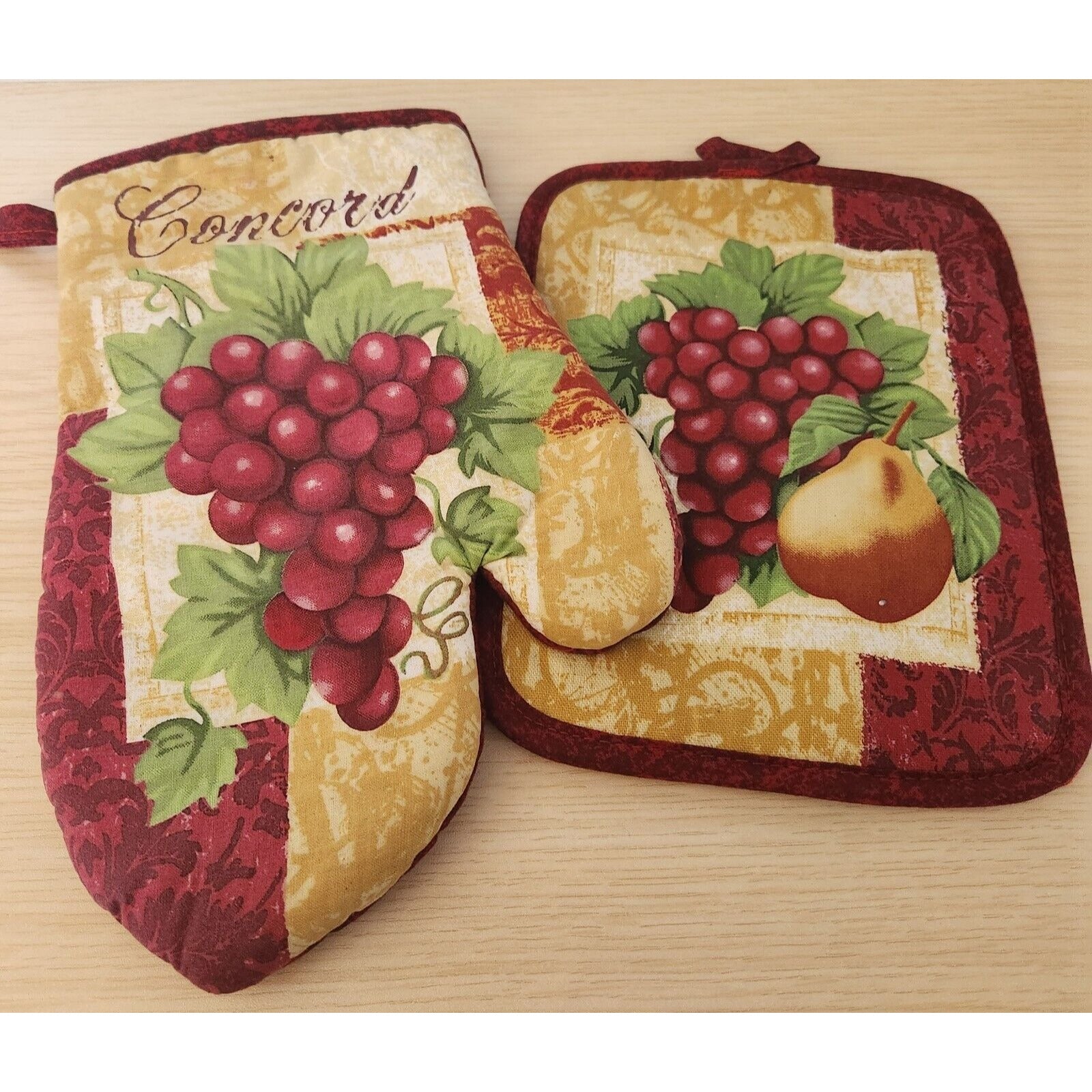 Kitchen Towel 2 Piece Set Concord Grape 1 Pot Holders, 1 Oven Mitt