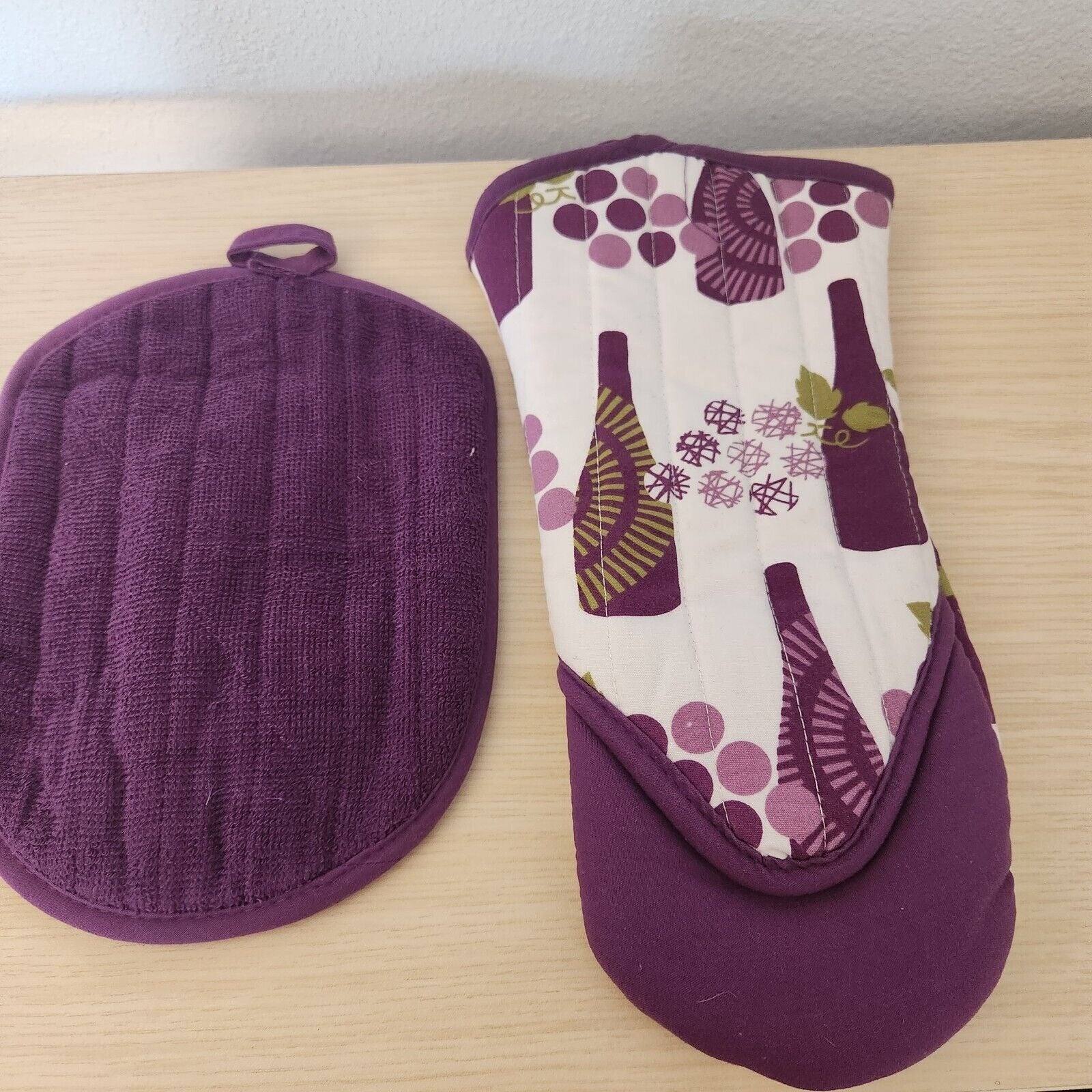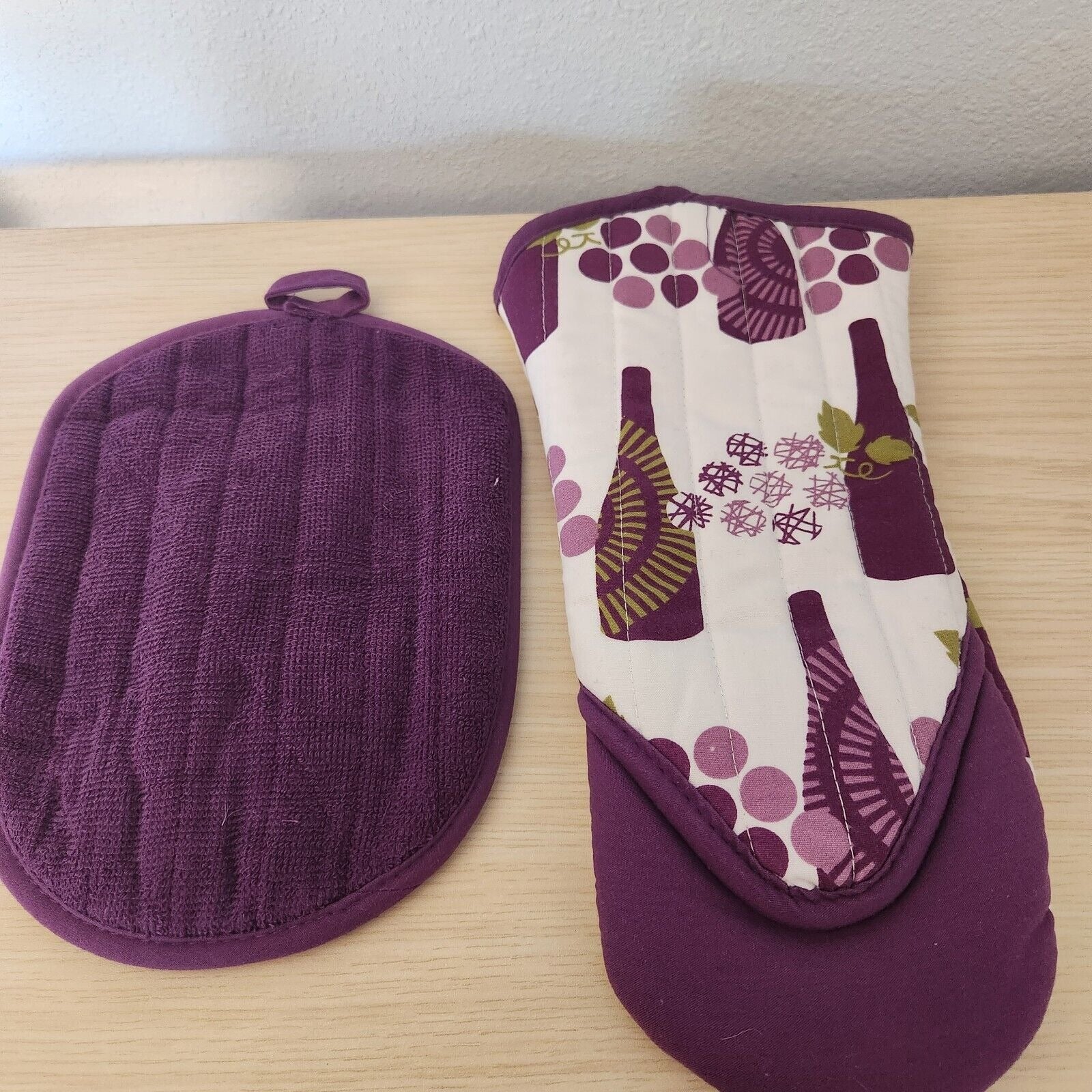 Kitchen Towel 2 Piece Set Merlot 1 Pot Holders, 1 Oven Mitt