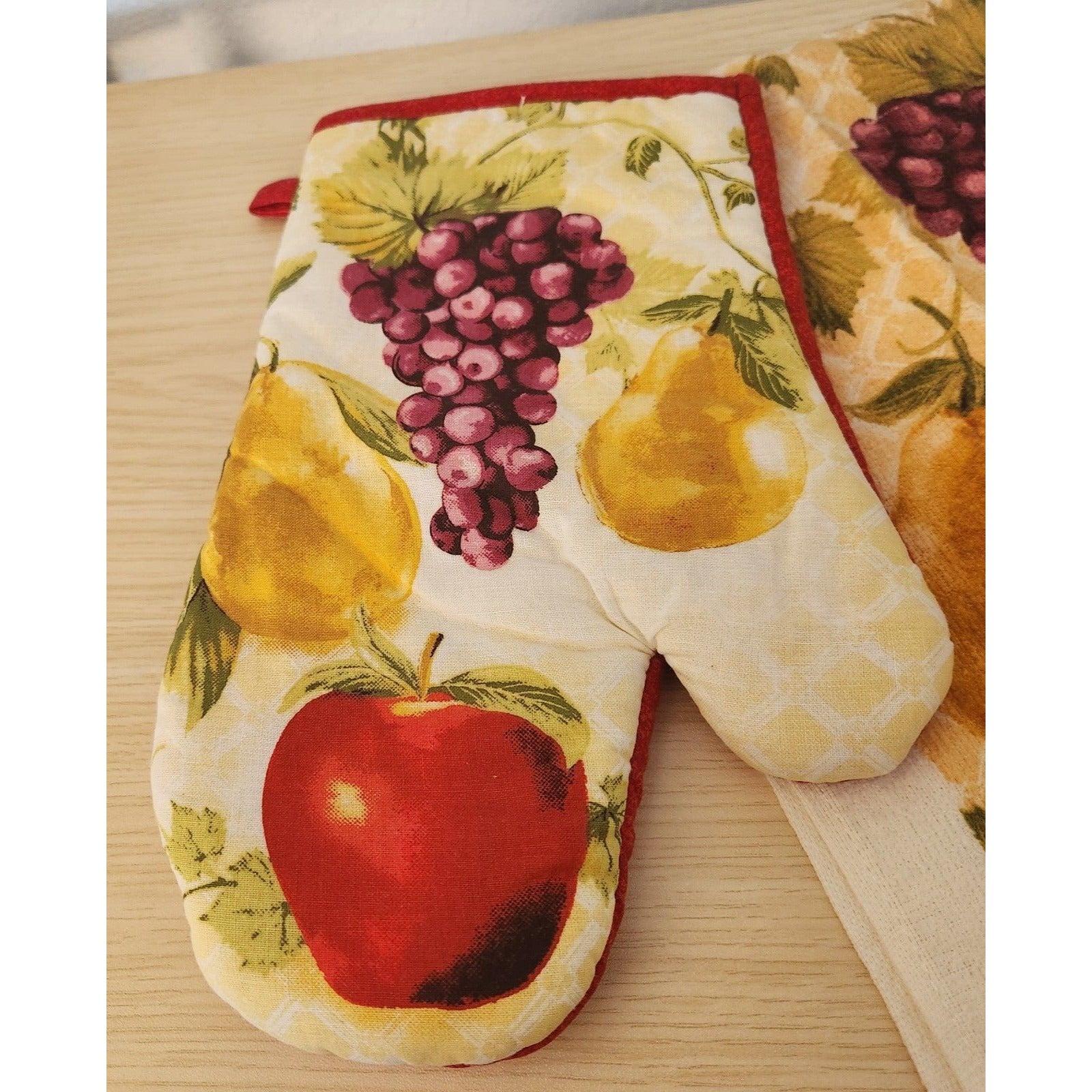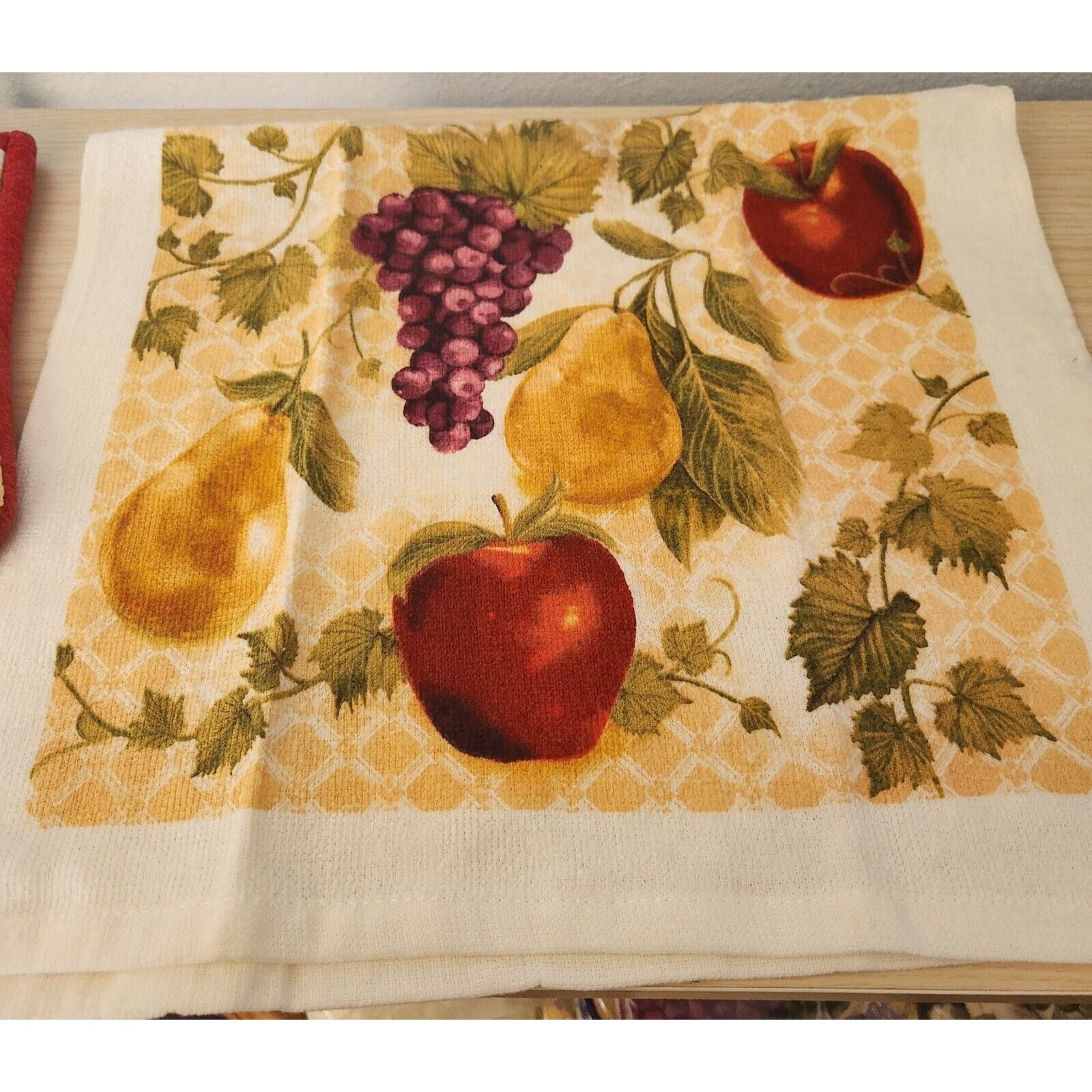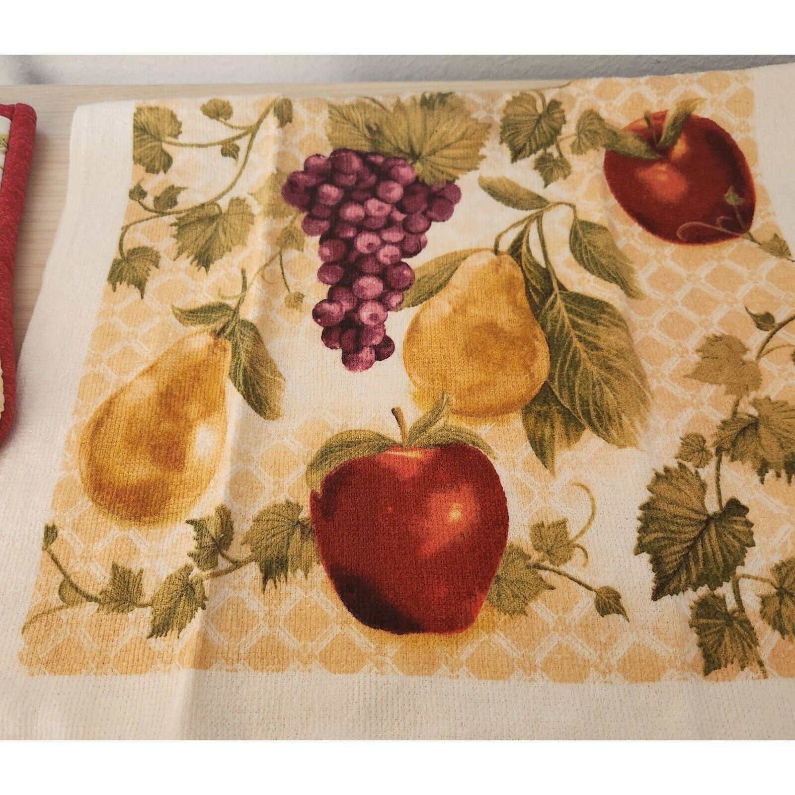 Kitchen Towel 4 Piece Set Fruit Grape 2 Towels 1 Pot Holders, 1 Oven Mitt
