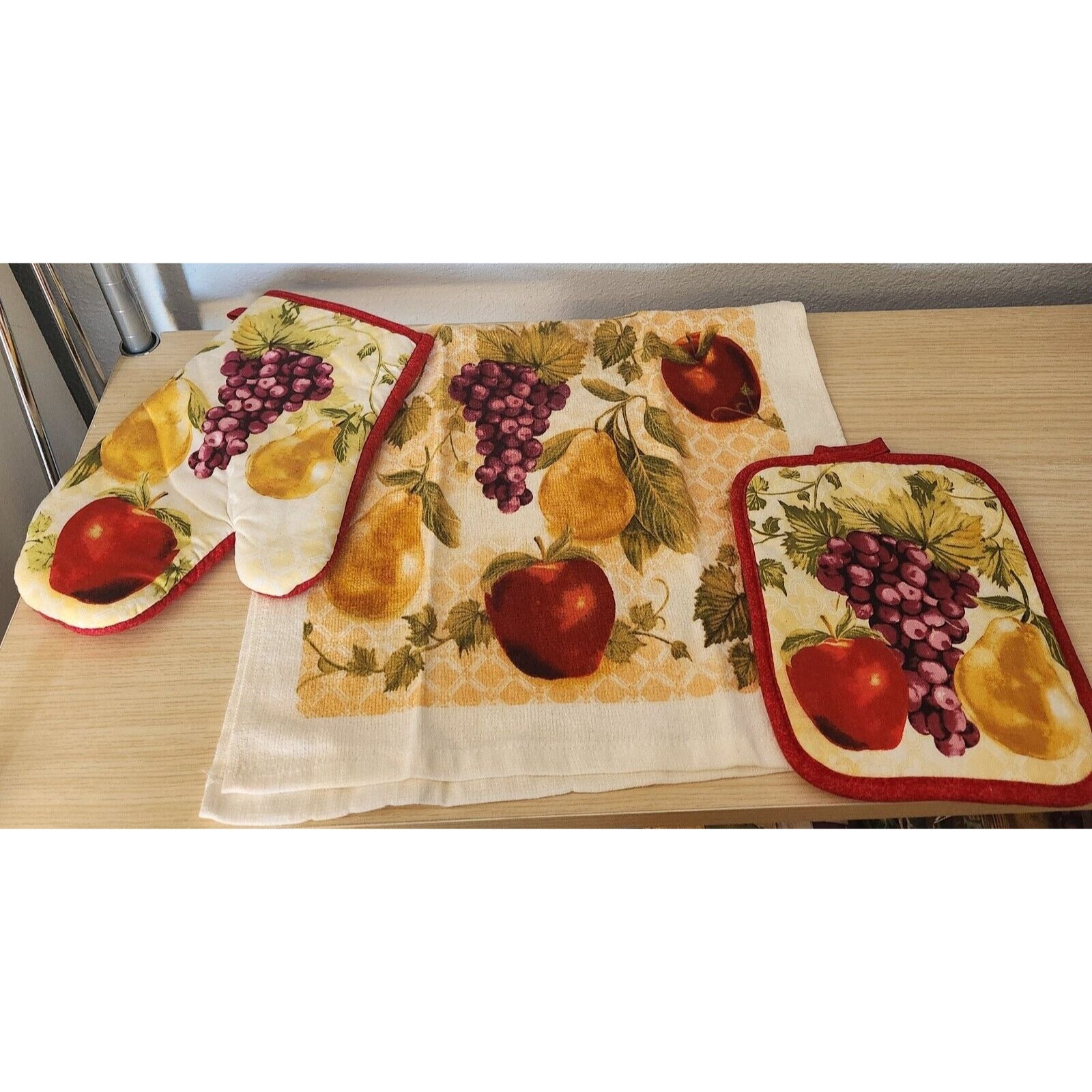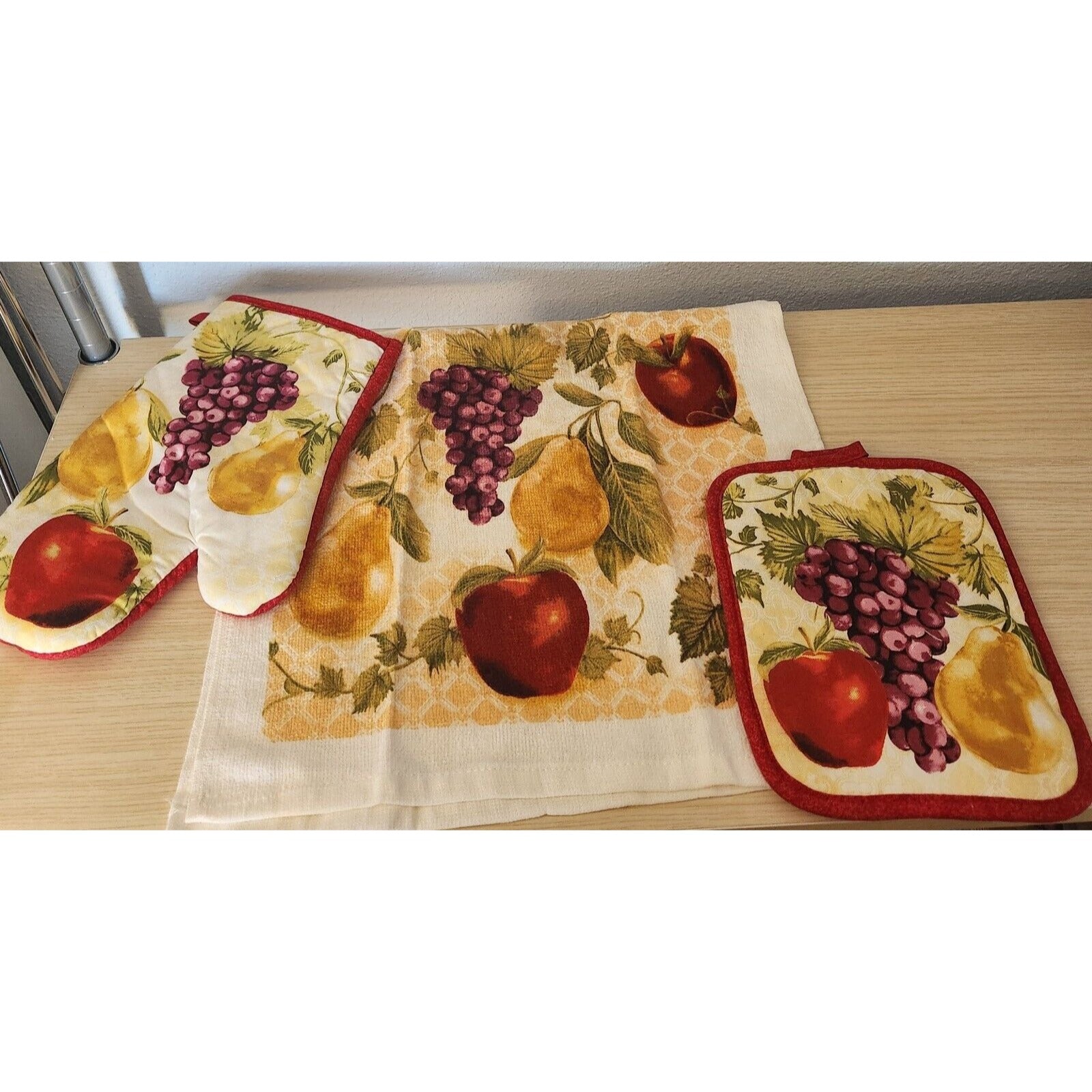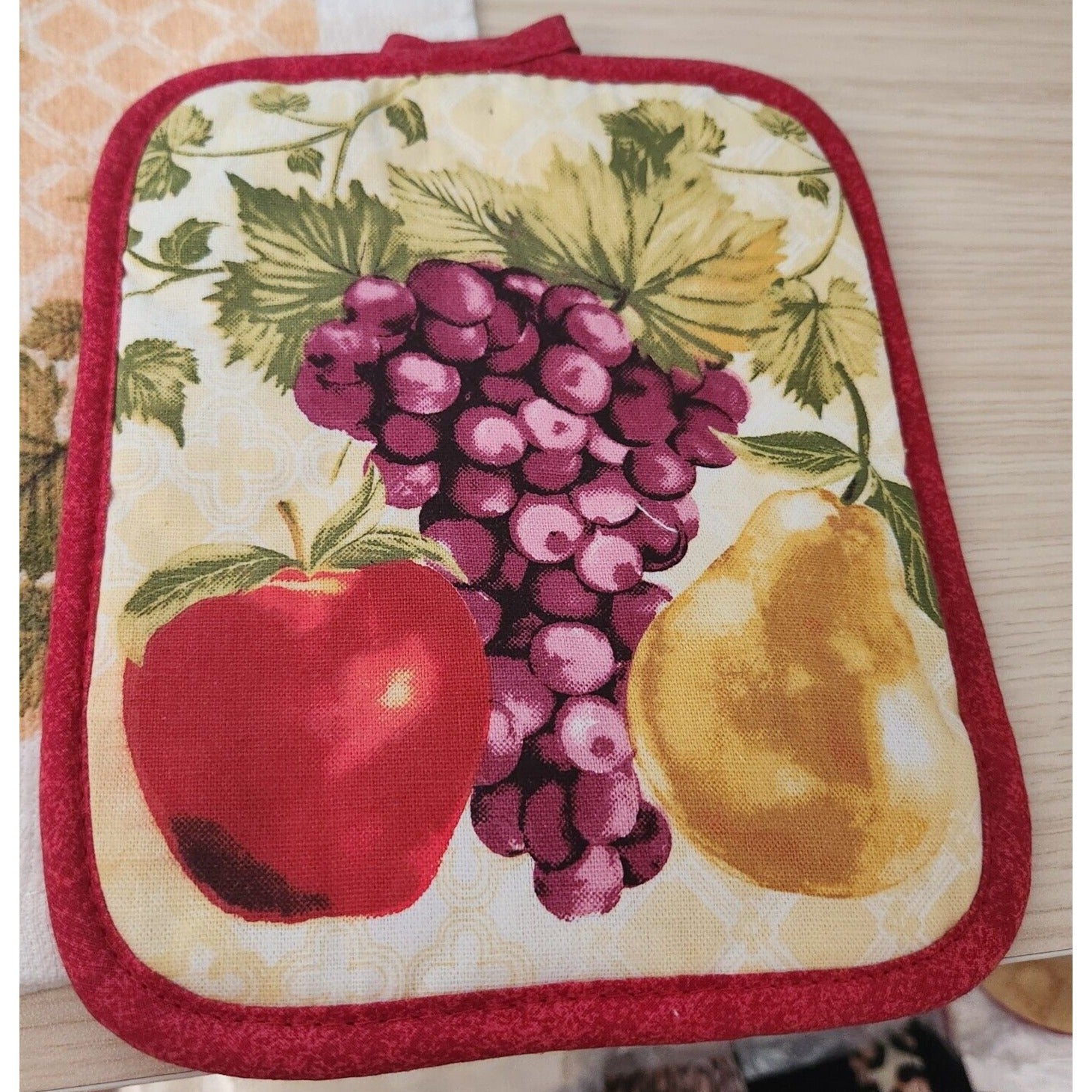 Kitchen Towel 4 Piece Set Fruit Grape 2 Towels 1 Pot Holders, 1 Oven Mitt