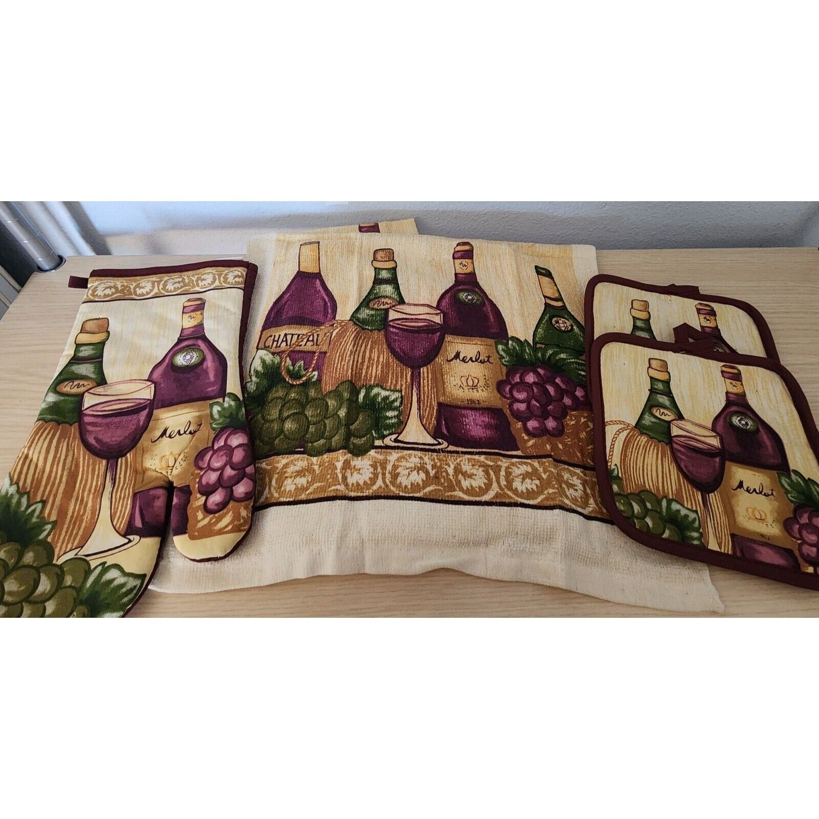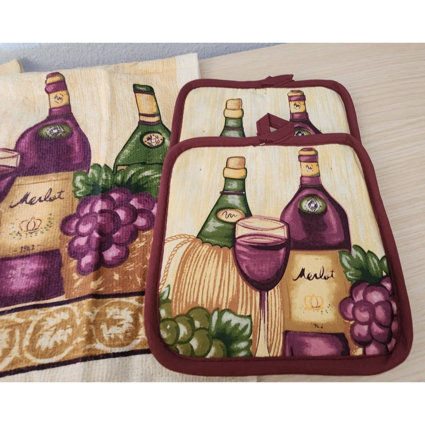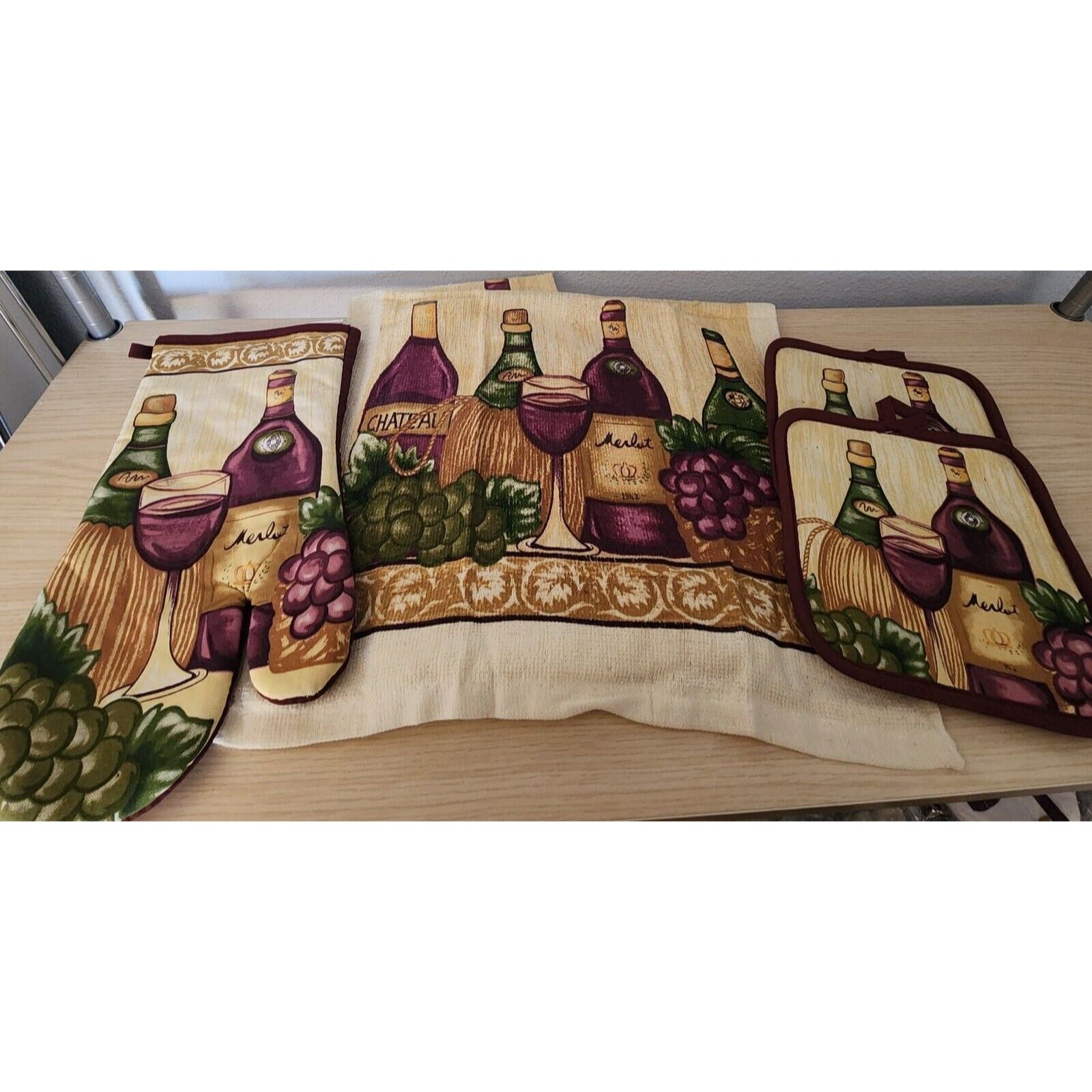 Kitchen Towel 5 Piece Set Merlot 2 2 Towels 2 Pot Holders, 1 Oven Mitt
