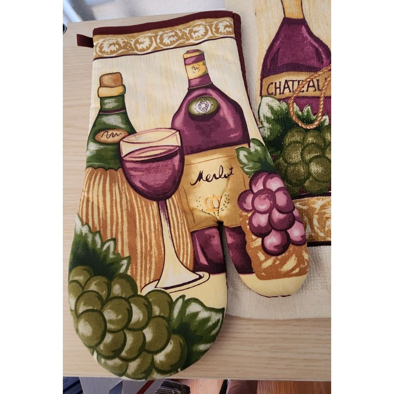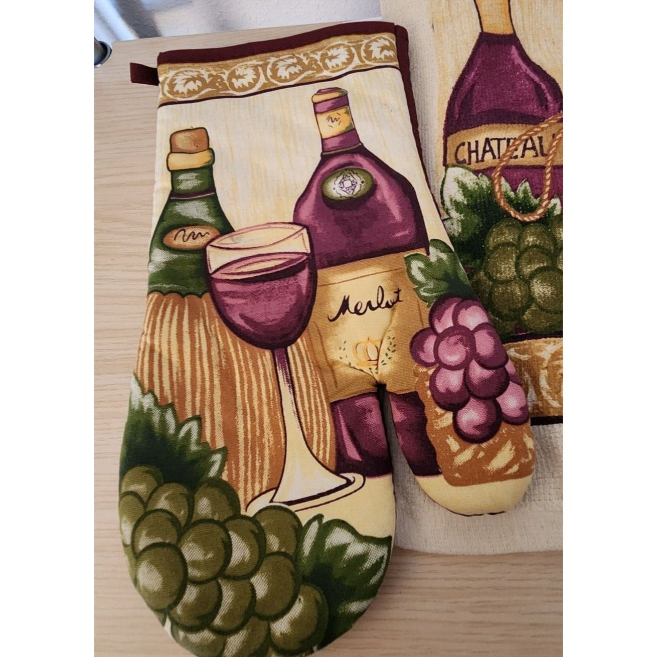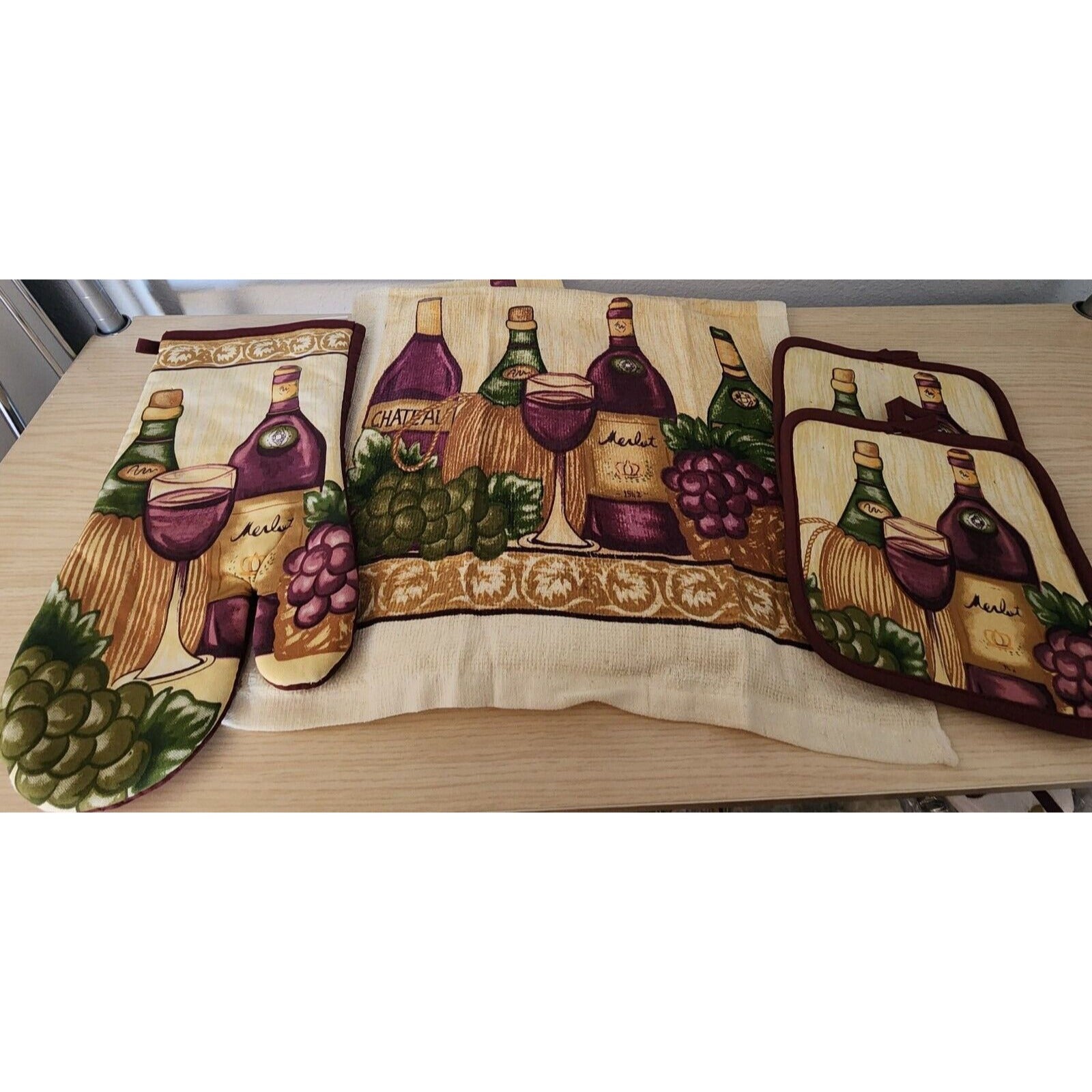 Kitchen Towel 5 Piece Set Merlot 2 2 Towels 2 Pot Holders, 1 Oven Mitt
