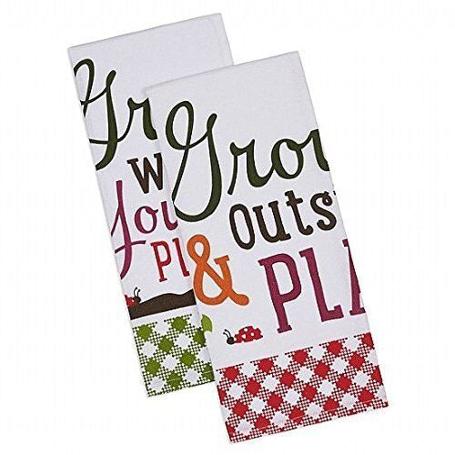 Kitchen Towels set 2 Design Imports Grow Printed Dishtowels 100% Cotton