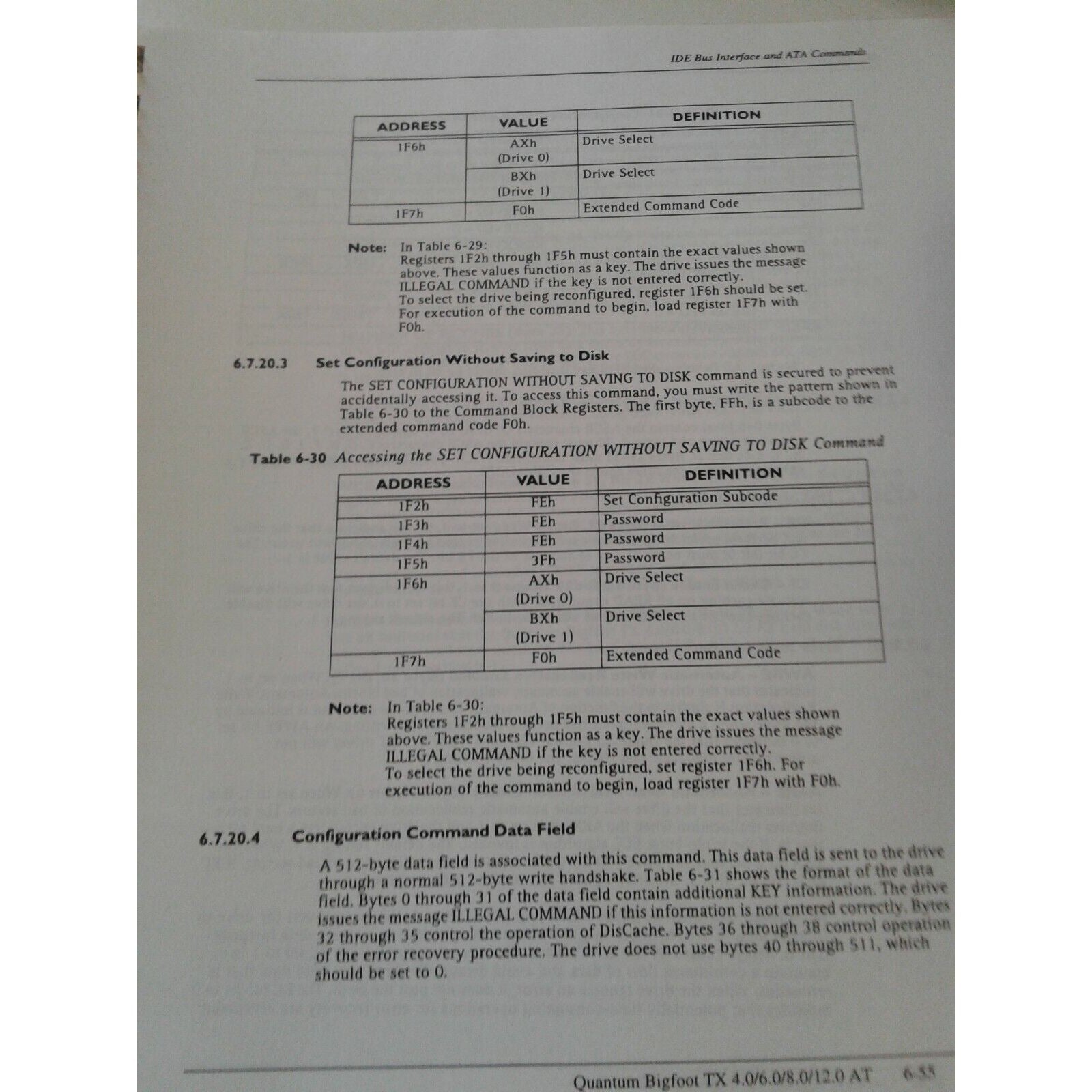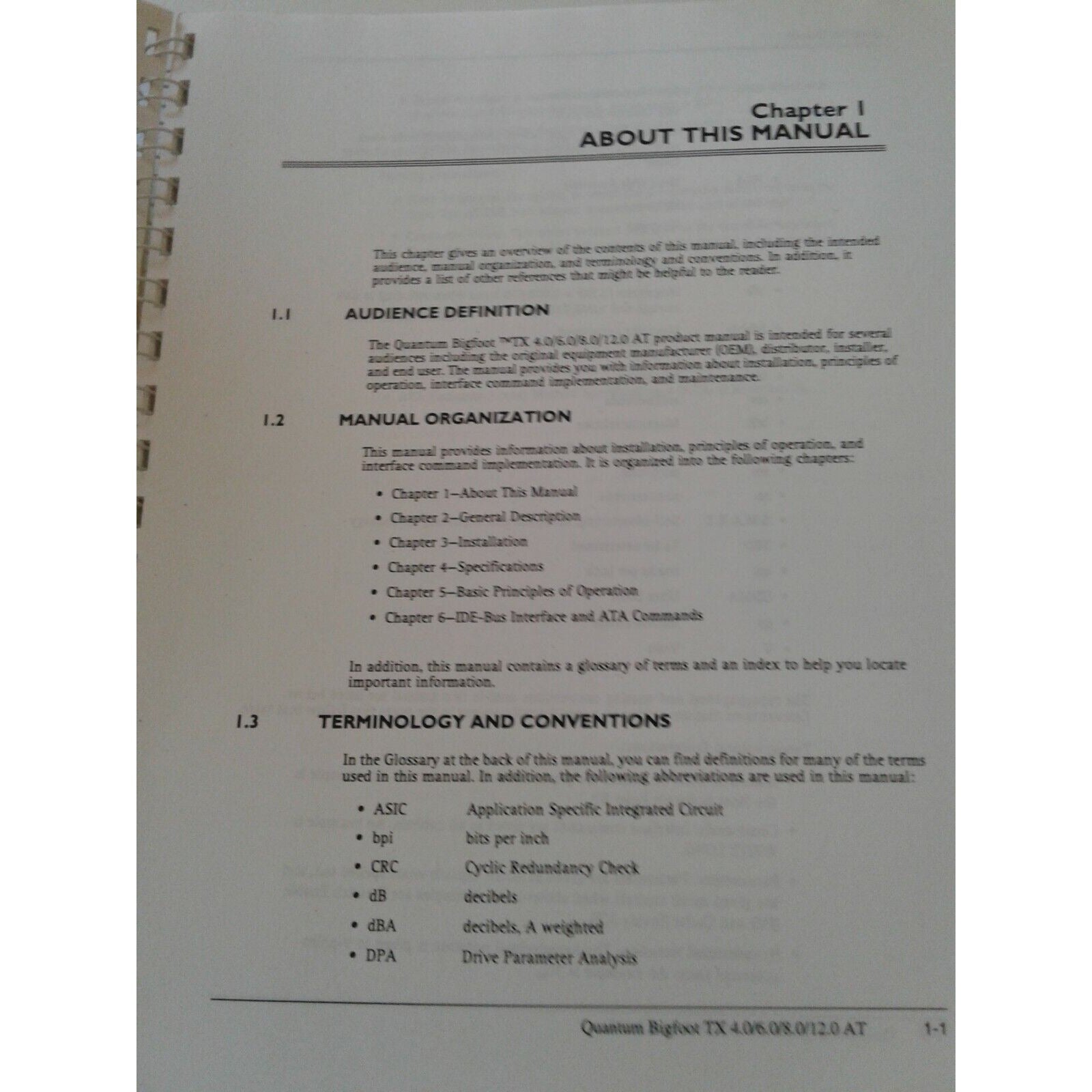 Manual Quantum Bigfoot TX 4.0 / 6.0 / 8.0 / 12.0 GB AT High Capacity Disk Drives