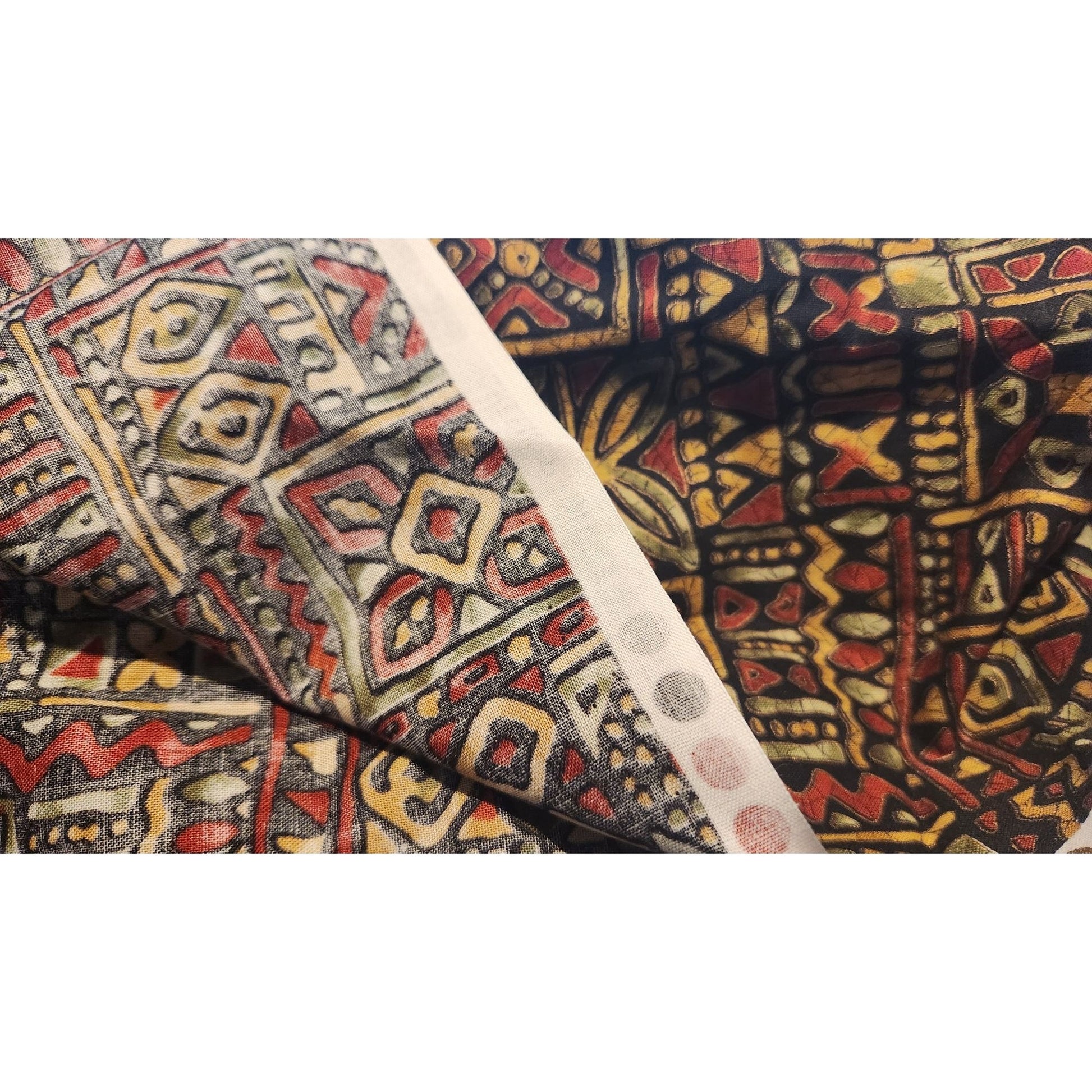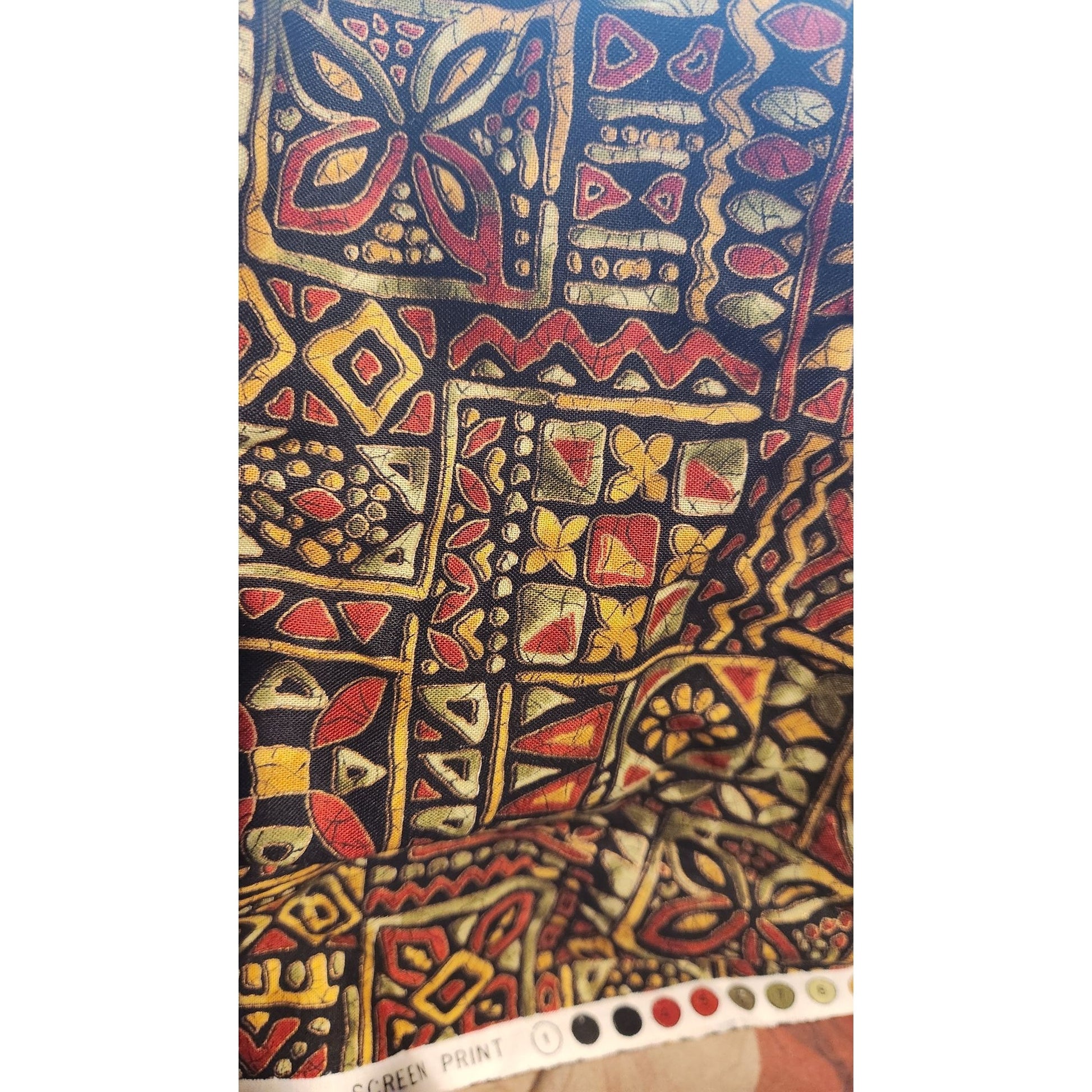 This Material Cotton Coral Reef 36 x 45 Screen Print from Hoffman International Fabrics features a unique geometric shapes pattern in green, brown, and red. The fabric is perfect for quilting, home décor, and apparel projects.