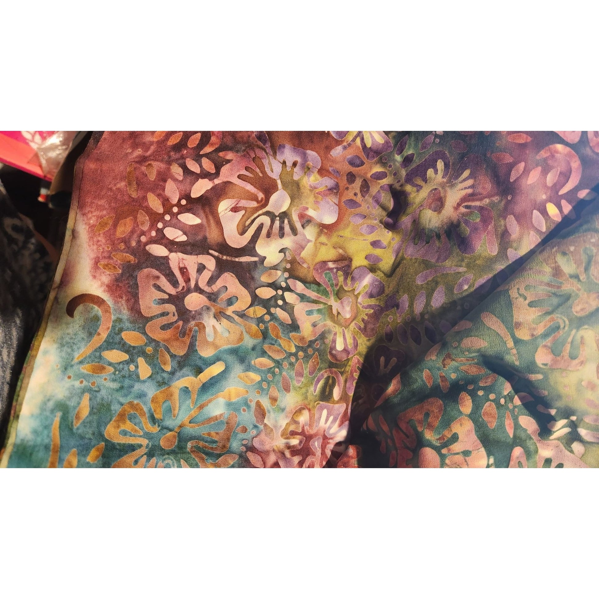 This 38" x 44" material cotton tie dye fabric features a vibrant flower background, perfect for crafting, clothes sewing, and quilting.