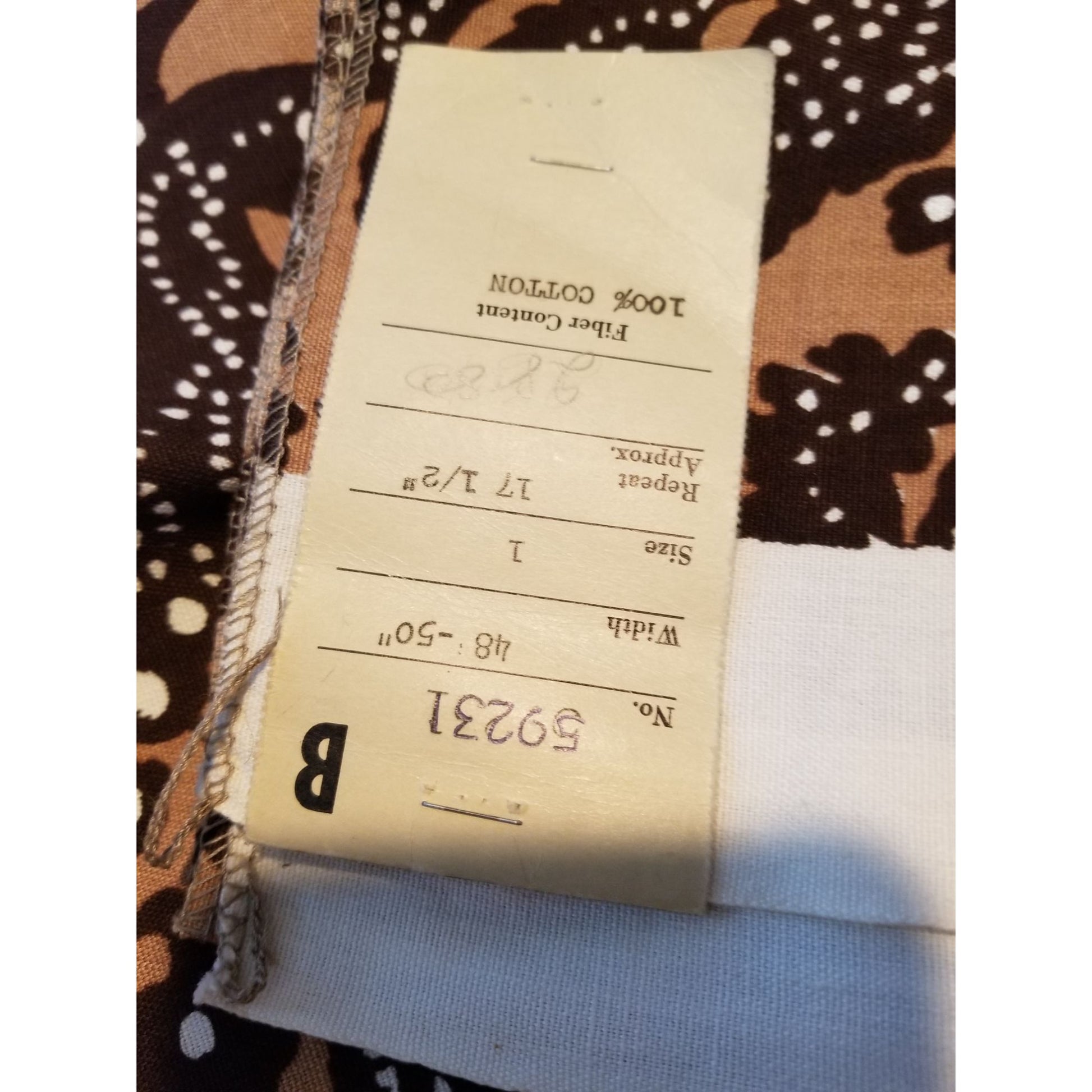 Material Fabric Brown White 100 % Cotton 2 yards 46' x 36" pieces Apr 1976