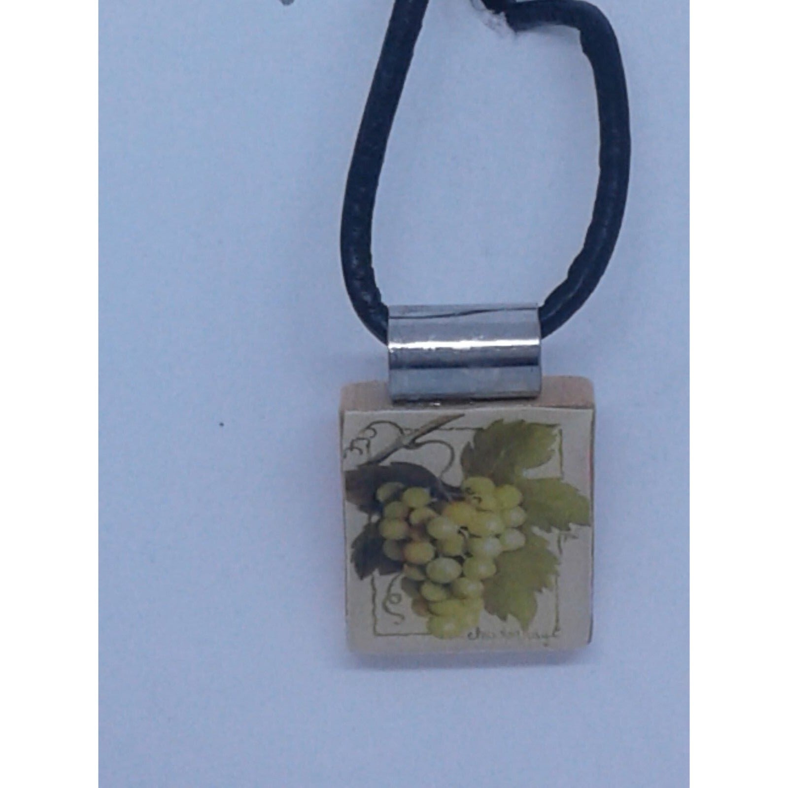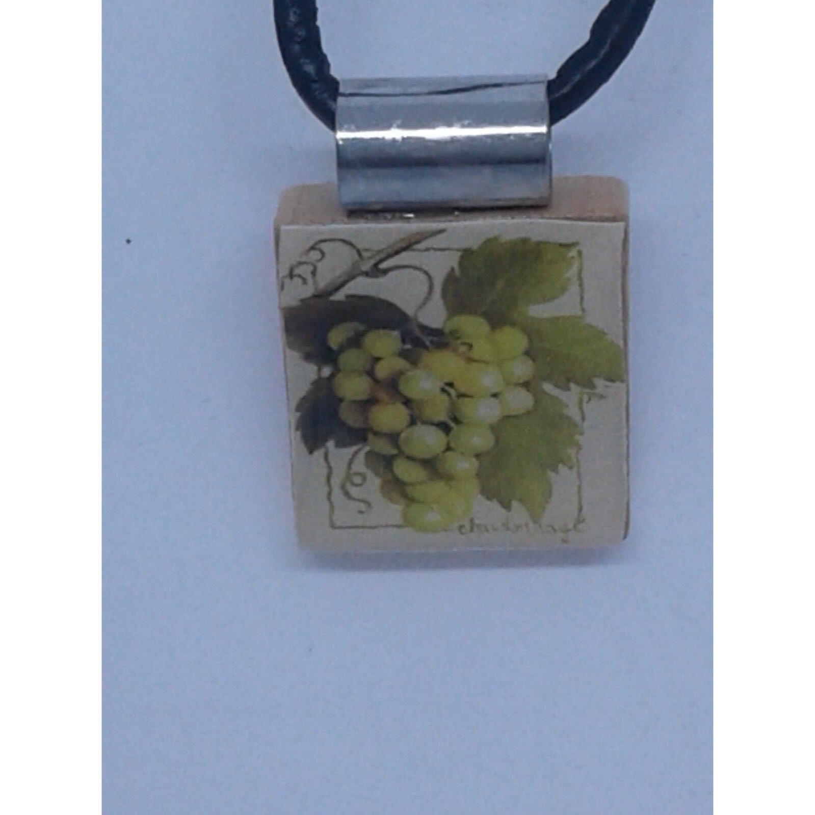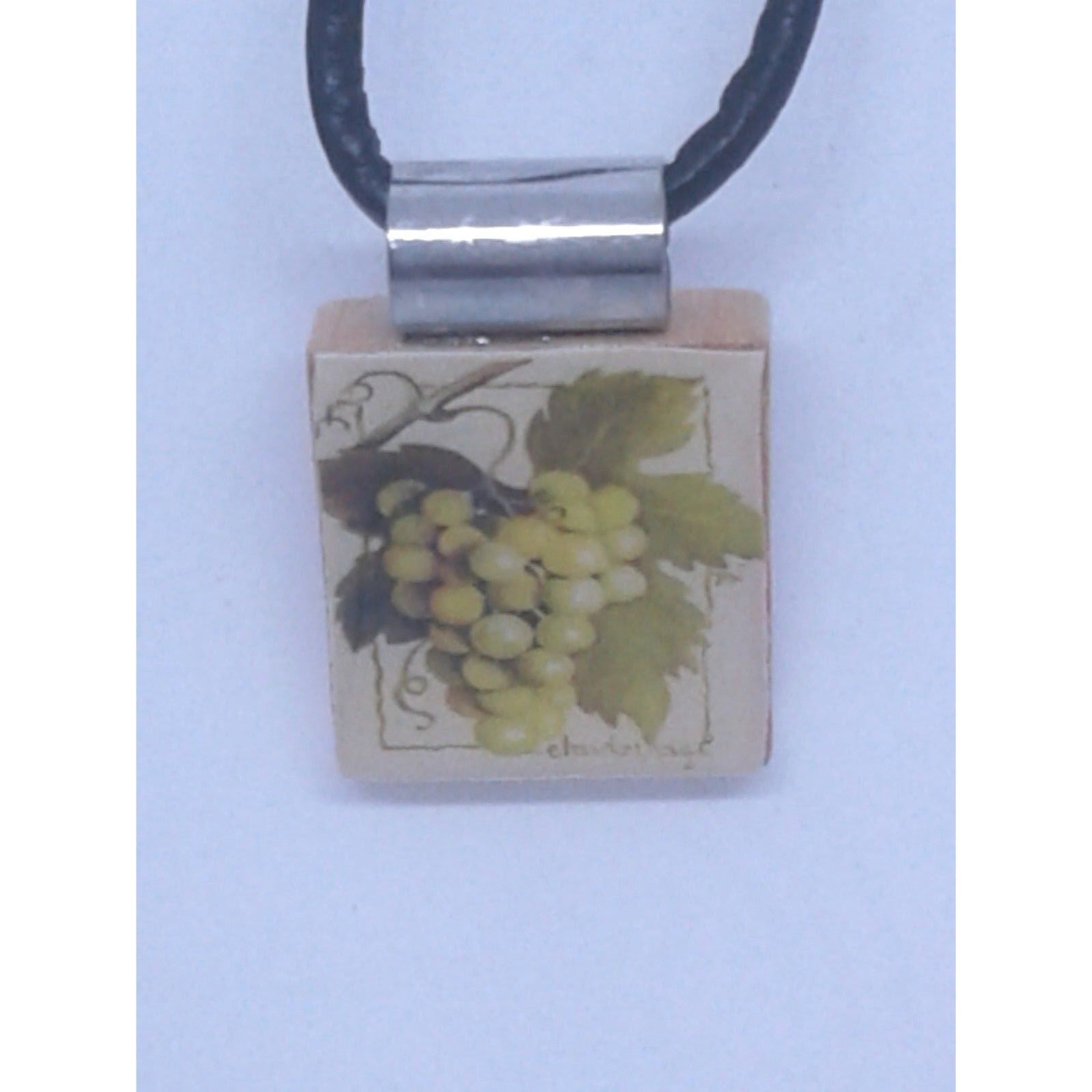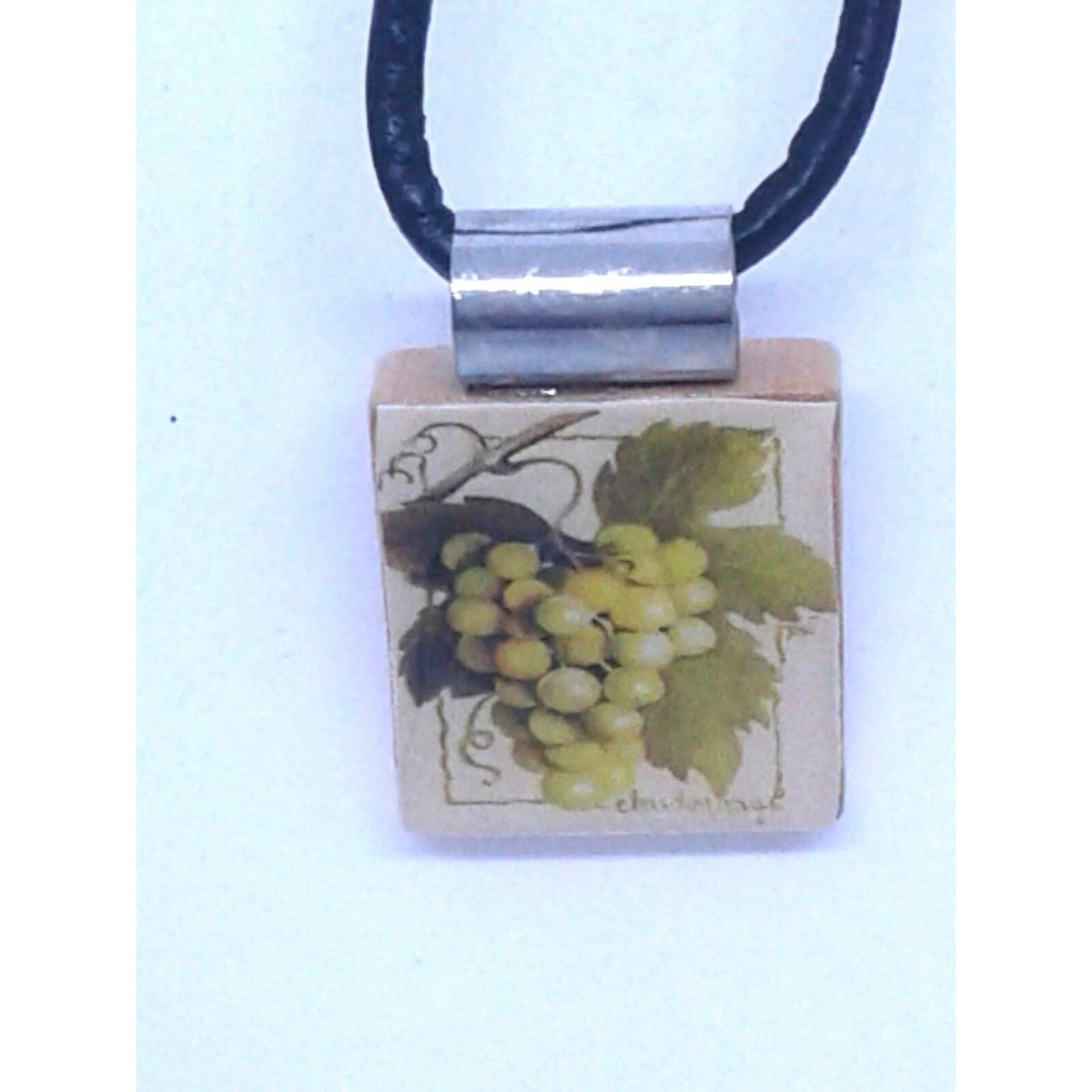 Necklace 1" Green Grape Cluster Wine Printed Scrabble Game Tile Leather Cord