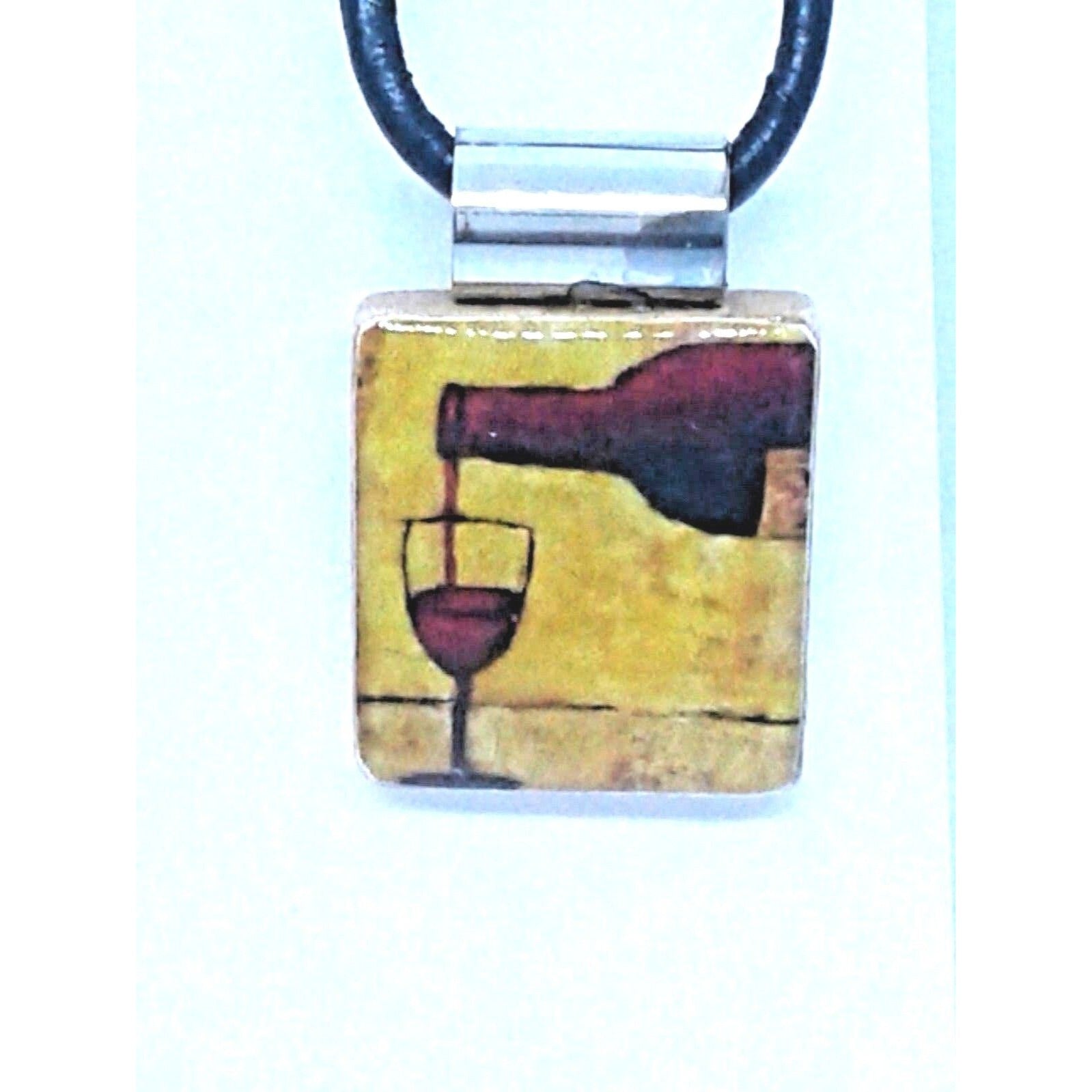 Necklace 1" Wine Bottle Glass Printed Scrabble Game Tile Leather Cord
