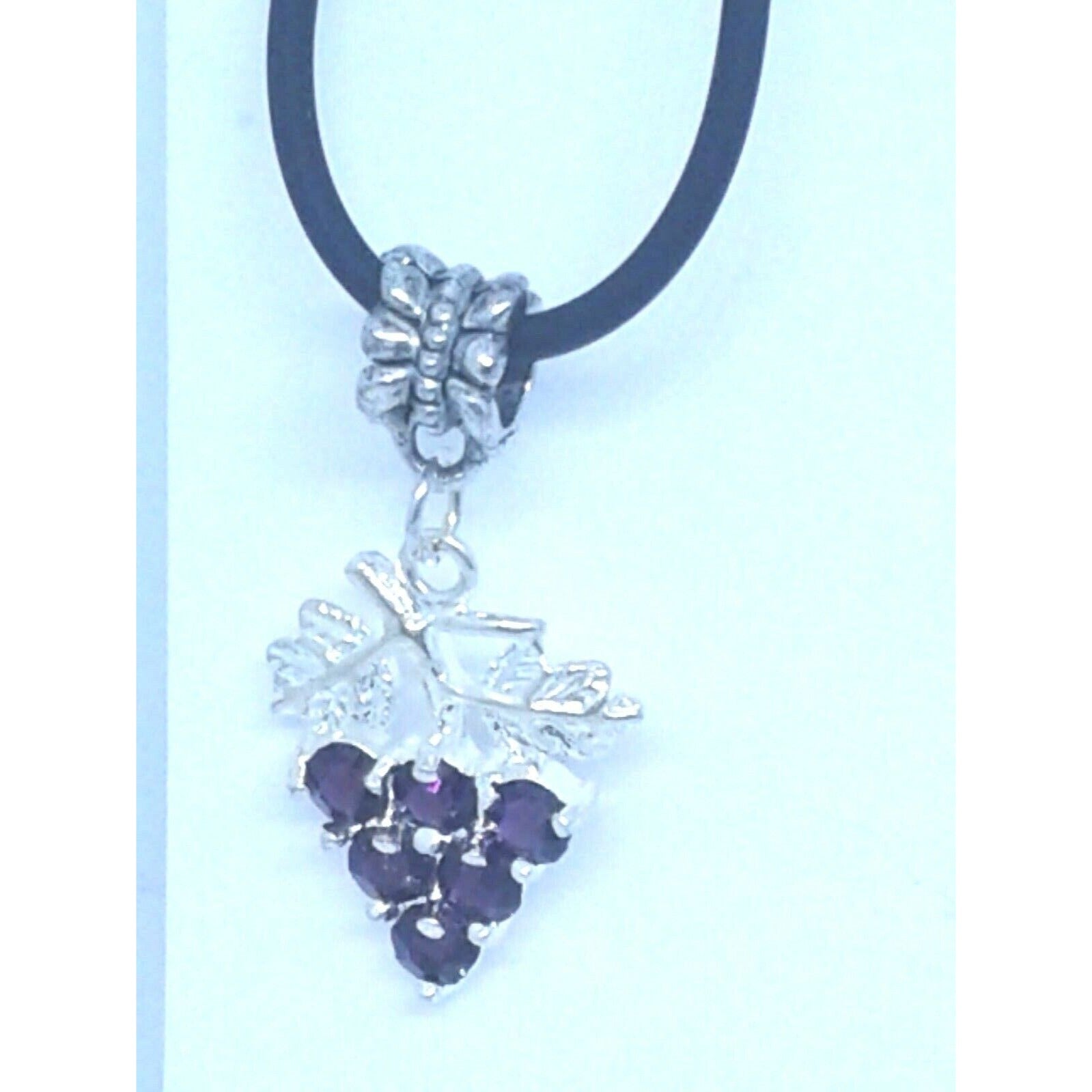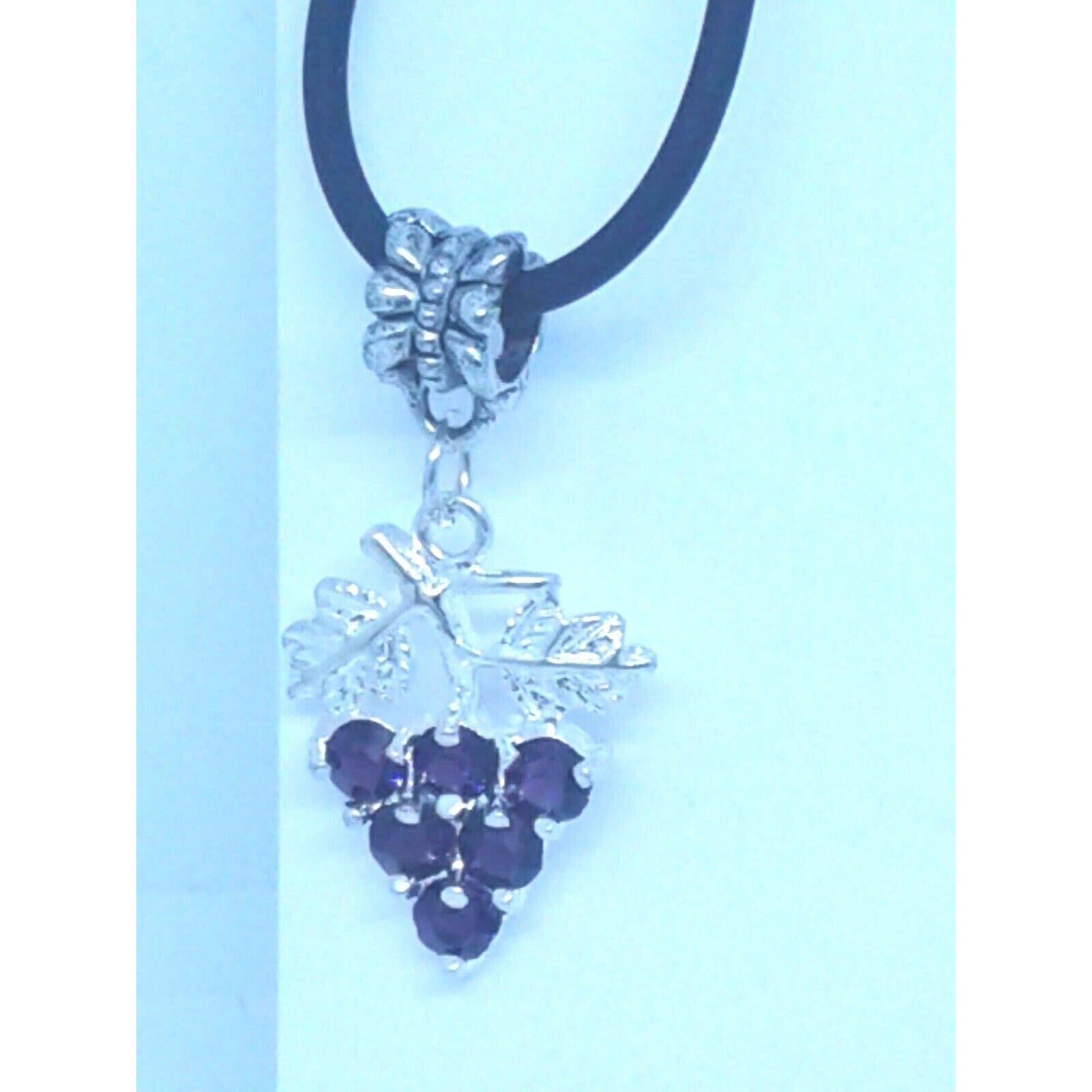 Necklace Purple Crystal Grape Cluster Leaves Vines 1" Long Chain Leather Cord