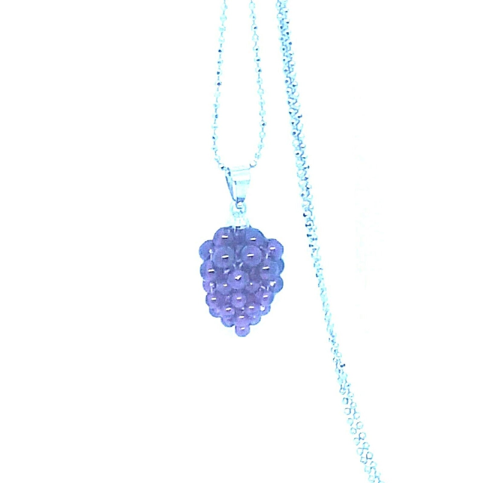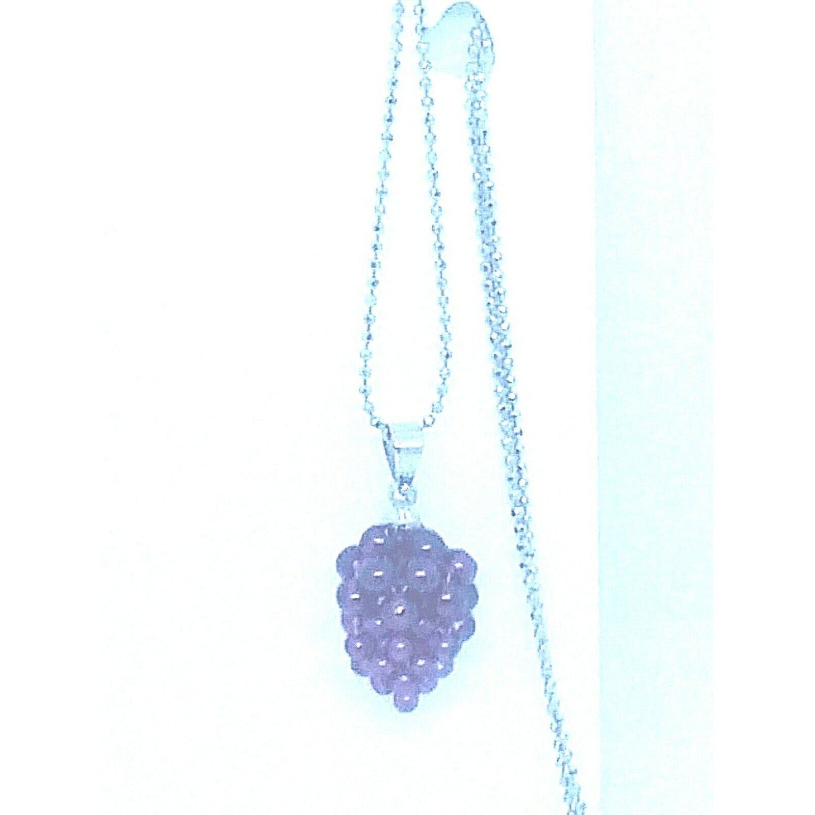 Necklace Purple Grape Cluster 1/2 " Bead 18" Silver Chain