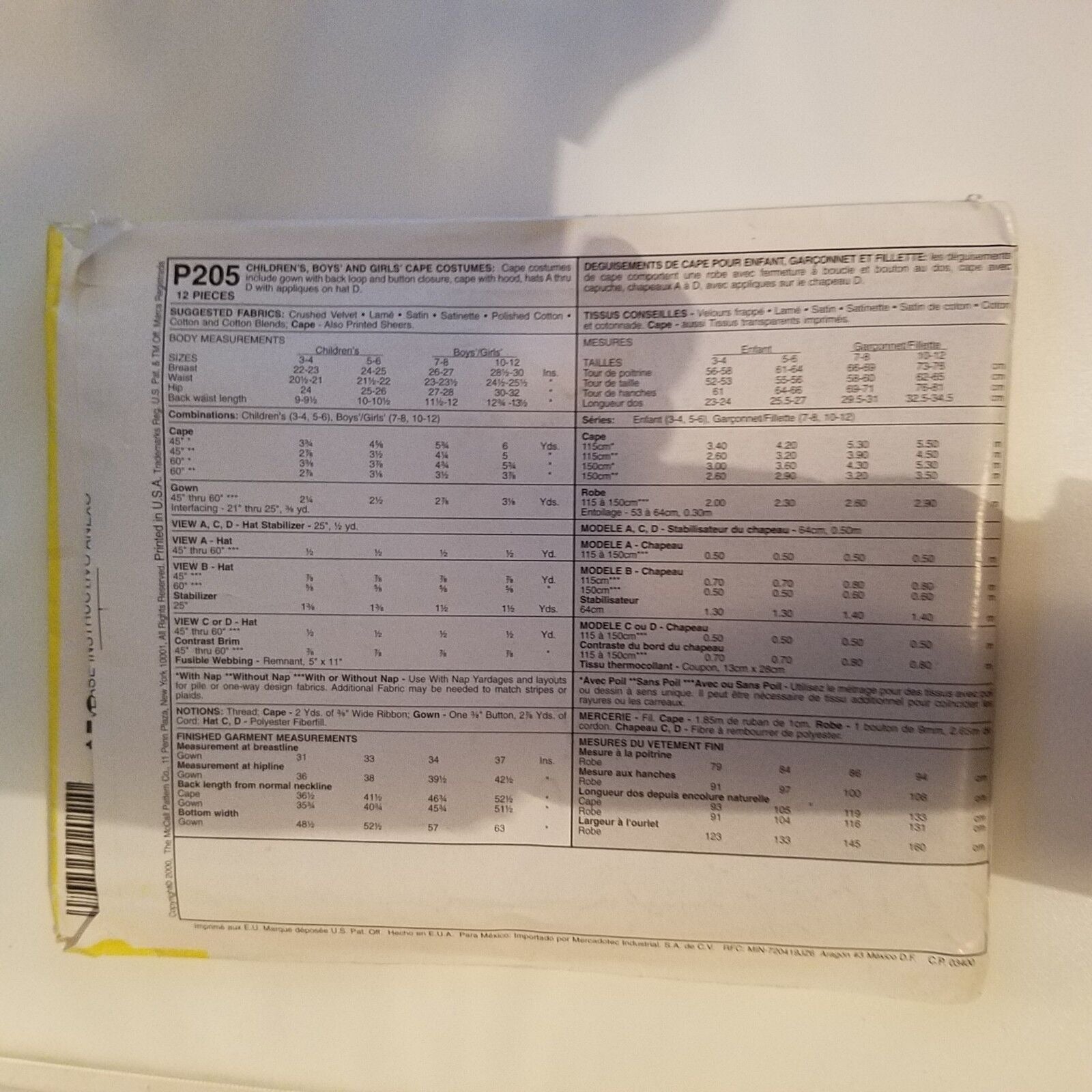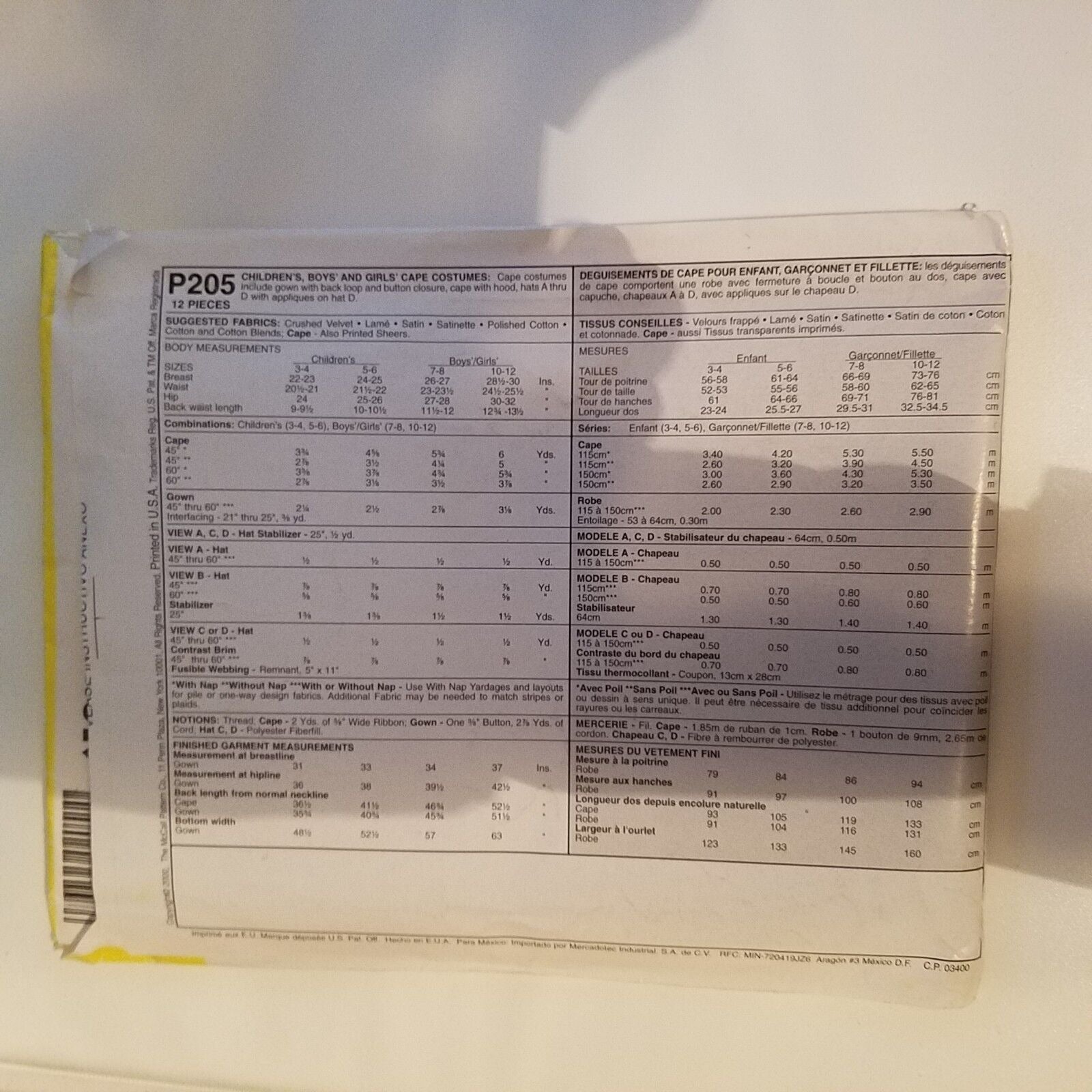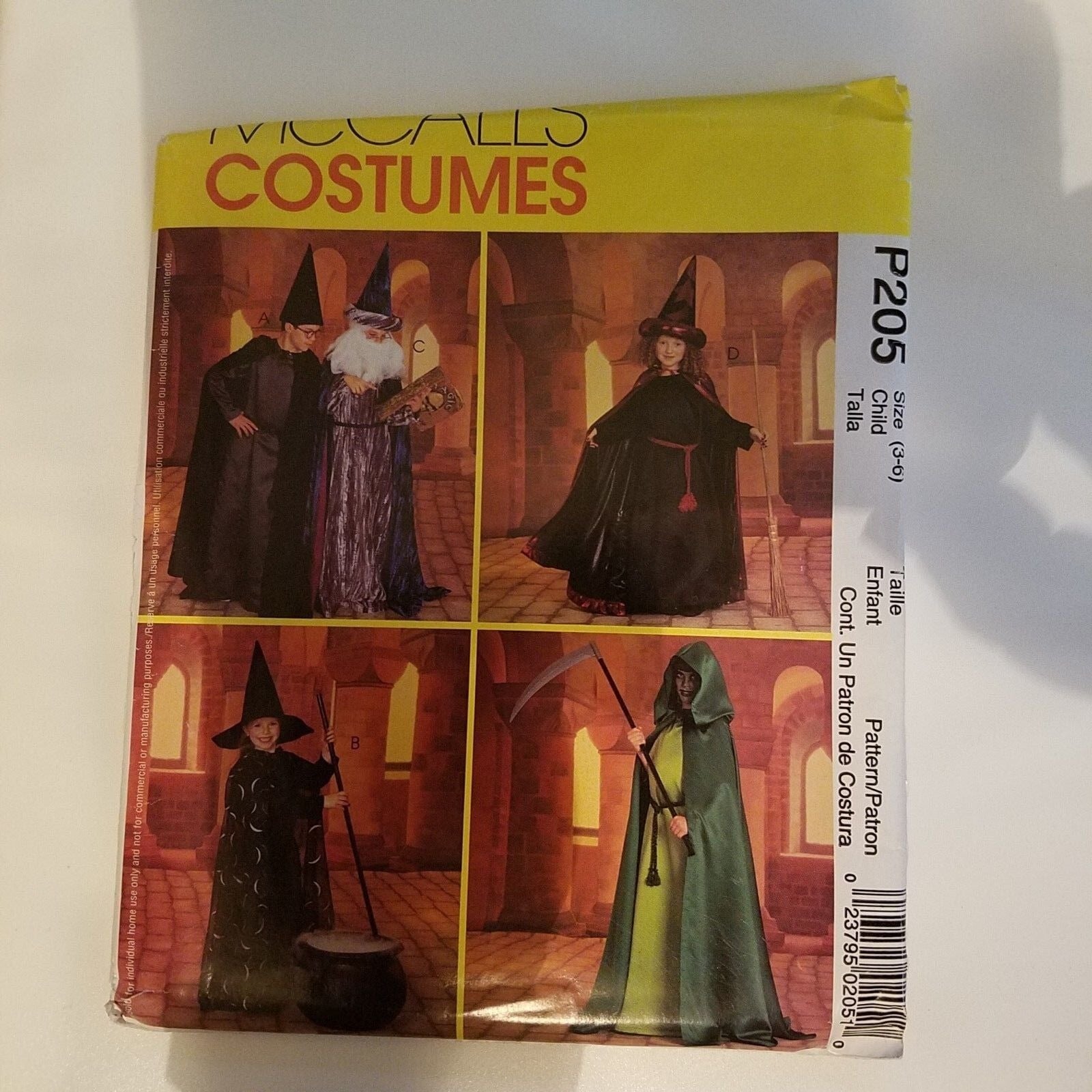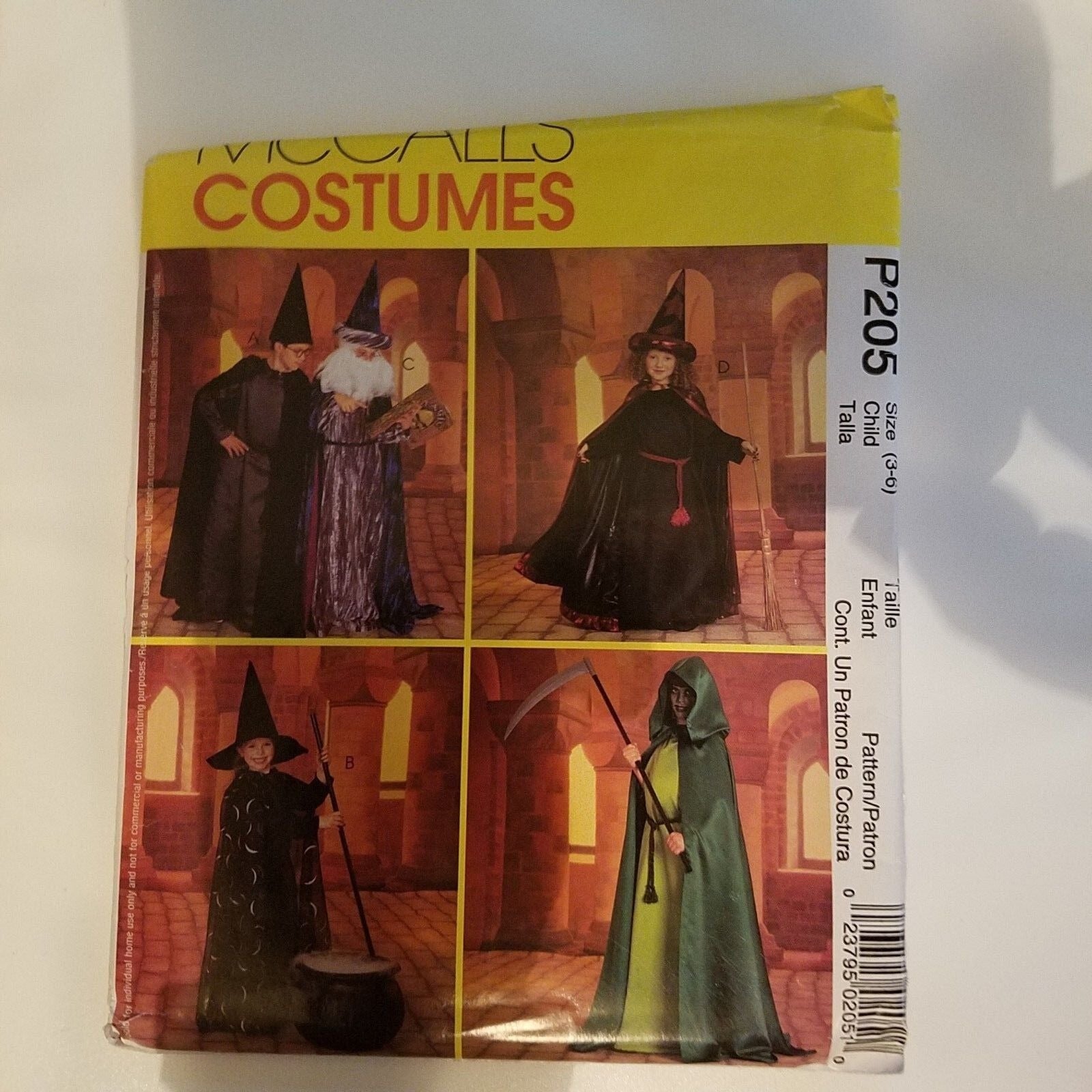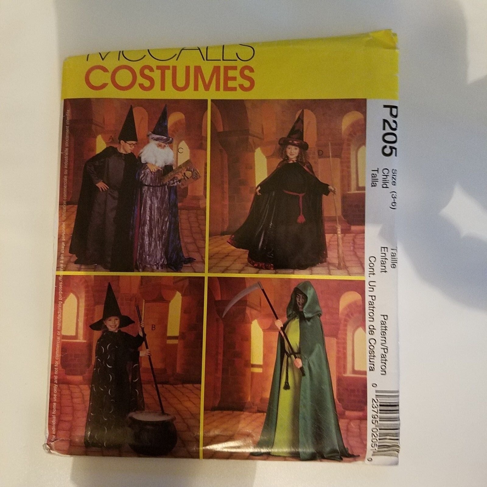 Pattern McCall's # P205 Costume Size 3-6 Witch Wizard Cape Robe Crown Hat