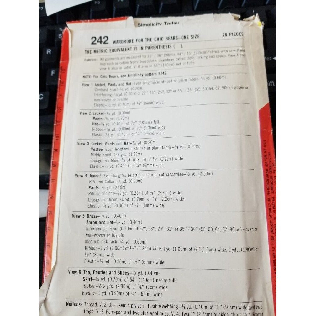Pattern Simplicity # 242 Chic Bears Clothing Pattern
