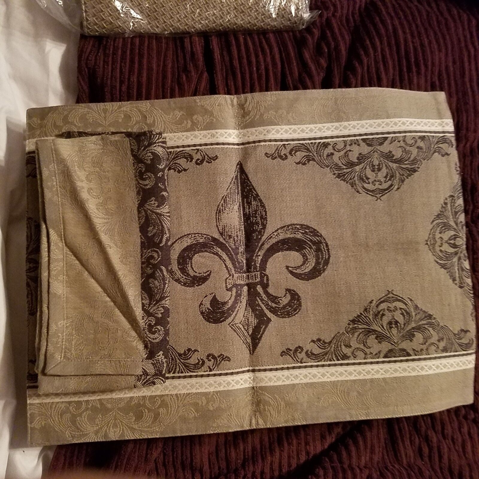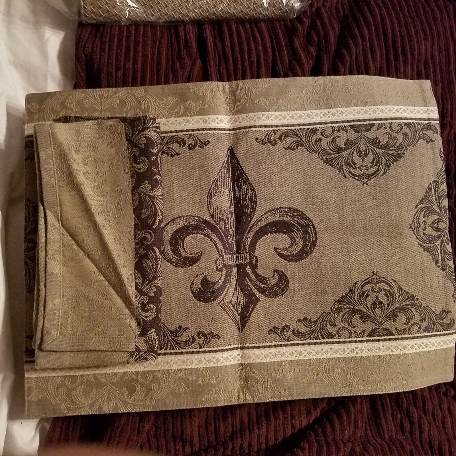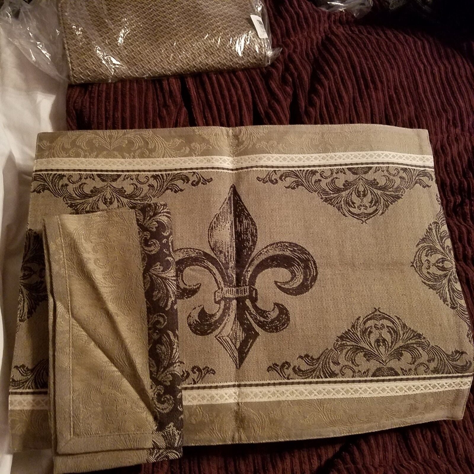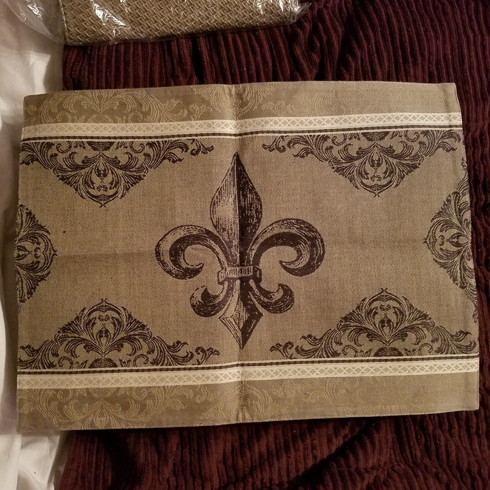 DII Design Imports 1 each Placemat and Napkin Set Flor De Lis Printed Reversible