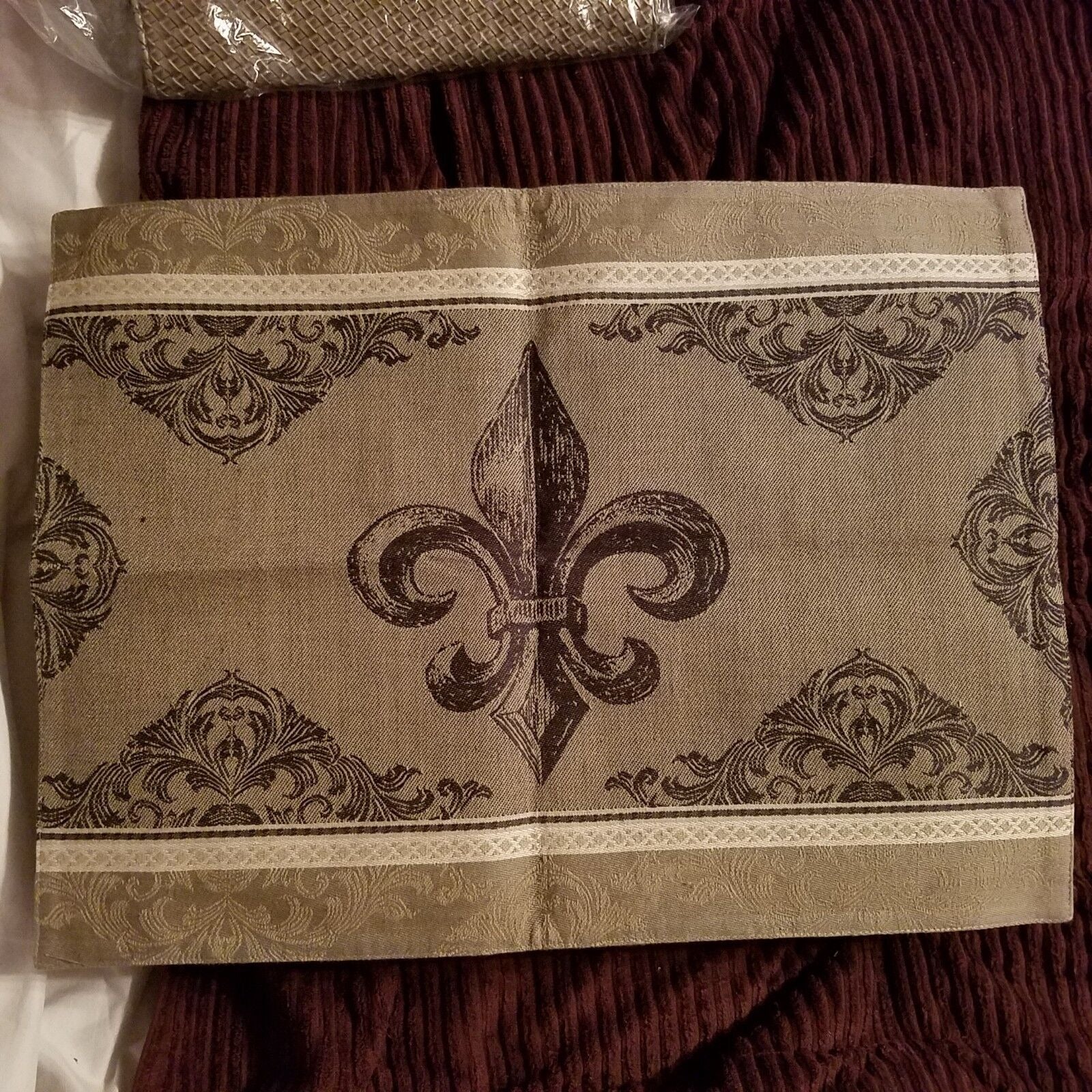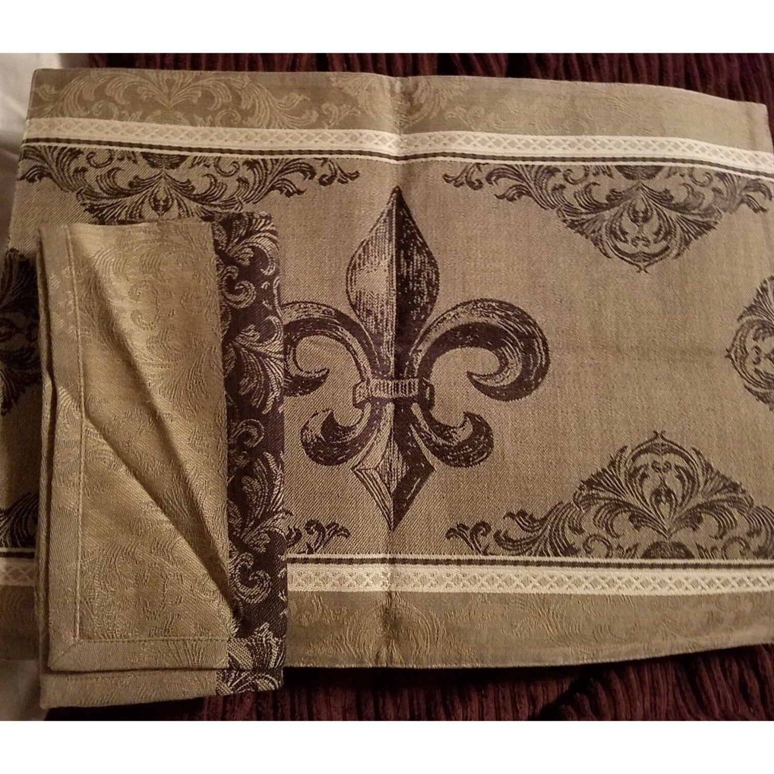 Placemat Napkin Set 1 Each Design Imports Flor De Lis Printed Reversible