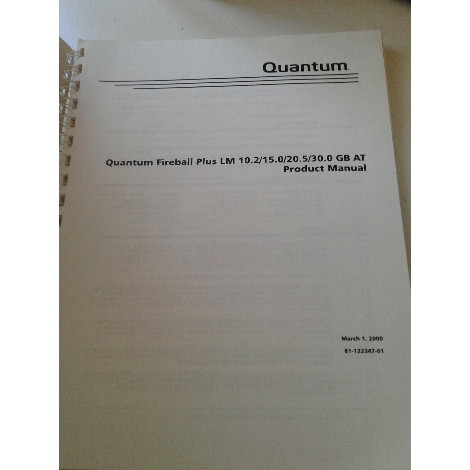 Quantum Product Manual Fireball Plus LM 10.2/ 15.0 / 20.5 / 30.0 GM AT
