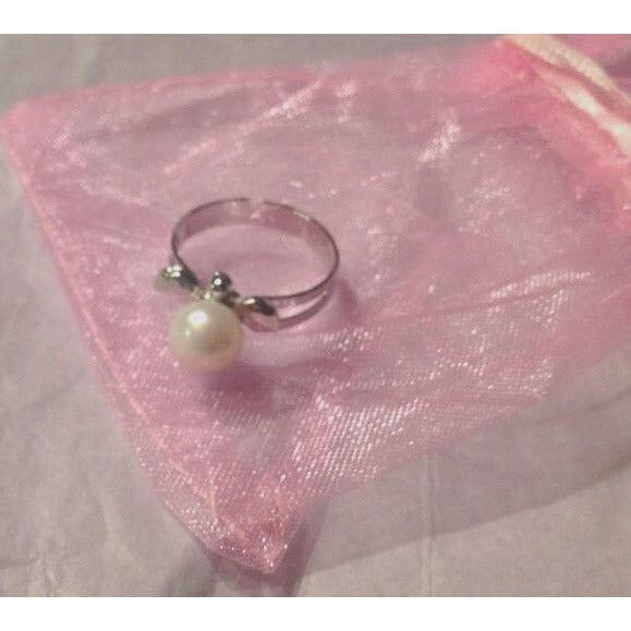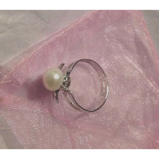 Ring Turtle Freshwater Pearl Silver Adjustable Ring