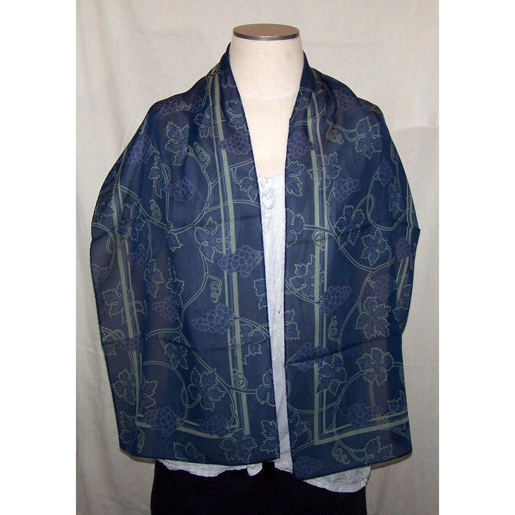 Scarf Blue Scarf with a Cream Border Grapevines all over
