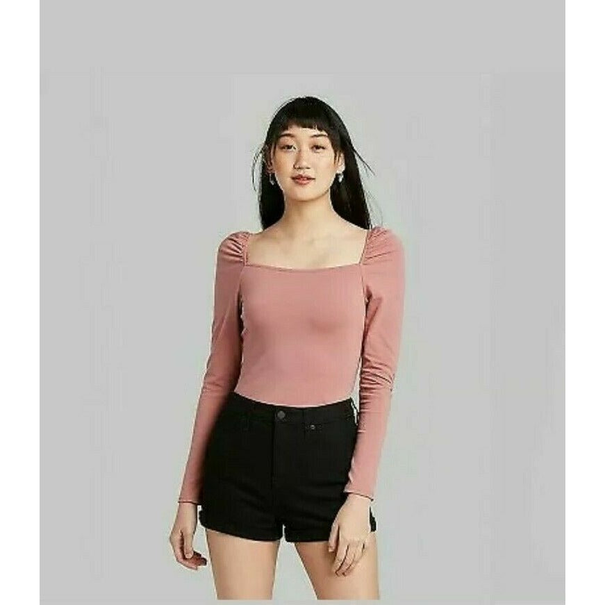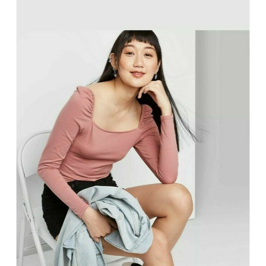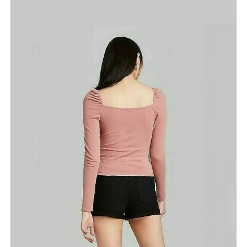 Women's Wild Fable Long Sleeve Square Neck Blouse Rose L