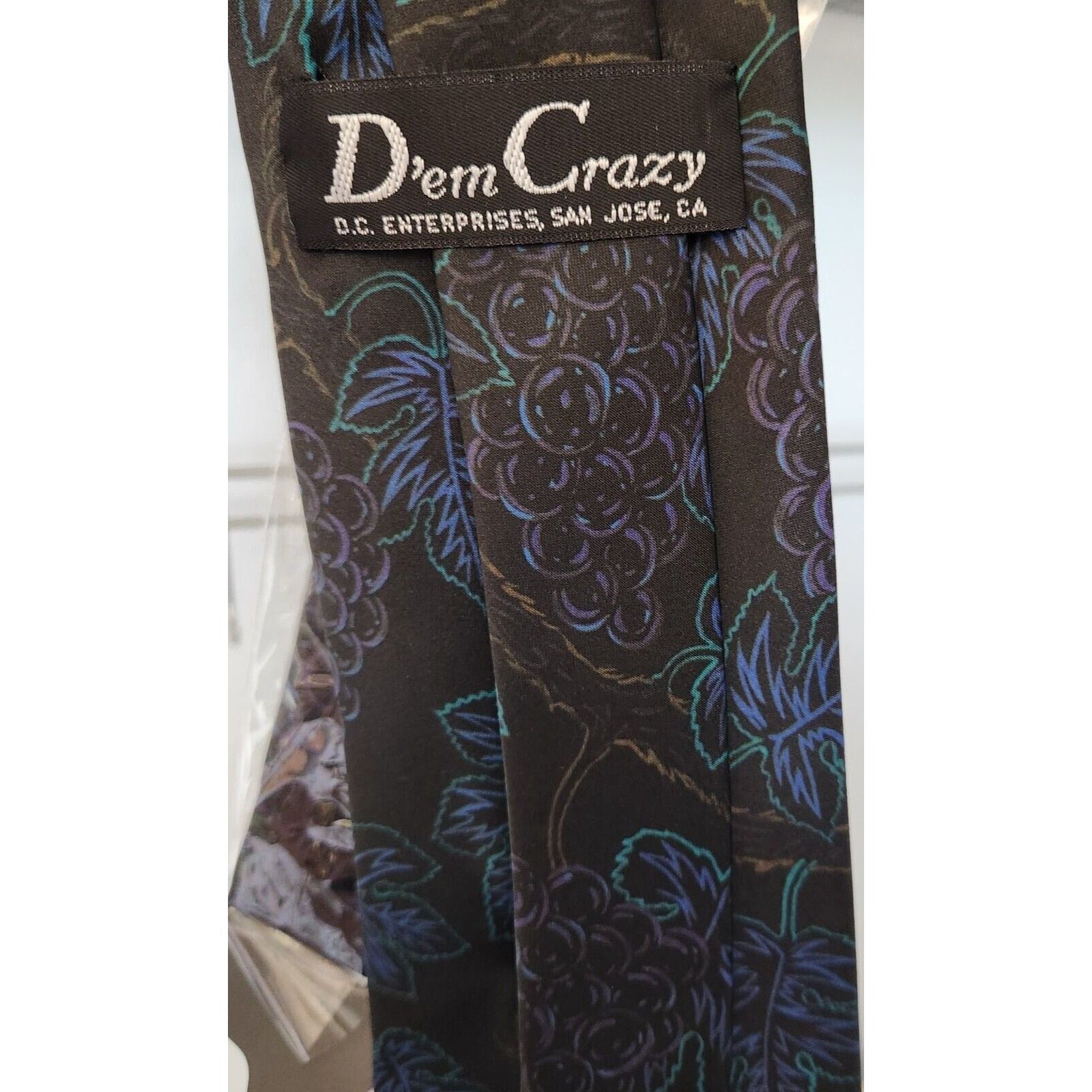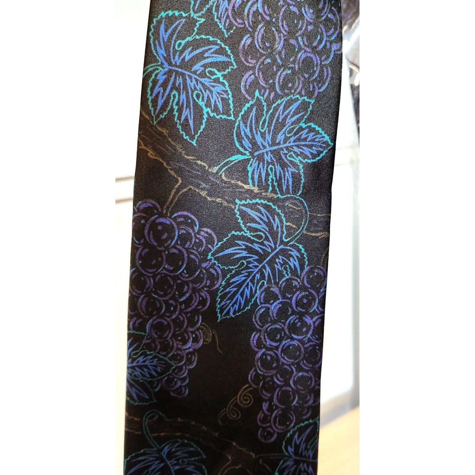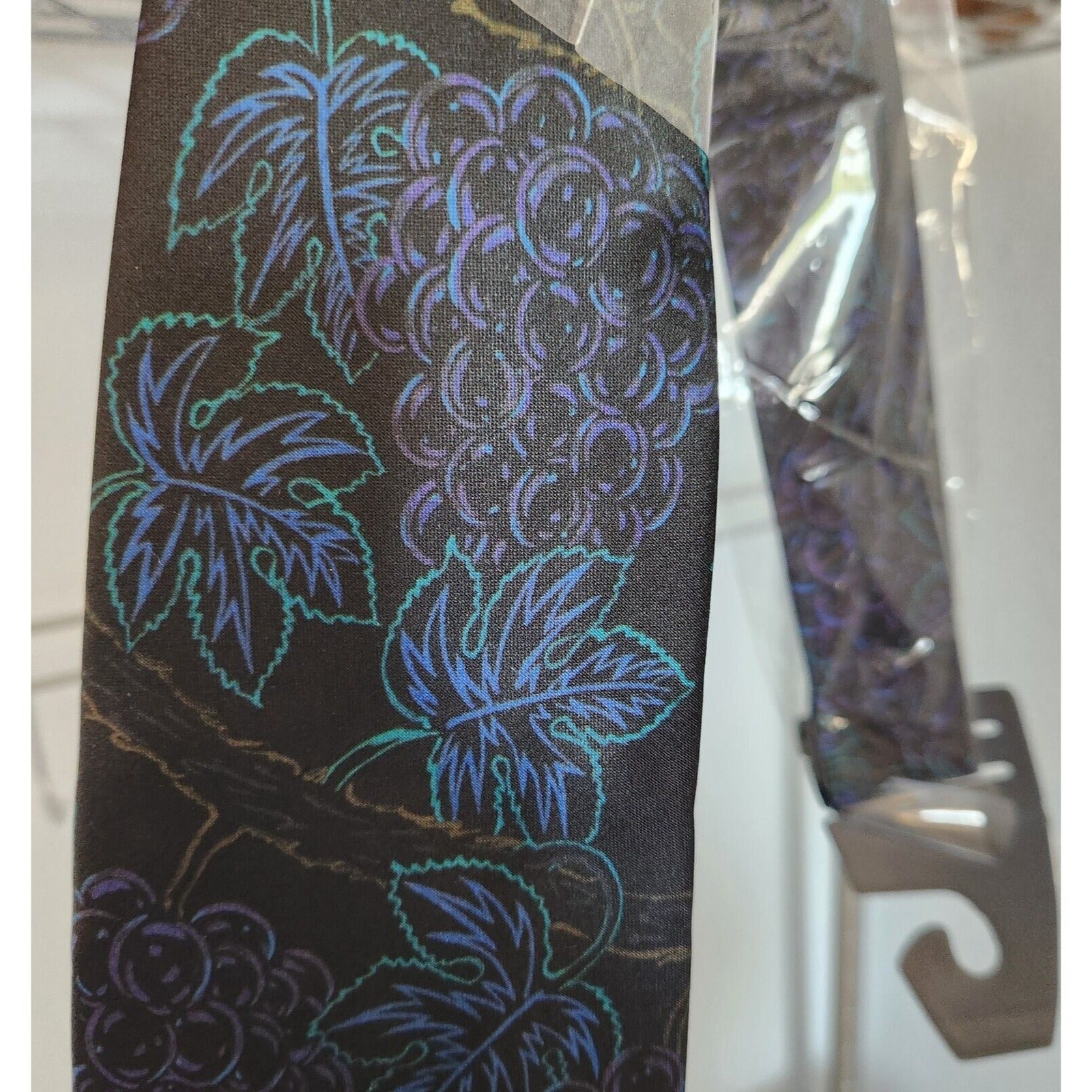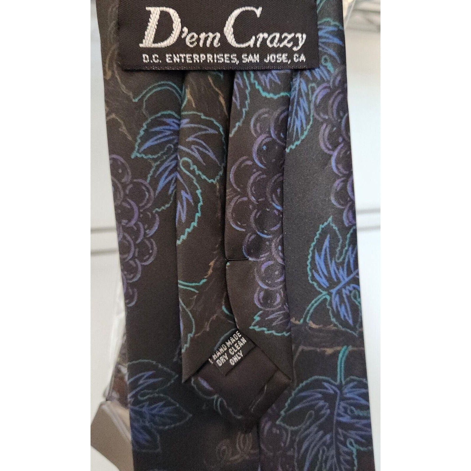 Silk Tie Brand D'em Crazy Black Multi Color Grape Clusters 56" x 4" 100% Silk