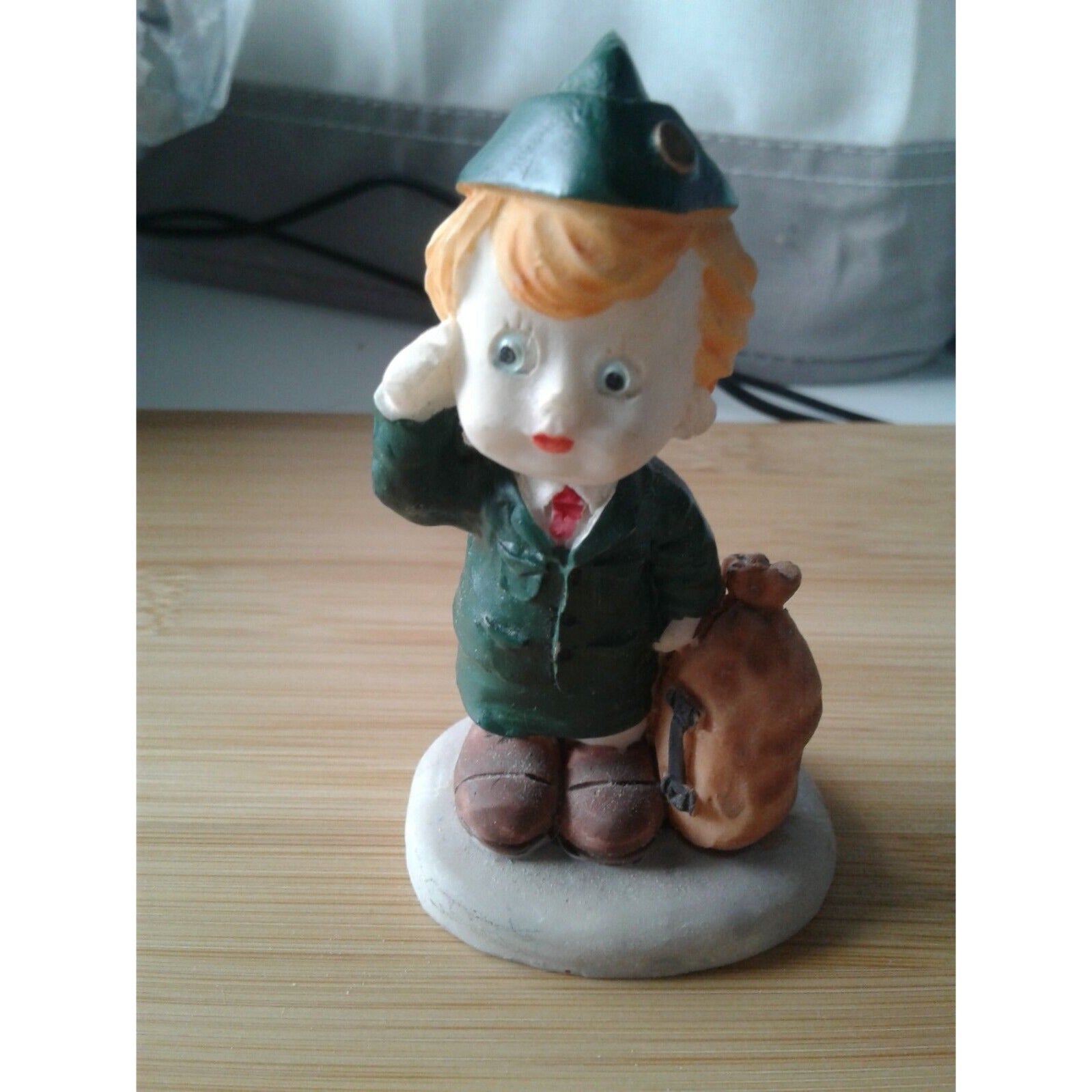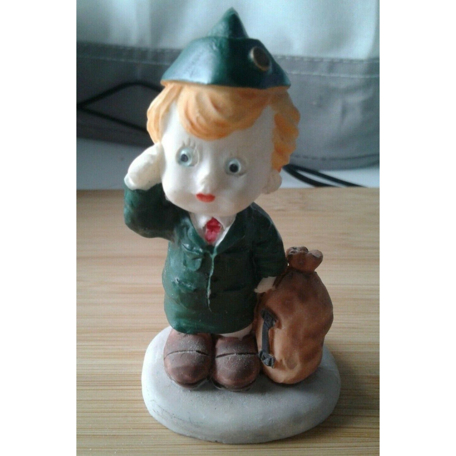Statue Set of 2 Vintage Service People One Blue One Green No markings Ceramic 3" Tall 2" Bottom