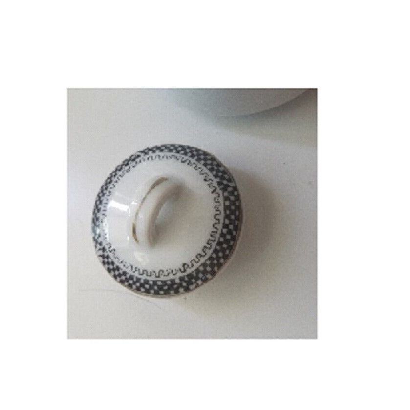 Sugar Bowl MC Made in Japan White Black Checkerboard pattern Gold Trim Handles