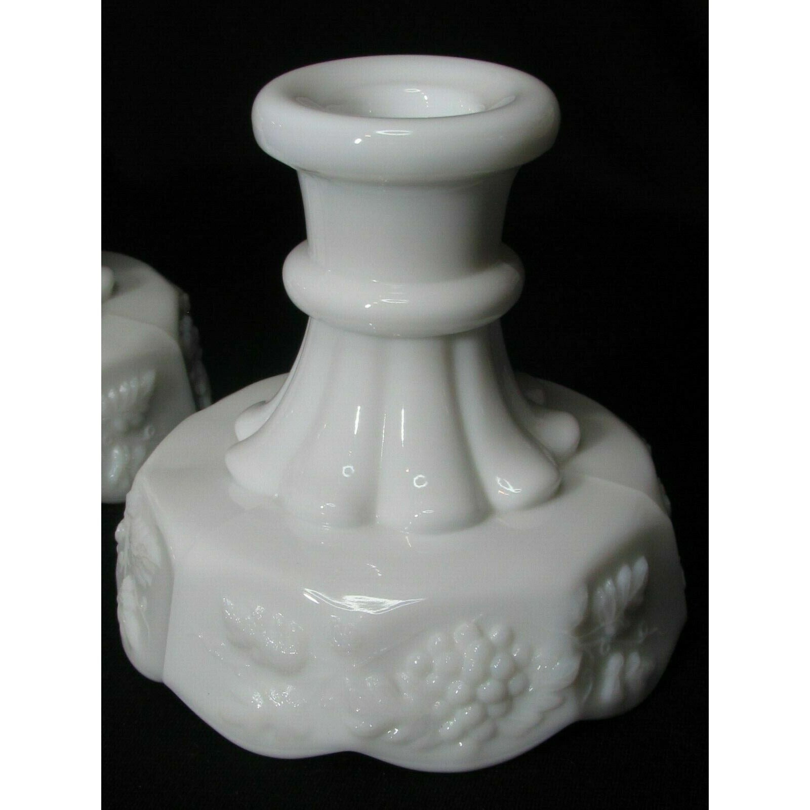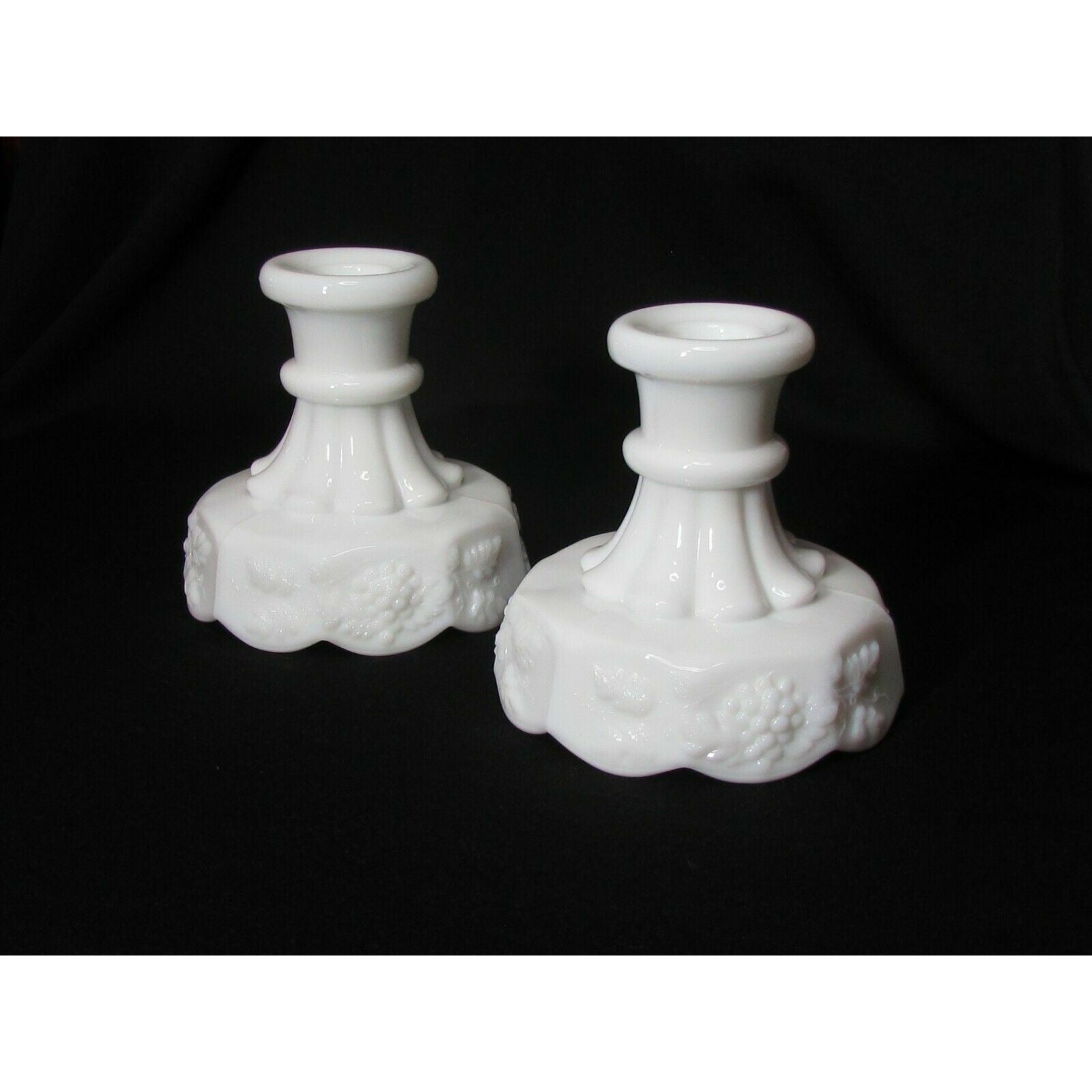 Milk Glass Westmoreland Candle Stick Holders Grape Panel