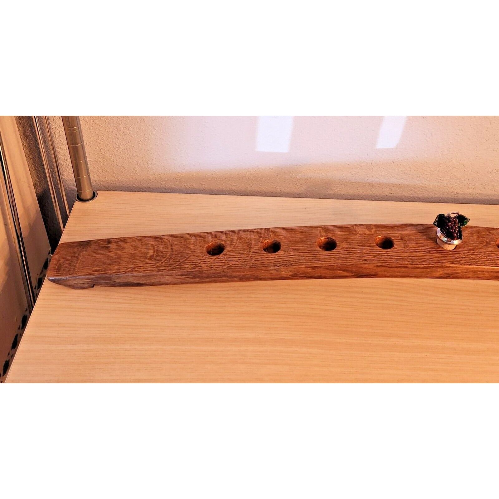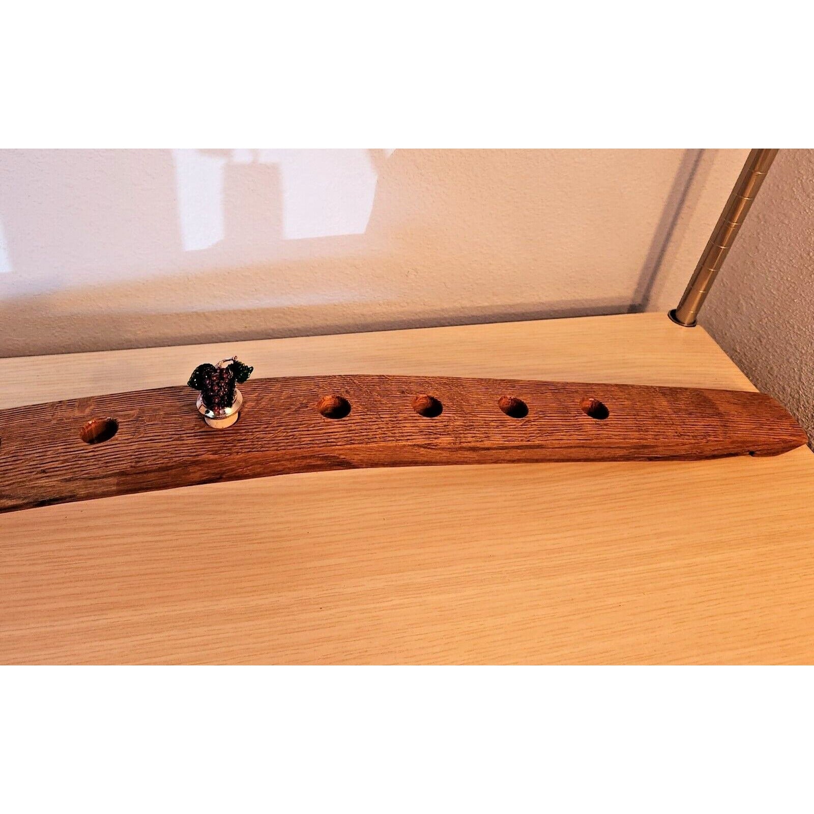 Wine Barrel Bottle Stopper Holder 9 Holes Display Grape 34 " x 21/2" x 2 1/2"