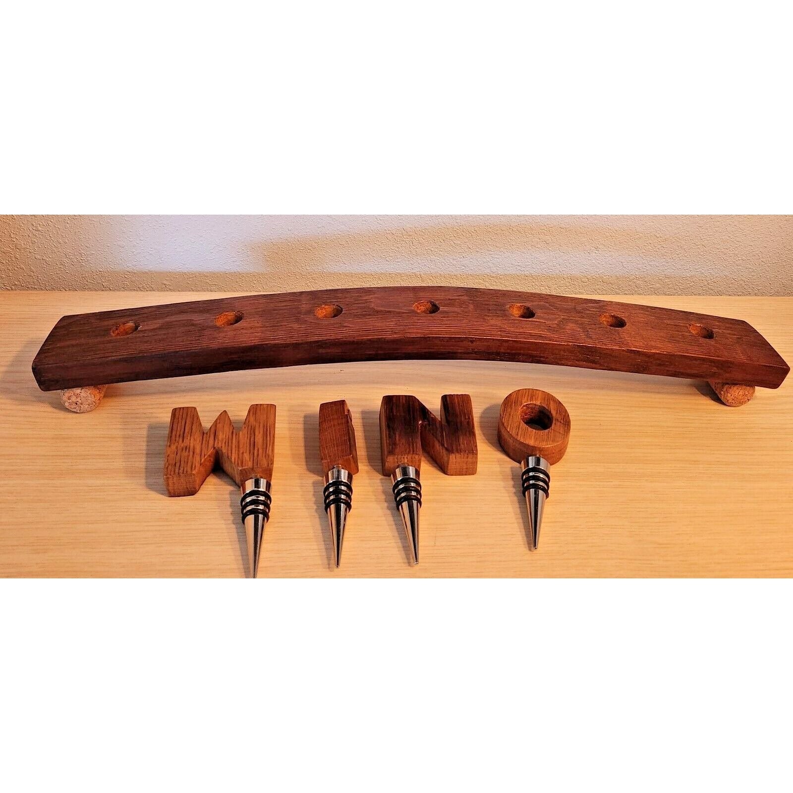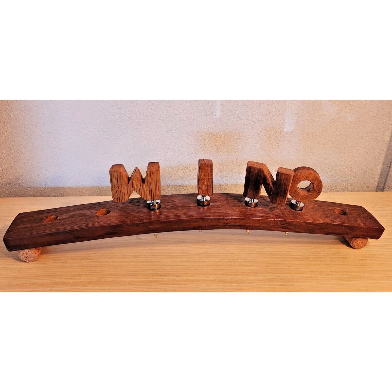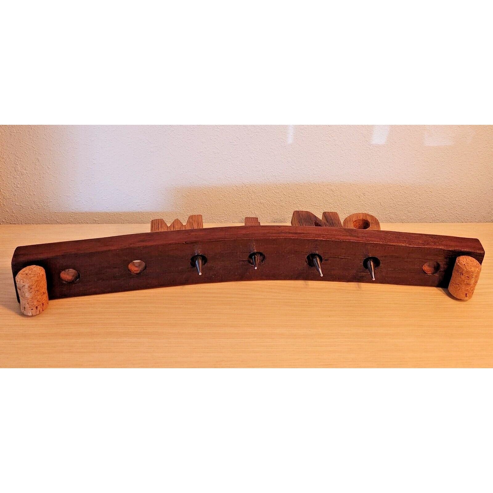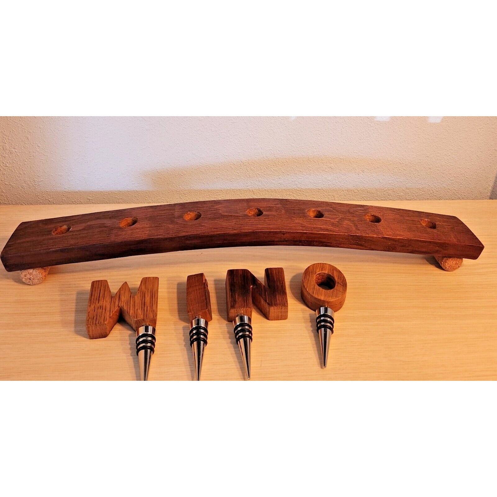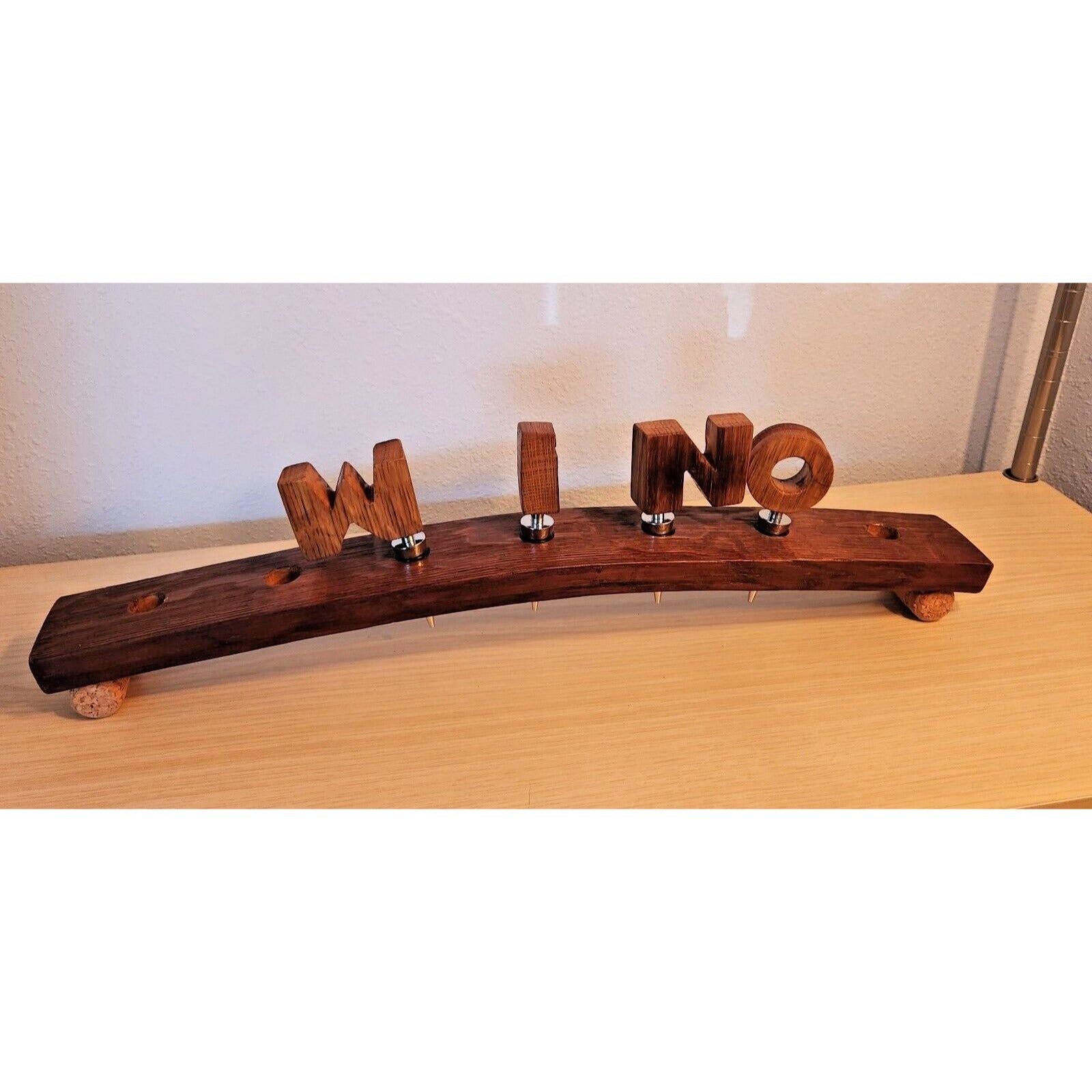 Wine Barrel Stopper Holder 7 Hole Display WINO Cork Feet 22 " x 3 " x 3 "