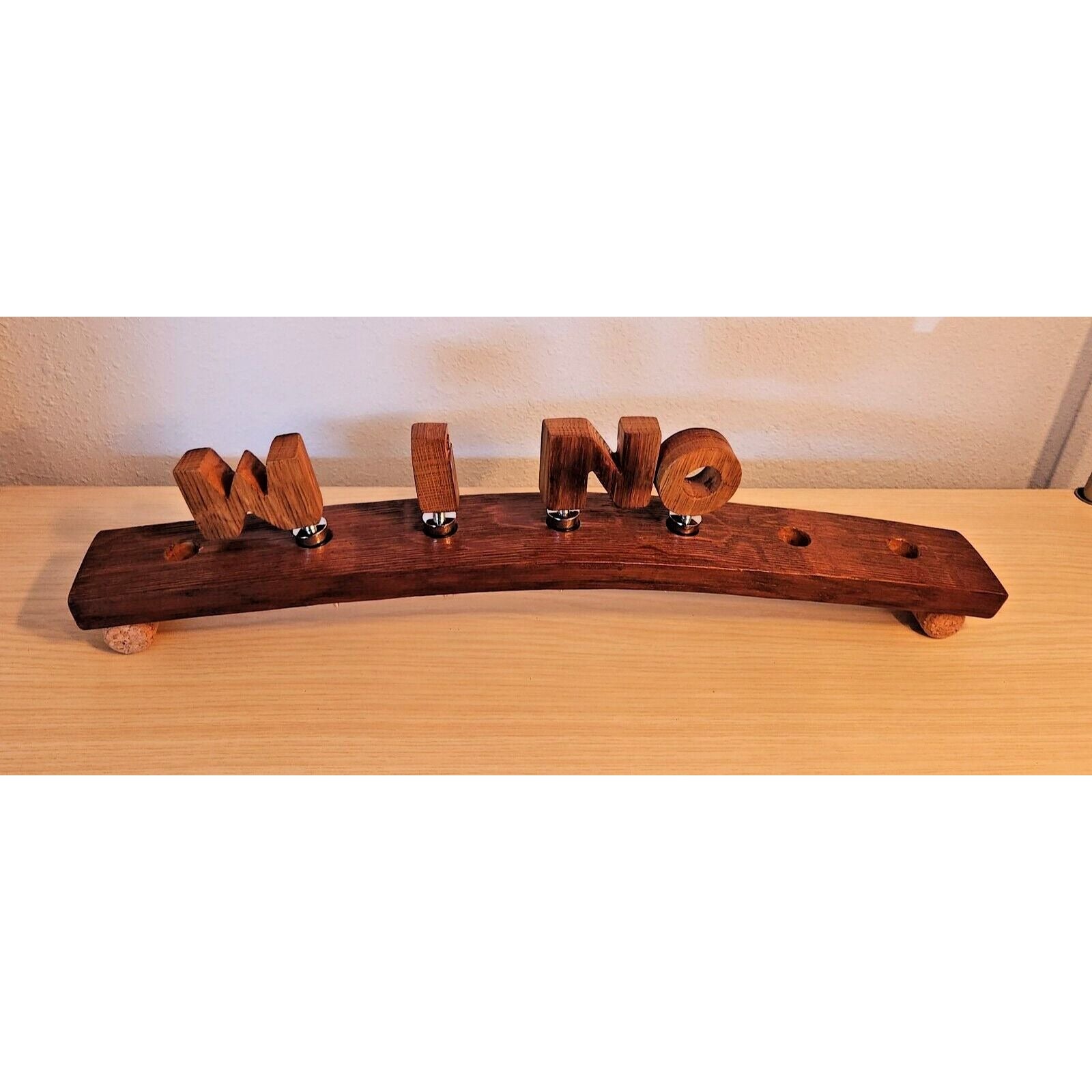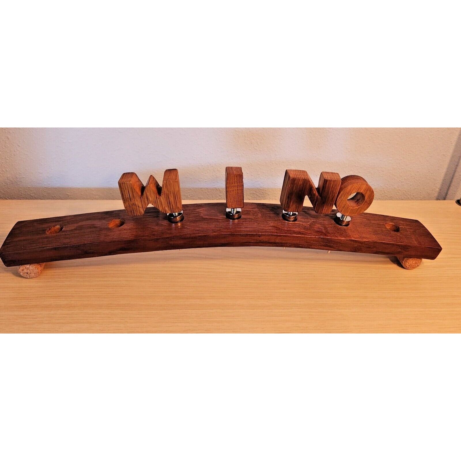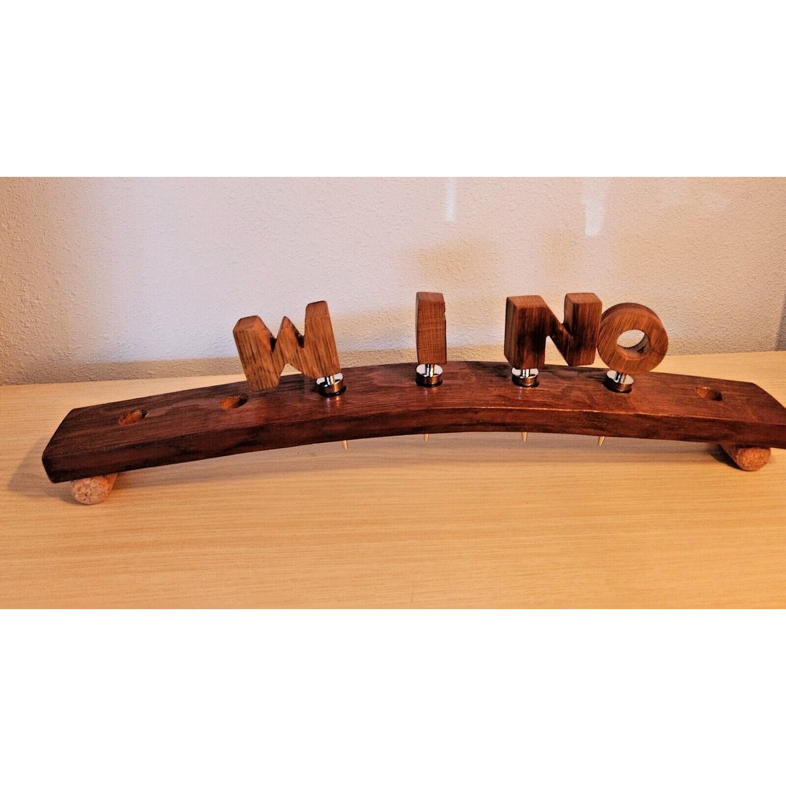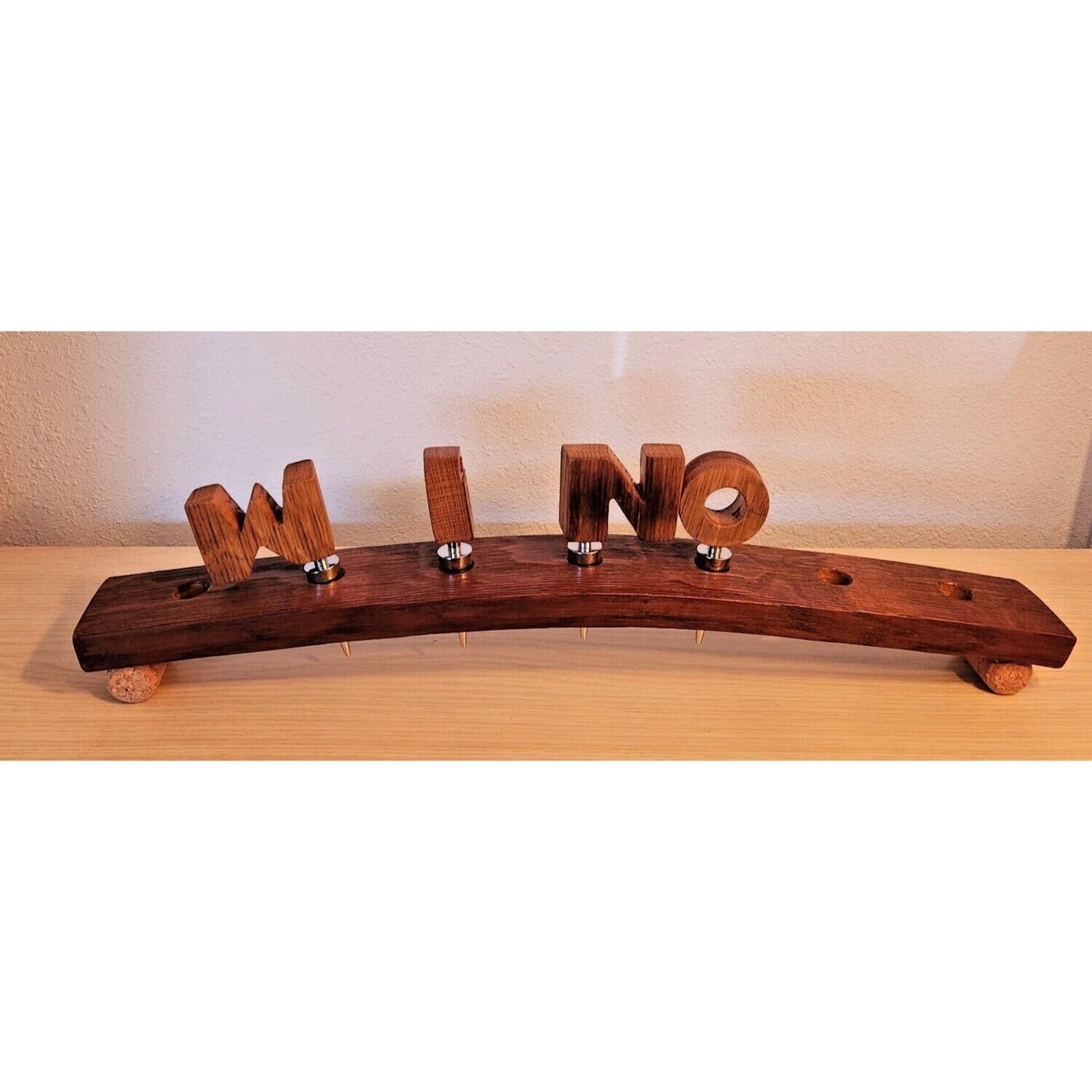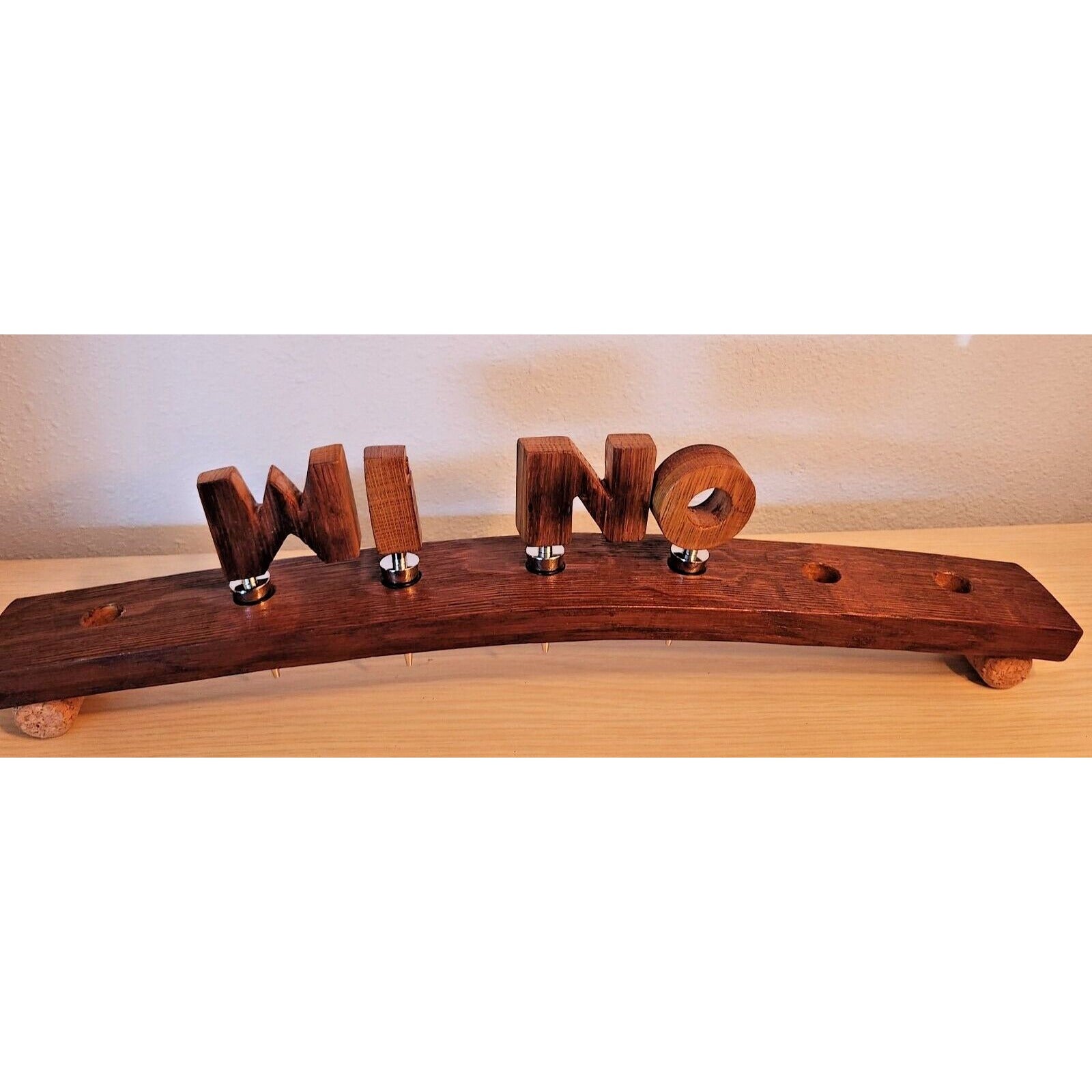 Wine Barrel Stopper Holder 7 Hole Display WINO Cork Feet 22 " x 3 " x 3 "