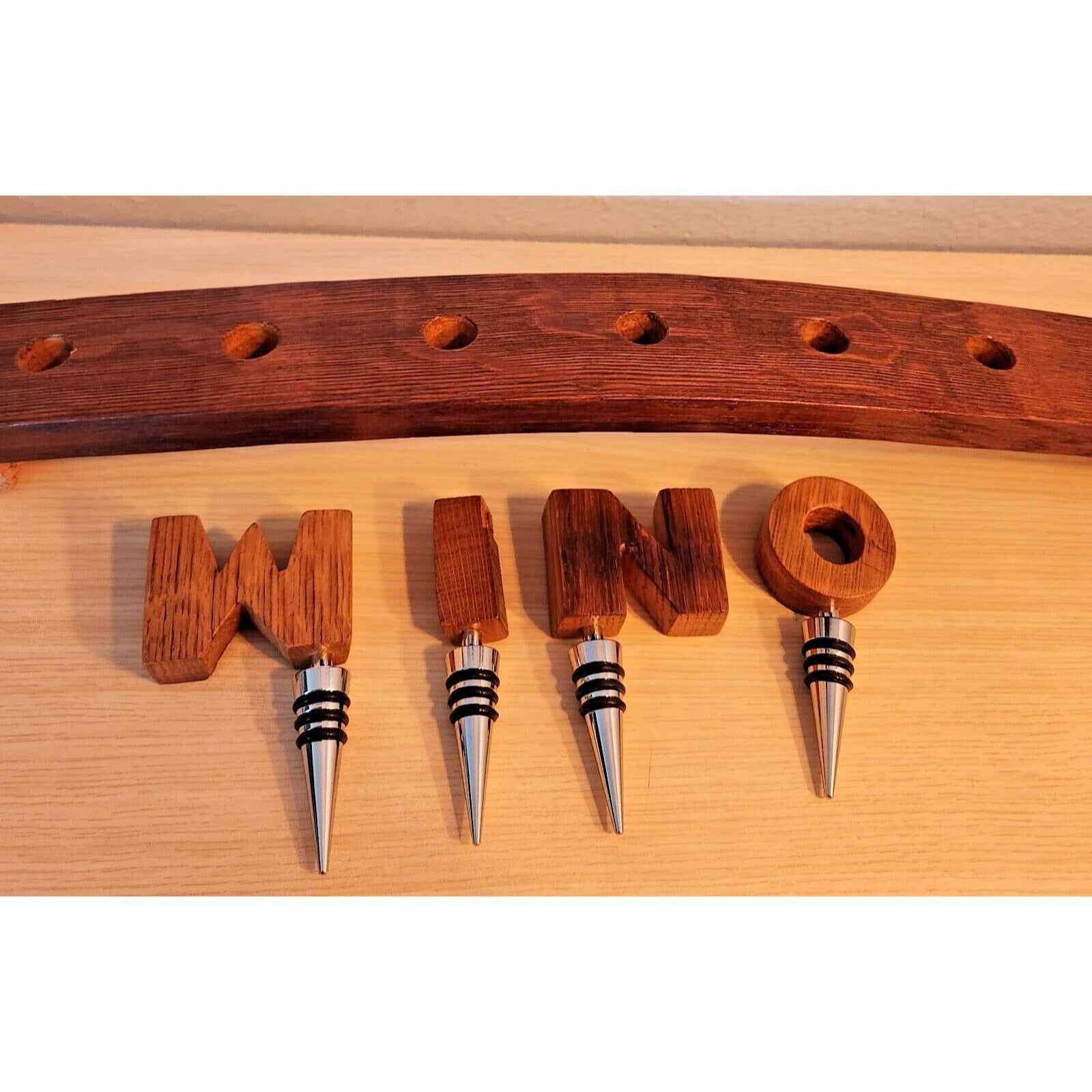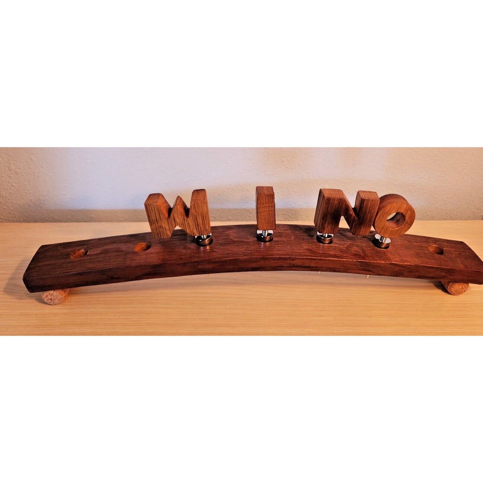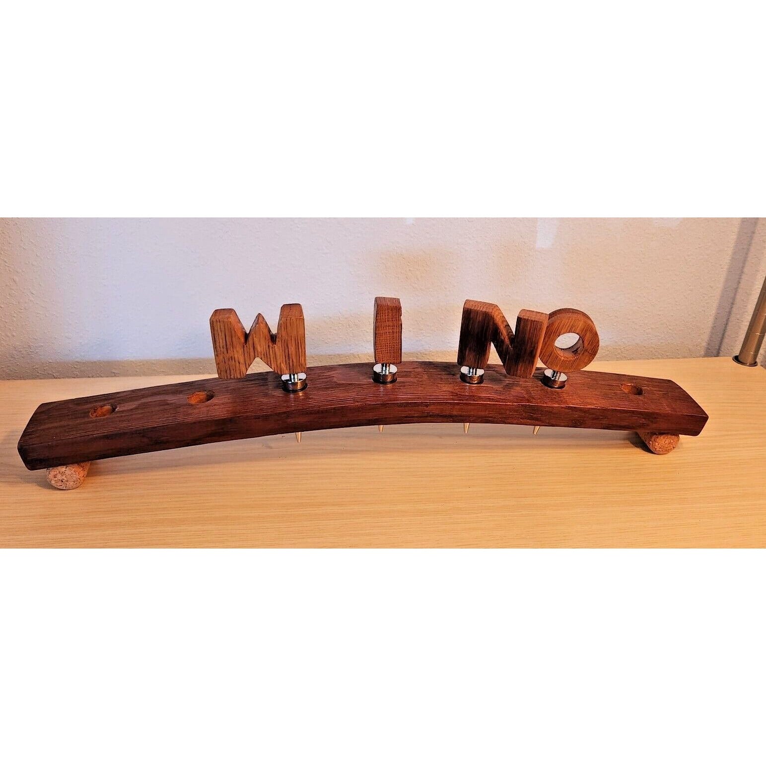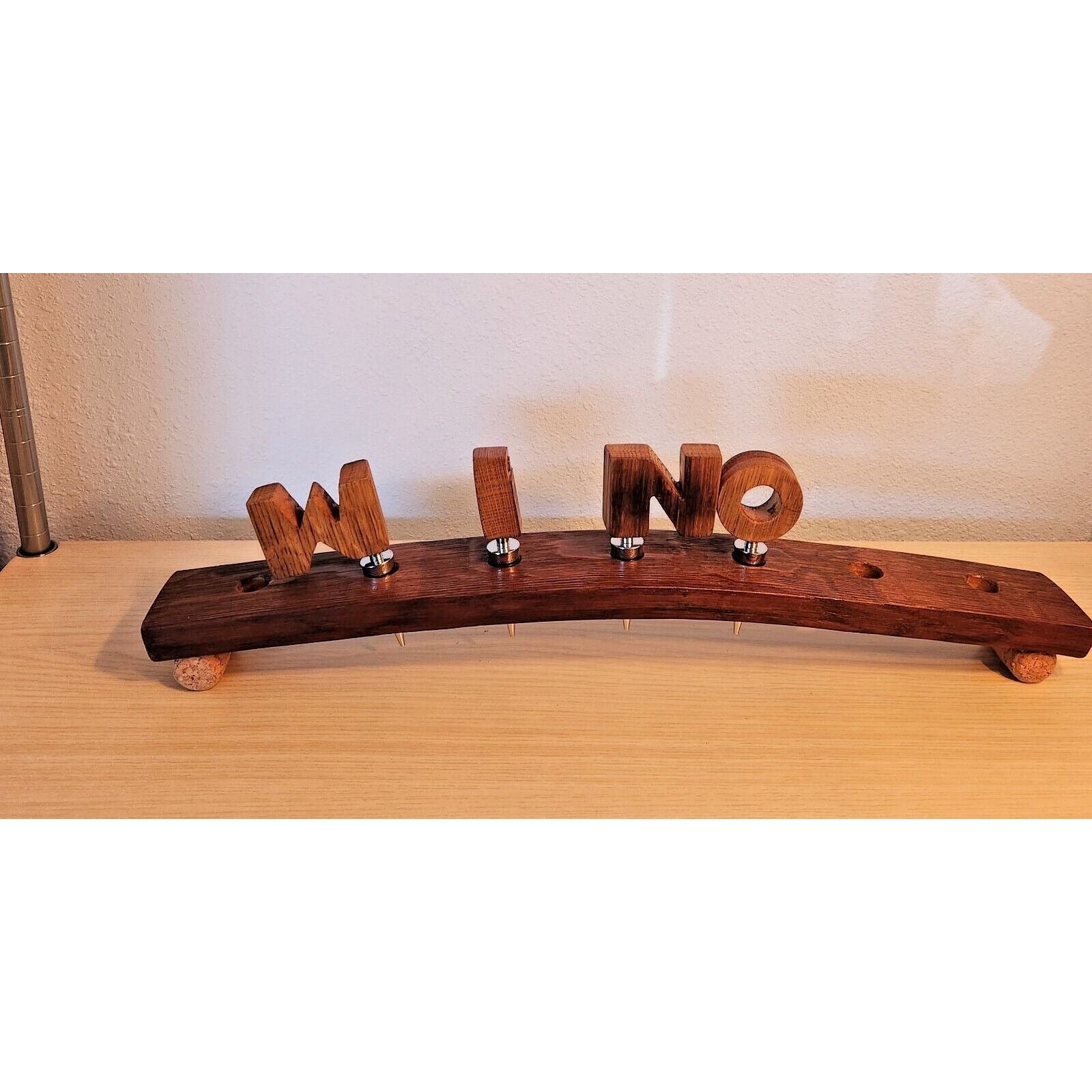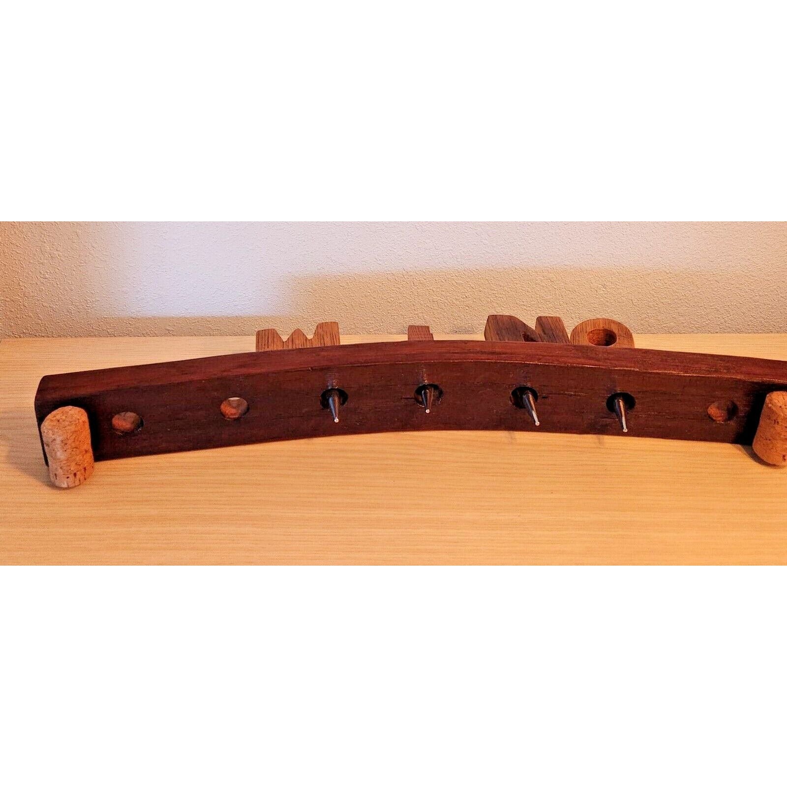 Wine Barrel Stopper Holder 7 Hole Display WINO Cork Feet 22 " x 3 " x 3 "