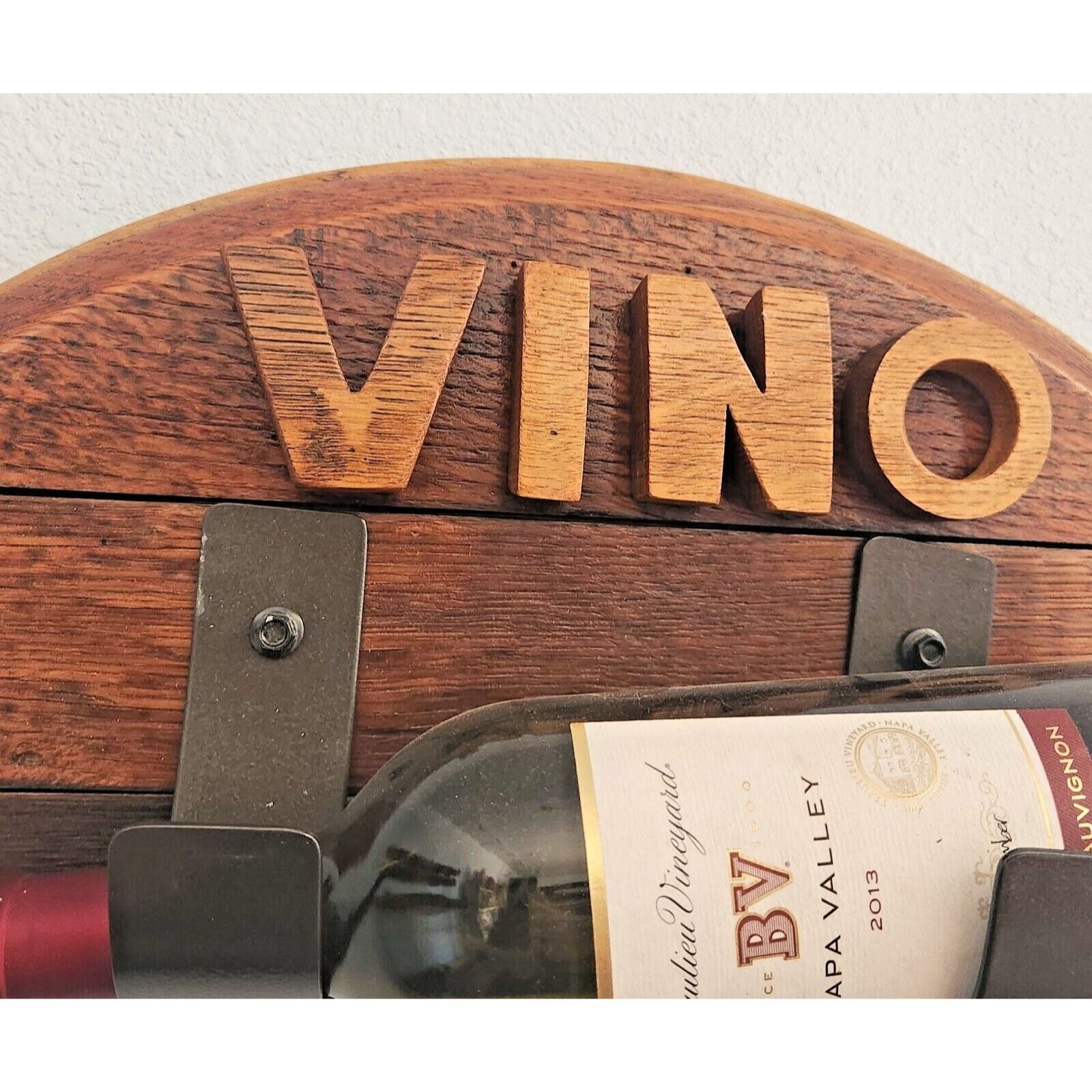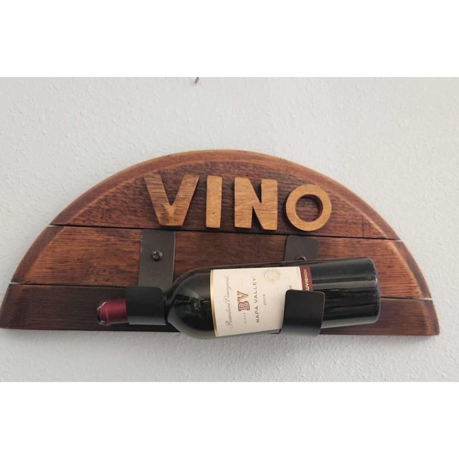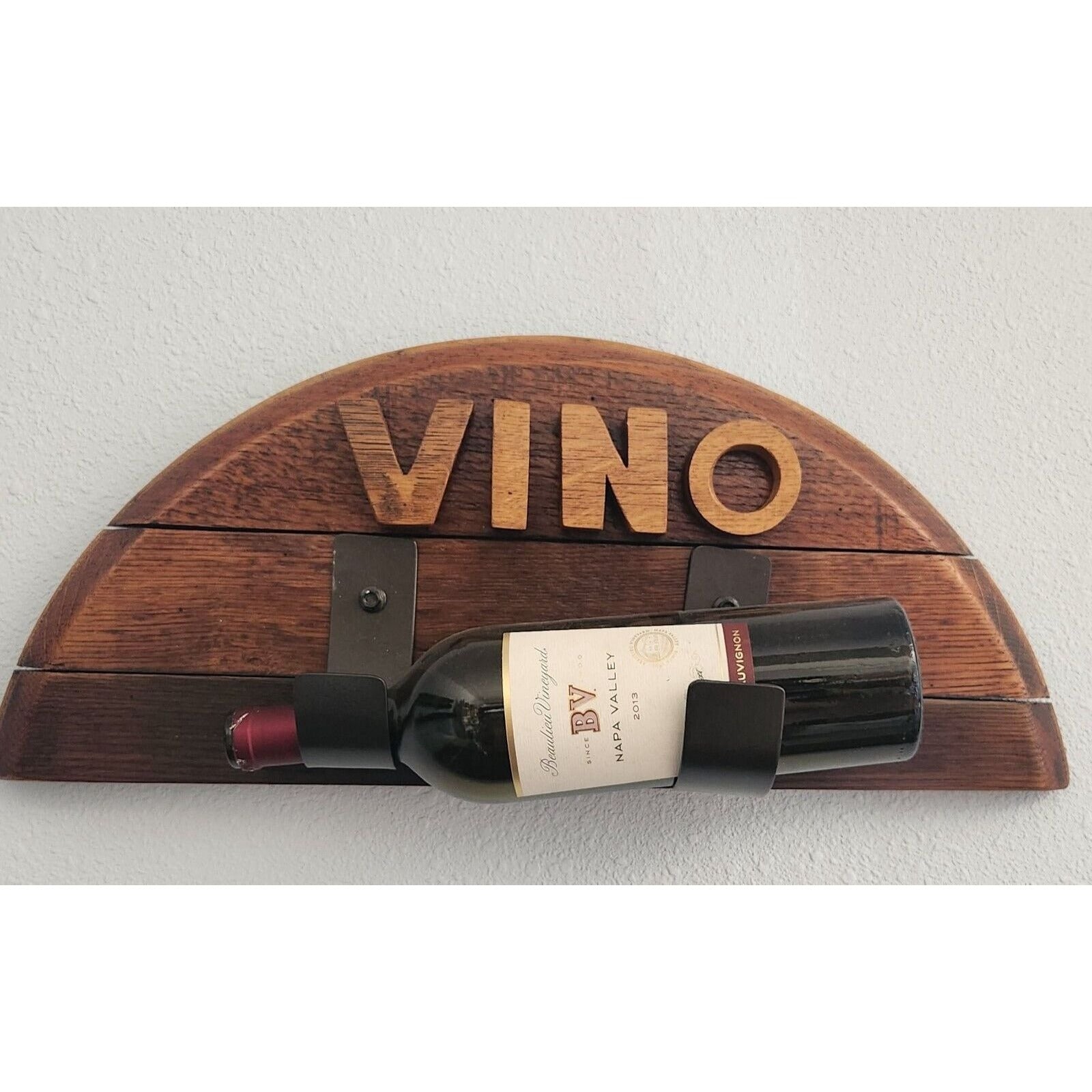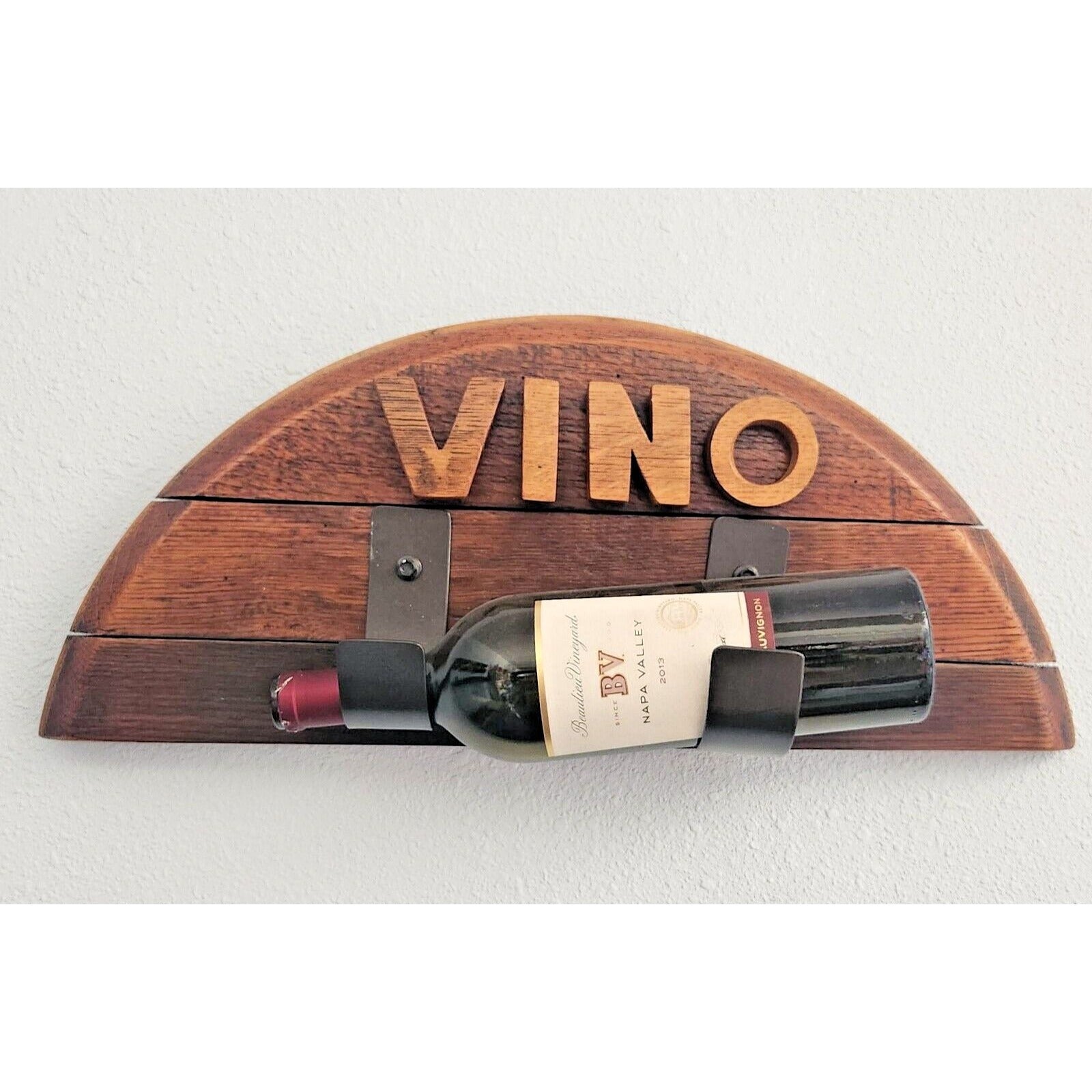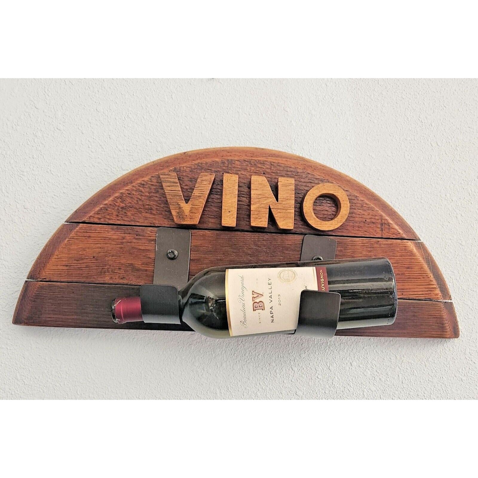 Wine Bottle Holder Says " Vino" Made from Barrel Stave Ring Bottle not included