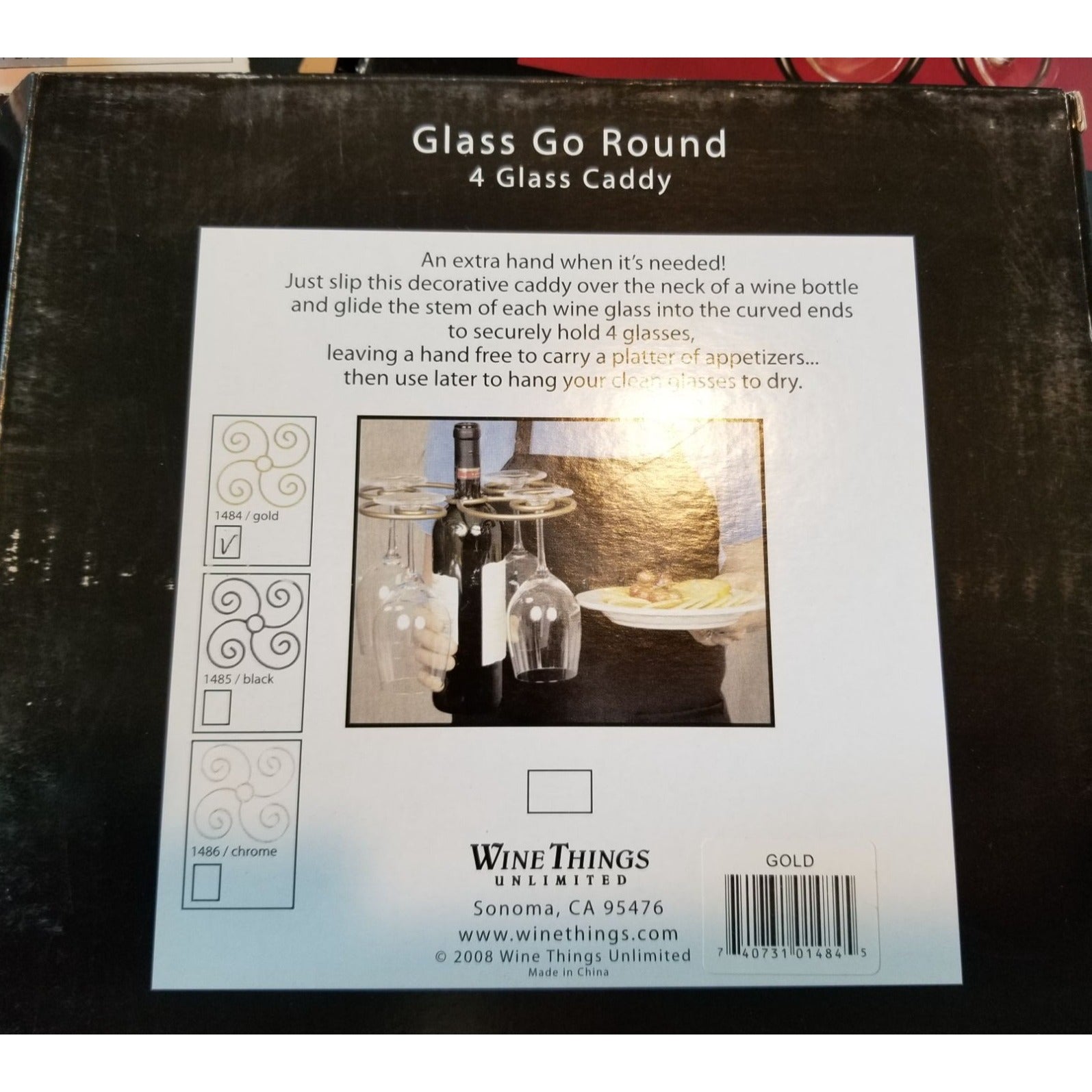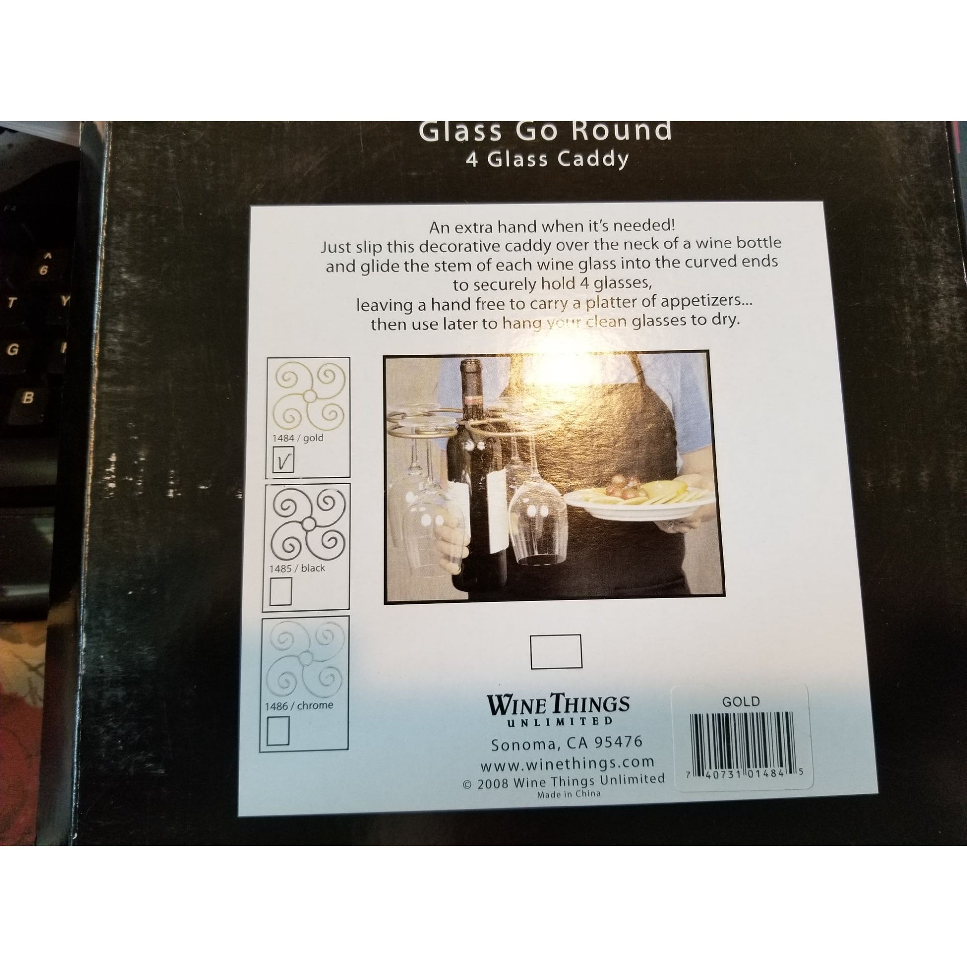 Wine Things Glass Go Round 4-Glass Decorative Caddy, Chrome Goes over the Wine Bottle Holds 4 Wine Glasses