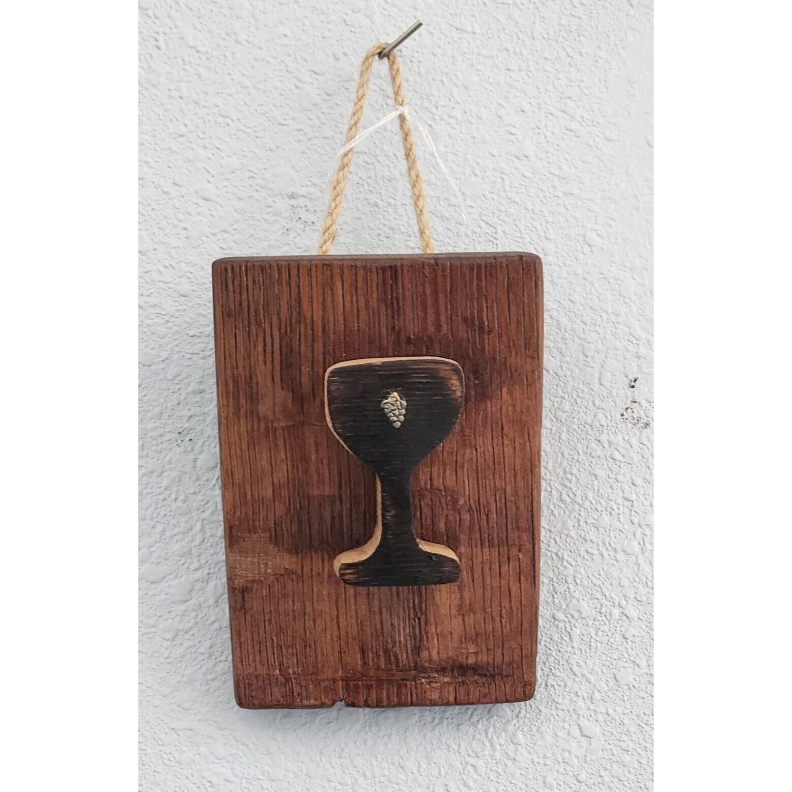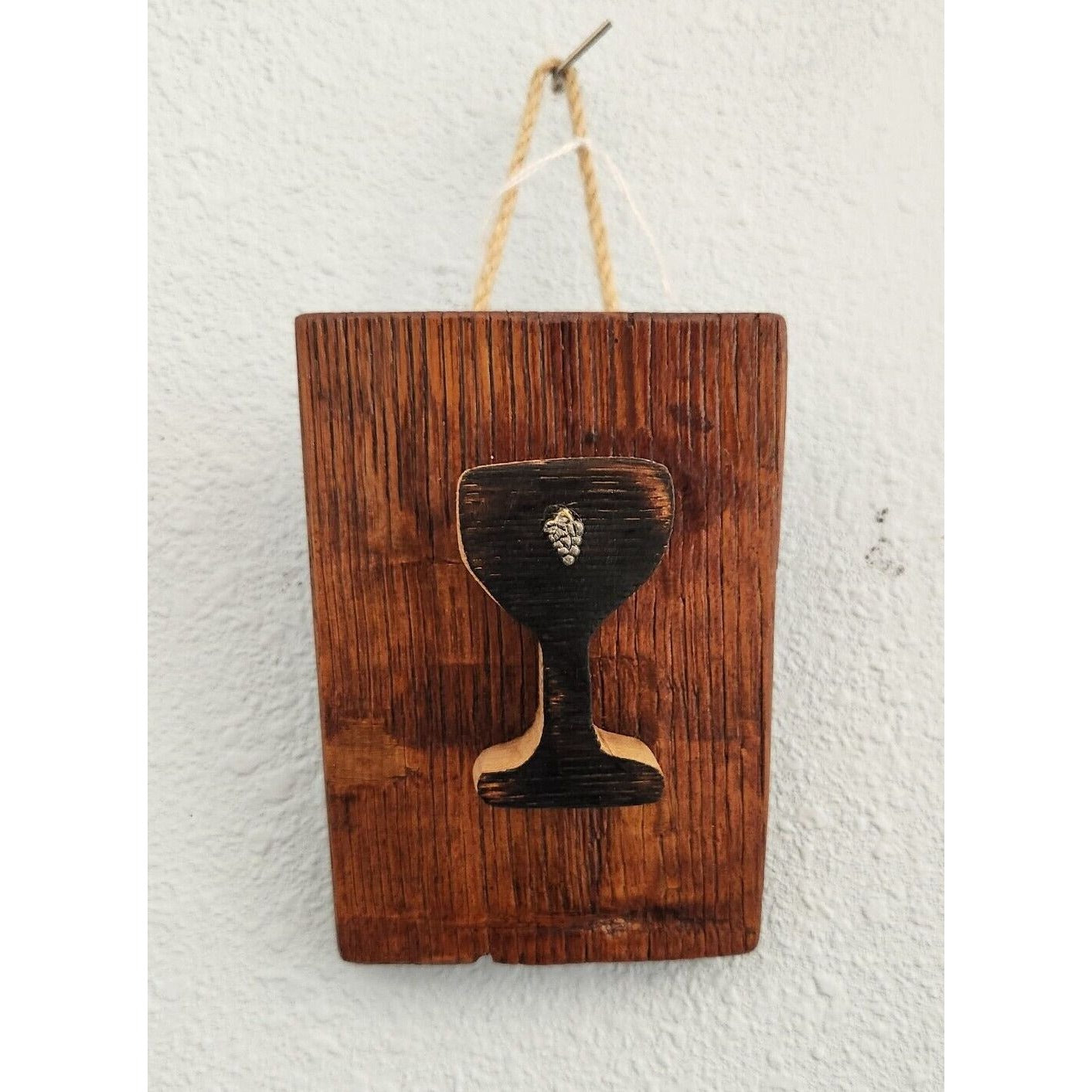 Wood Sign Wine Barrel Wine Glass Grape Cluster Charm Dark Wine Stave Toasted Stained
